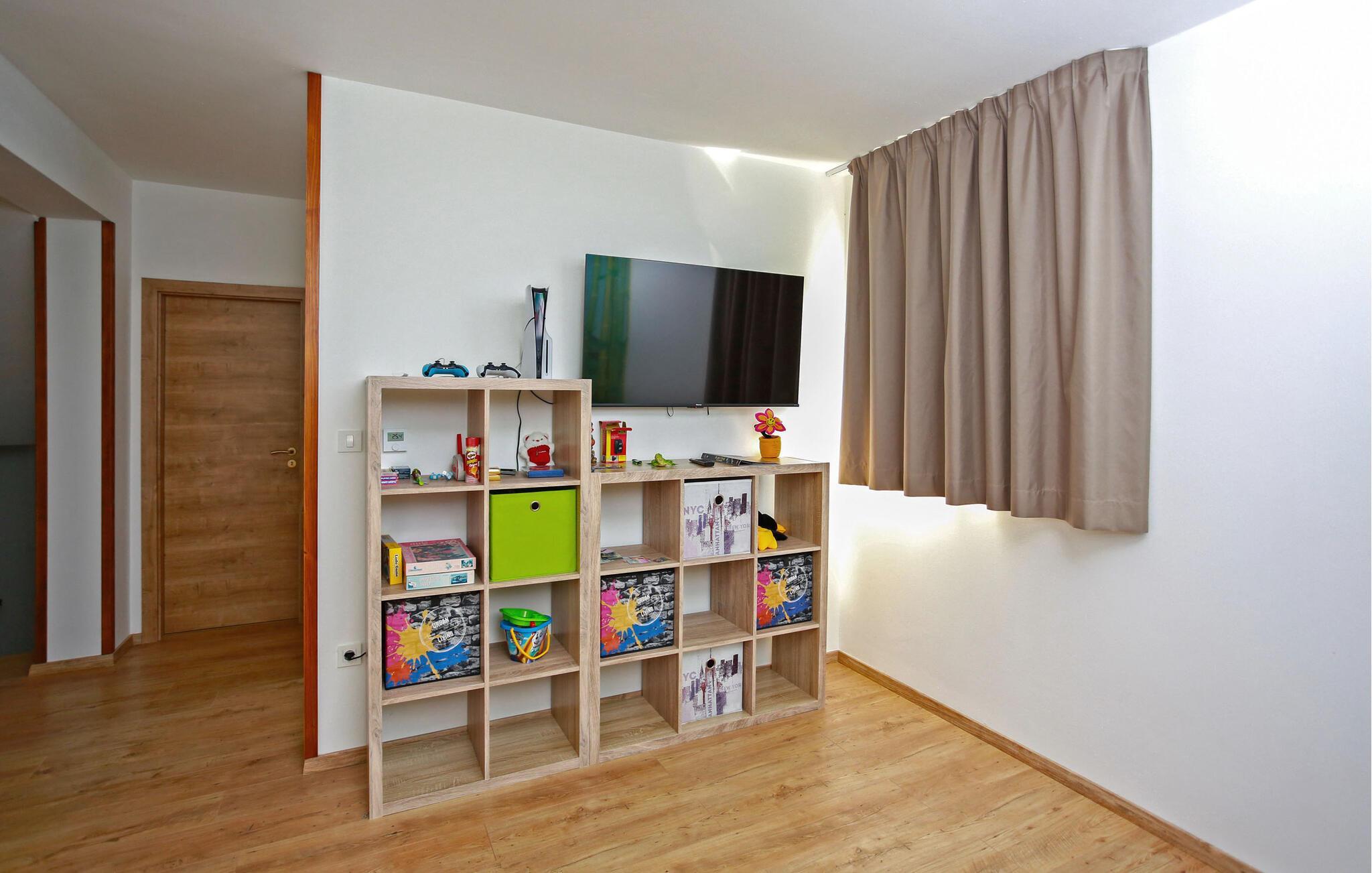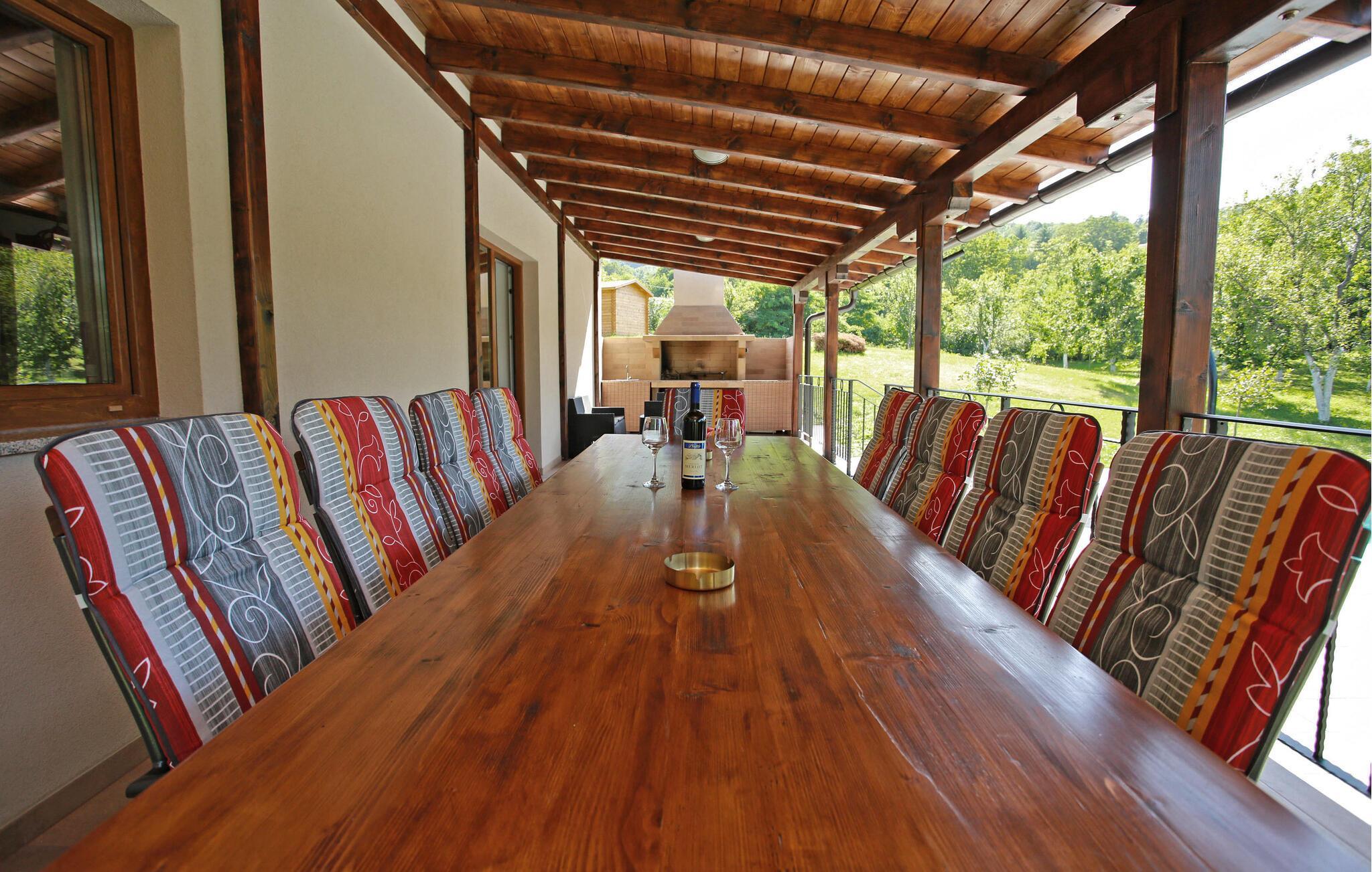 Das Haus verfügt außerdem über einen Gesellschaftsraum ähnlich einer Taverne, in dem Sie geselliges Beisammensein und lokale Spezialitäten mit erstklassigen Weinen aus der Region genießen können. Die große Rasenfläche ist ideal für verschiedene sportliche Aktivitäten oder einfach zum Genießen der Natur. Für die jüngsten Gäste gibt es einen Park mit Kinderspielplatz, wo sie sicher und unbeschwert ihre Zeit verbringen können.