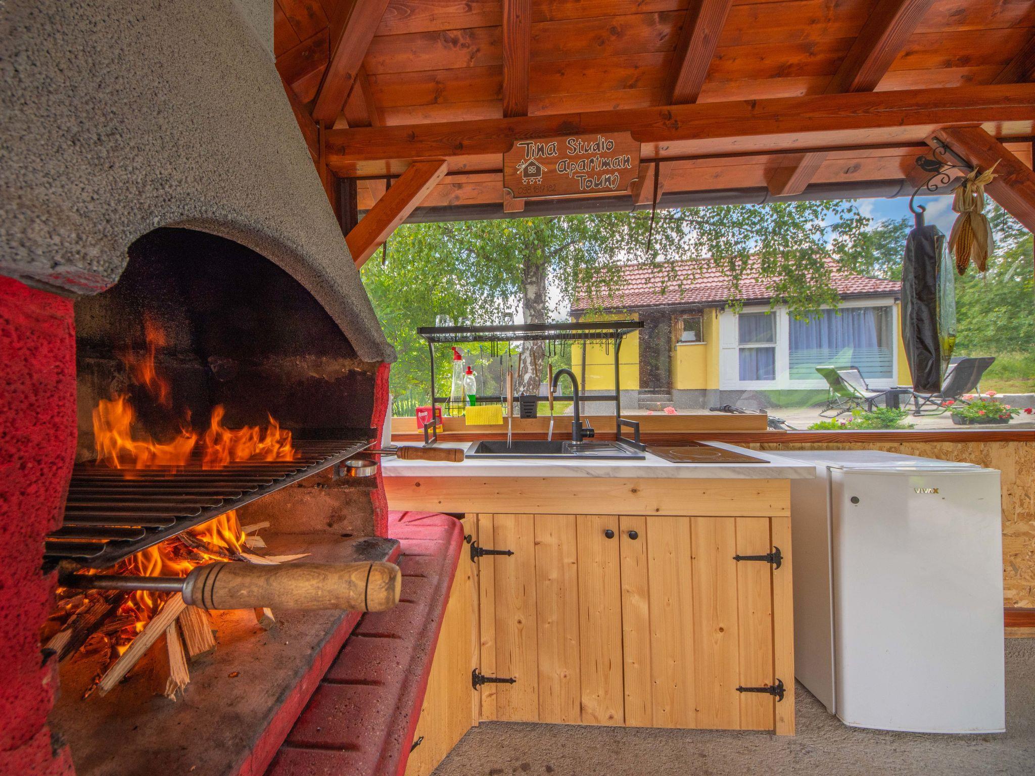 Tounj 17 km von Ogulin: Einfamilienhaus "Tina". 2 km vom Zentrum von Tounj, ruhige, sonnige Lage, im Grünen. Zur Alleinbenutzung: Grundstück 1'200 m2 (eingezäunt) mit Rasen 700 m2 Bäumen, Aufstellpool rund (4.50 m Durchmesser, 120 cm tief, saisonale Verfügbarkeit: 01.Mai. - 01.Okt.). Aussendusche, Terrasse (20 m2), Gartenmöbel, Grill, Grillhaus (Schaukel). Im Hause: Internetzugang, Trampolin, Waschmaschine, Fahrräder vorhanden. Parkplatz (für 4 Autos) beim Haus auf dem Grundstück. Einkaufsgeschäft 2 km, Restaurant 3.5 km, Bushaltestelle 1.9 km. Bekannte Seen in der Umgebung sind gut erreichbar: Plitvicka jezera 65 km.