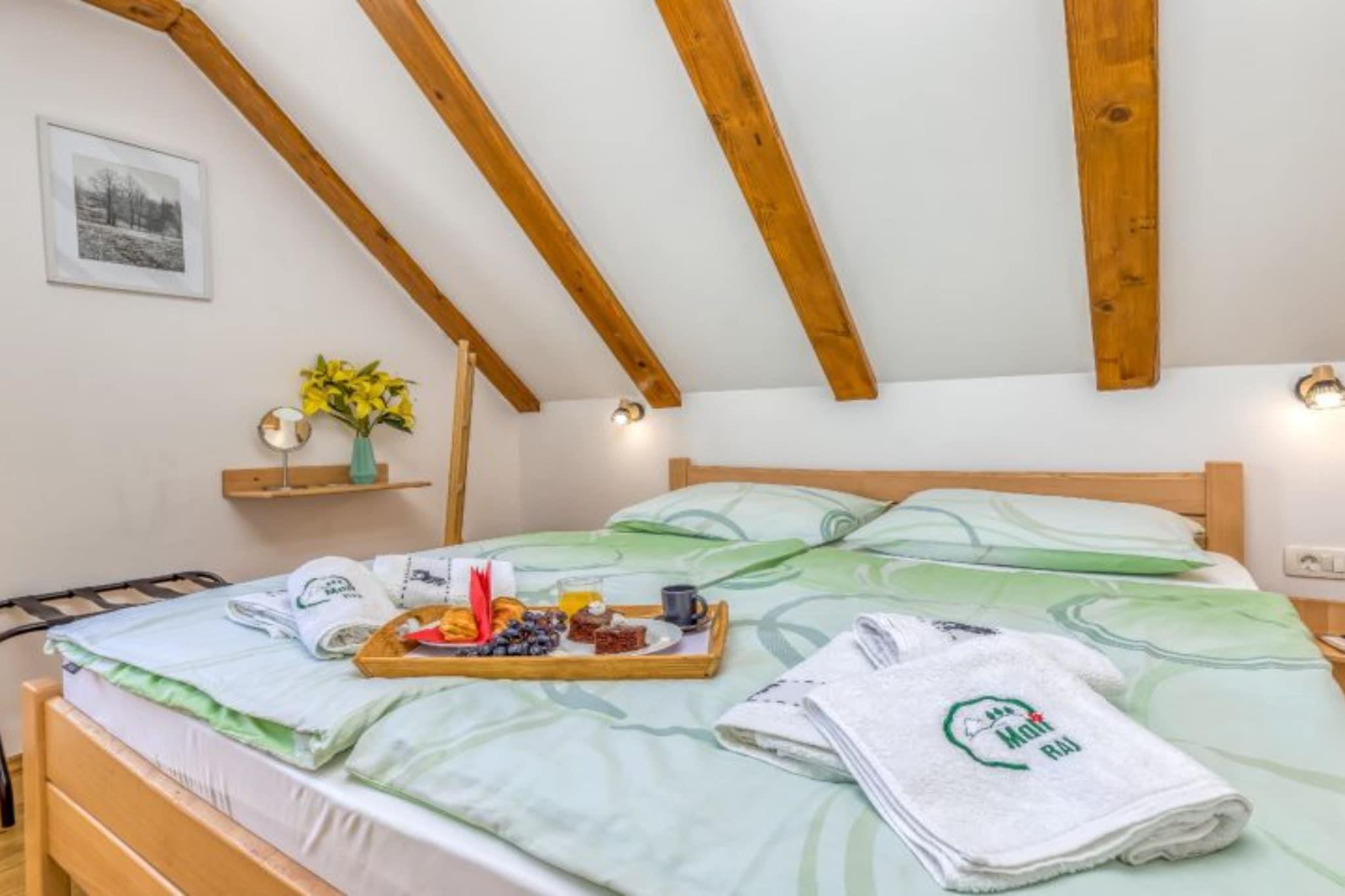 Holiday Home Mali?Raj is an ideal retreat for families or small groups seeking luxury in a serene, forested setting. It combines rich wellness and entertainment amenities with easy access to outdoor adventures and cultural exploration around Ogulin. Close to Lake Sabljaci (nicknamed the “Ogulin Sea”) for swimming, rowing, fishing, and water sports; near historical sites like Marmont Bridge, Gothic churches, and the 16th-century Ogulin Castle and Ðula’s Abyss above the Dobra River. Note: Private parking is available, and a reservation is not required. Baggage drop-off is available before check-in. Wi-Fi is available throughout the property. Pets are allowed. A Baby cot is available on request. This four-bedroom can accommodate up to eight guests. It features a satellite TV and is combined with a living room seating area. The private bathroom is equipped with a shower and toilet. Free toiletries are available on request. Thanks to its excellent location, everything you'll need for your vacation is just a short walk from the property. Grocery stores, cafes, restaurants—everything is within a 1.00 km radius. The airport is 100 km away from the property.