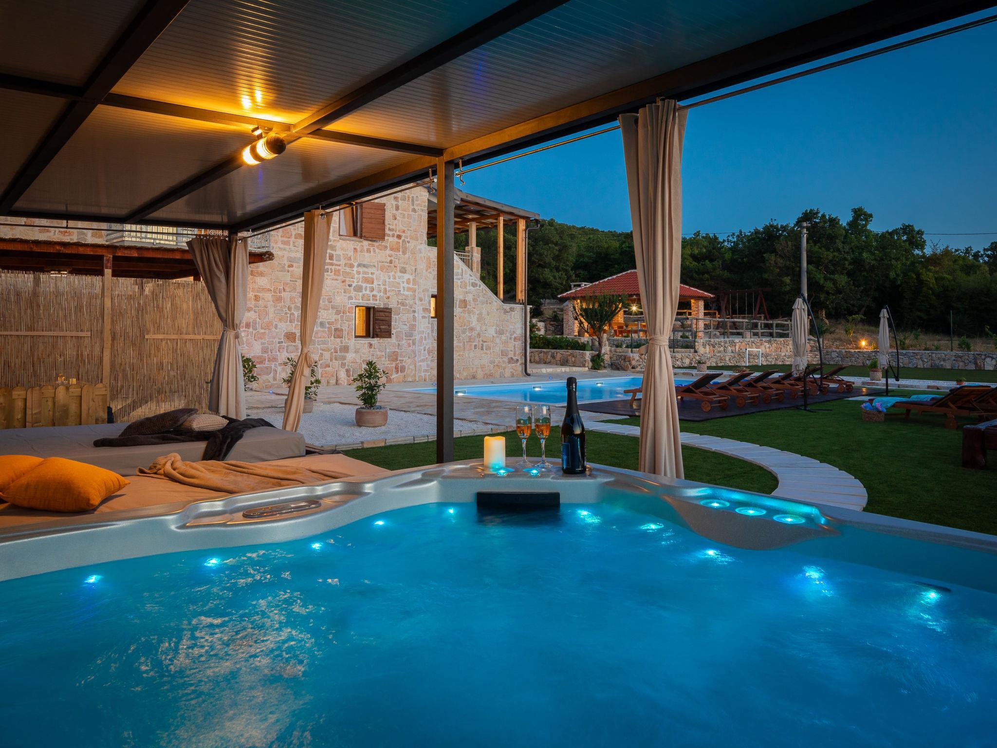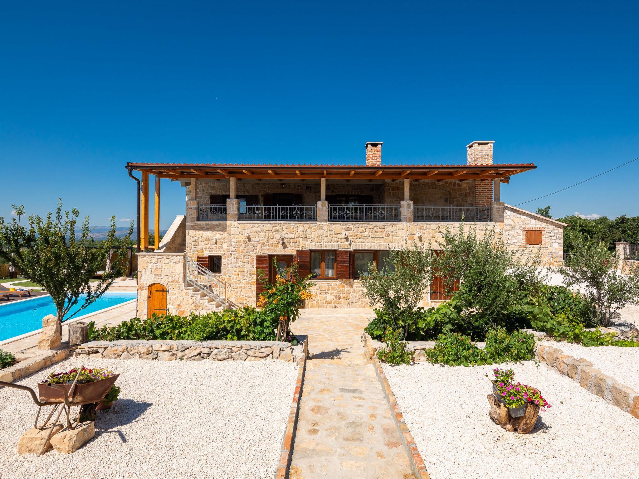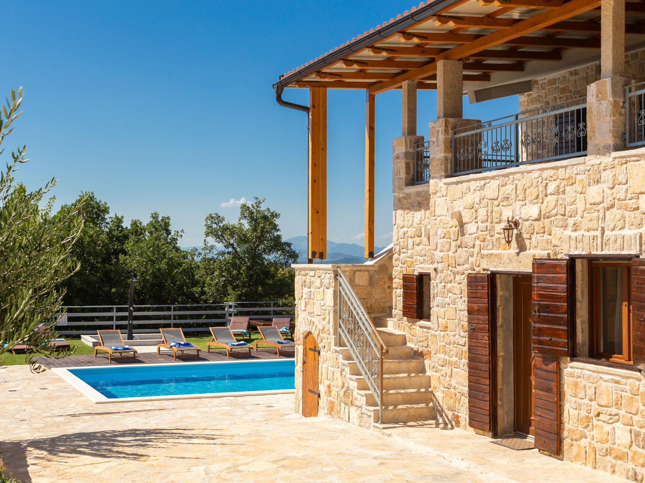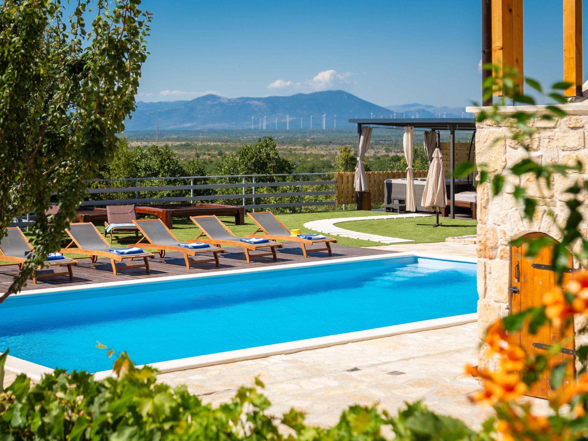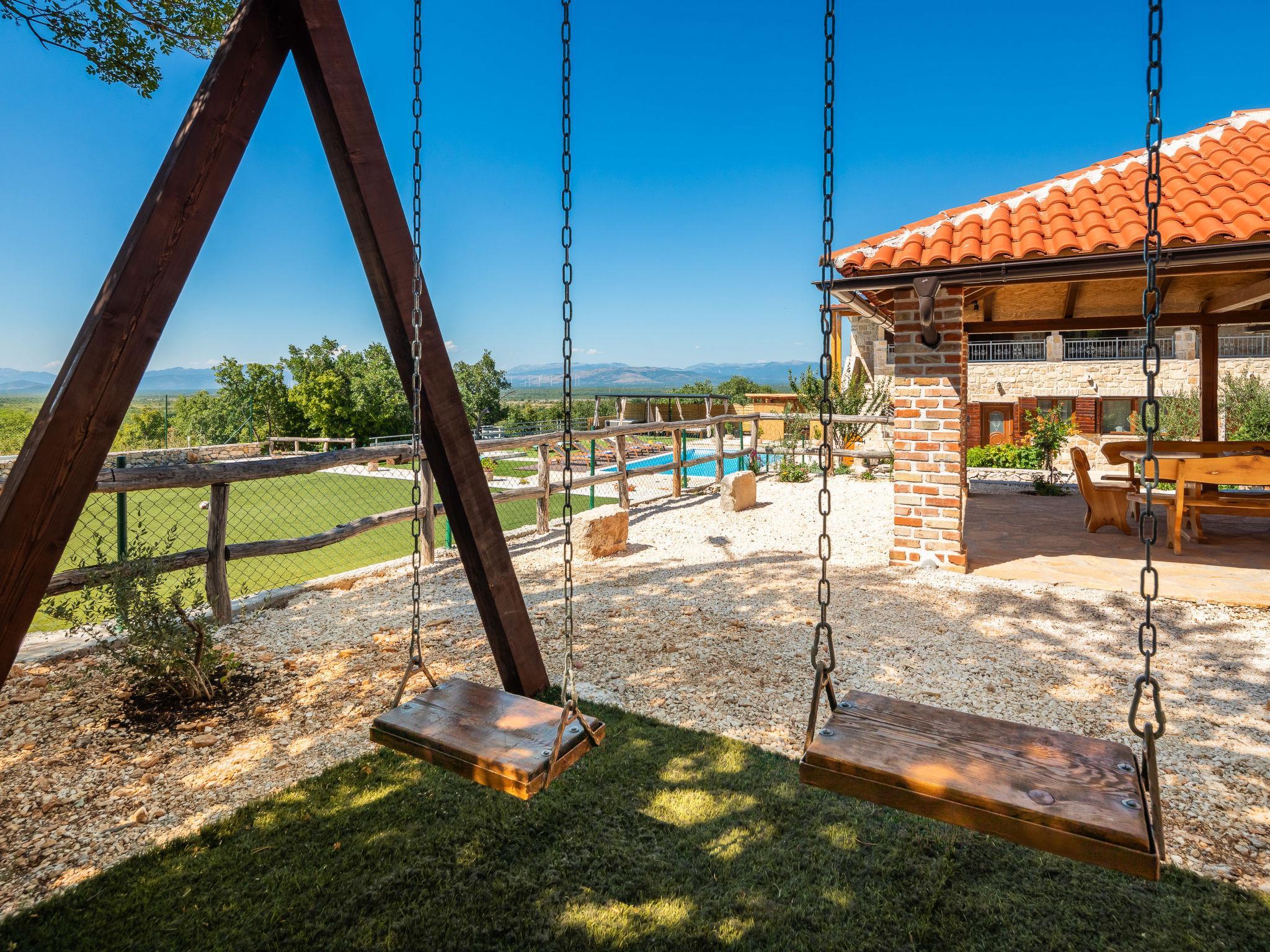 Lukar 3 km von Oklaj: Einfamilienhaus "Perva". Ruhige, sonnige Lage, 48 km vom Meer, im Grünen. Zur Alleinbenutzung: Grundstück 3'500 m2 (eingezäunt), Schwimmbad eckig, beheizt (10 x 5 m, 150 cm tief, saisonale Verfügbarkeit: 15.Mai. - 30.Sep.) mit Innentreppe. Aussendusche, Sprudelbad, Tischtennis, Laube (30 m2), Terrasse (30 m2), Gartenmöbel, Grill, Kinderspielplatz (Schaukel). Im Hause: Internetzugang, Fitnessraum, Trampolin, Waschmaschine, Wäschetrockner. Parkplatz (für 6 Autos) beim Haus auf dem Grundstück. Einkaufsgeschäft 3 km, Restaurant 17 km, Café 3 km, Bushaltestelle 3.5 km, Kieselstrand 48 km. Radweg 2 km. Nahe gelegene Sehenswürdigkeiten: NP Krka 28 km.