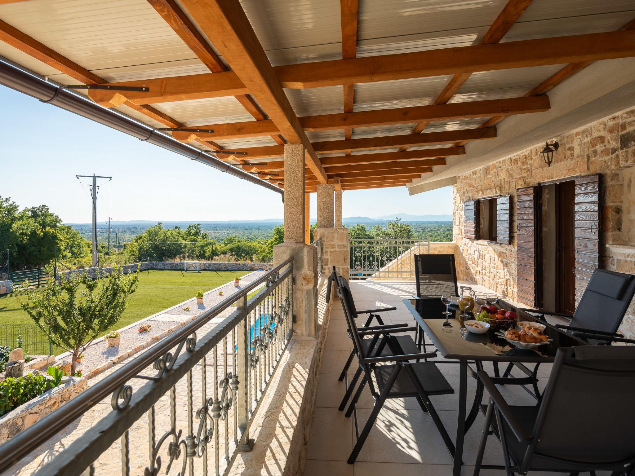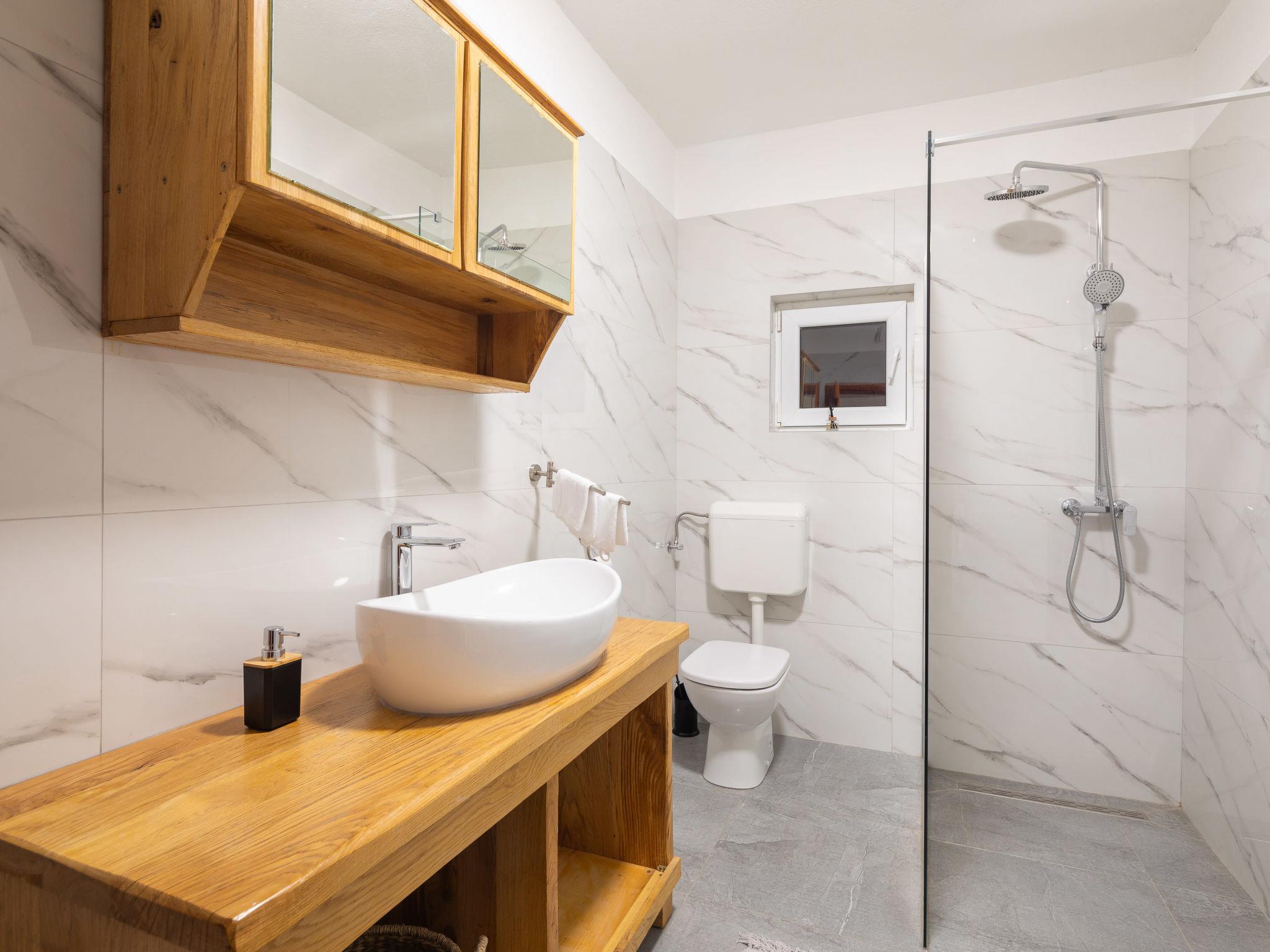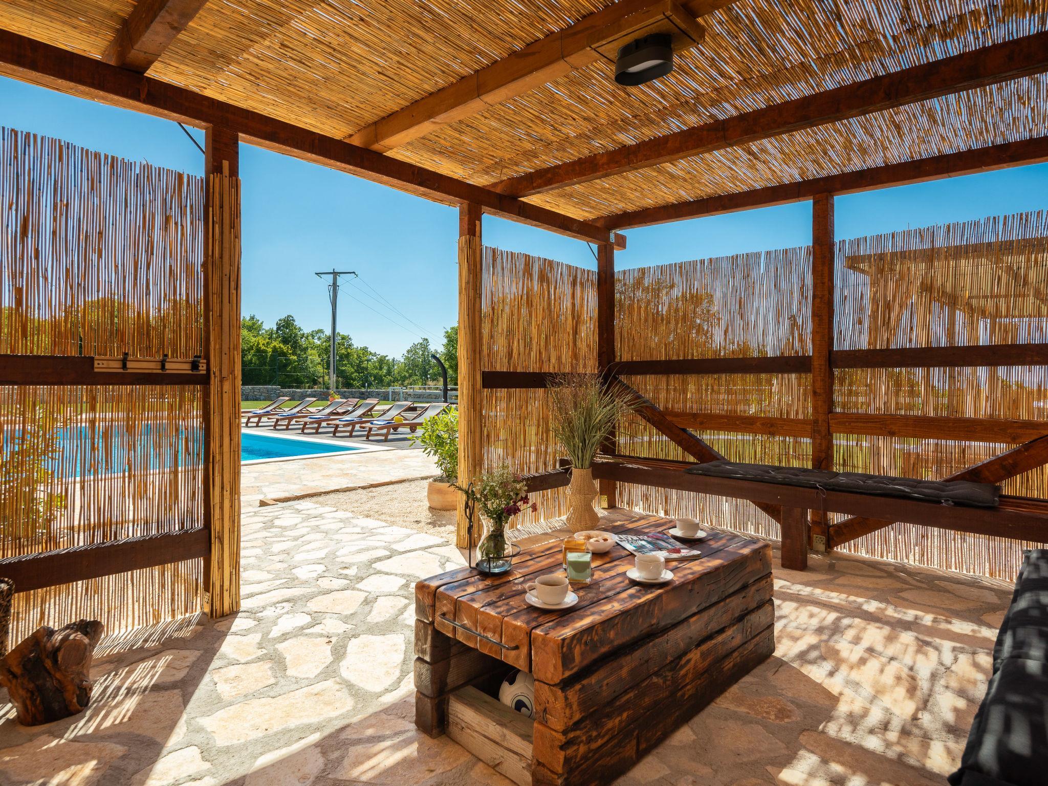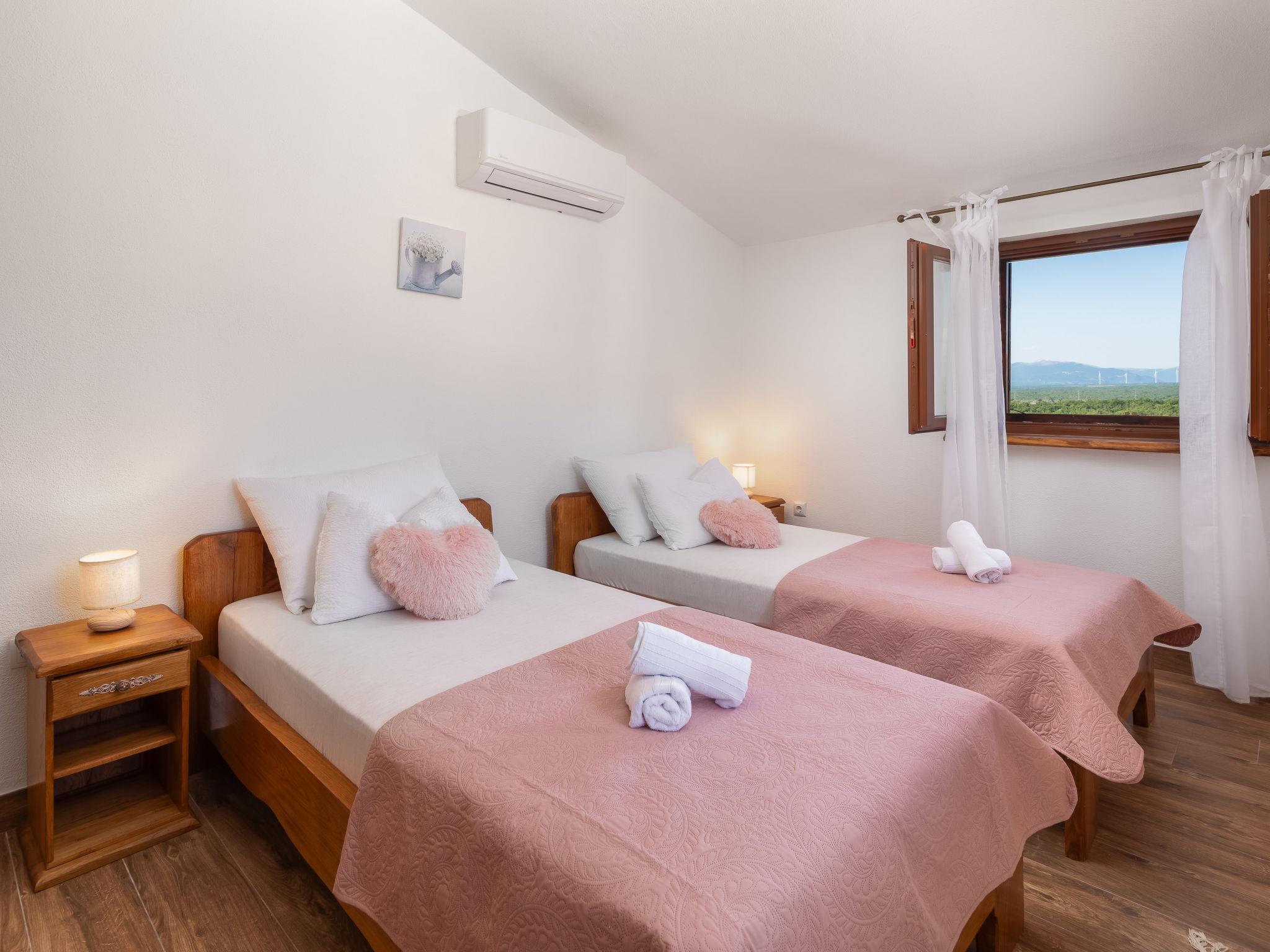 Lukar 3 km von Oklaj: Einfamilienhaus "Perva". Ruhige, sonnige Lage, 48 km vom Meer, im Grünen. Zur Alleinbenutzung: Grundstück 3'500 m2 (eingezäunt), Schwimmbad eckig, beheizt (10 x 5 m, 150 cm tief, saisonale Verfügbarkeit: 15.Mai. - 30.Sep.) mit Innentreppe. Aussendusche, Sprudelbad, Tischtennis, Laube (30 m2), Terrasse (30 m2), Gartenmöbel, Grill, Kinderspielplatz (Schaukel). Im Hause: Internetzugang, Fitnessraum, Trampolin, Waschmaschine, Wäschetrockner. Parkplatz (für 6 Autos) beim Haus auf dem Grundstück. Einkaufsgeschäft 3 km, Restaurant 17 km, Café 3 km, Bushaltestelle 3.5 km, Kieselstrand 48 km. Radweg 2 km. Nahe gelegene Sehenswürdigkeiten: NP Krka 28 km.