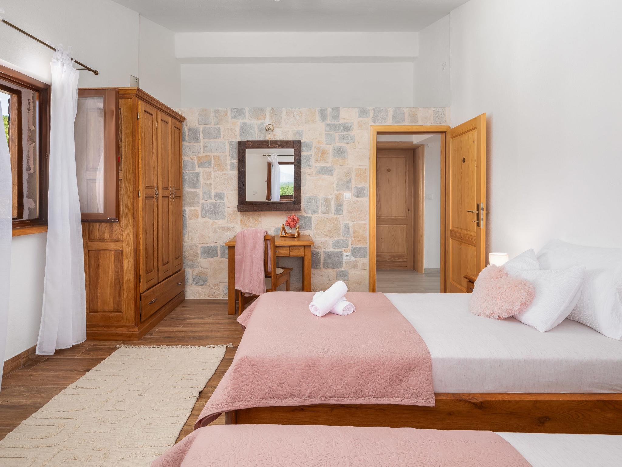 8-Zimmer-Haus 370 m2 auf 2 Stockwerken, Südwestlage. Komfortabel eingerichtet: Wohn-/Esszimmer 30 m2 mit Küchenblock und Sat-TV (Flachbildschirm), Klimaanlage. Ausgang zur Terrasse. 1 Zimmer mit 1 franz. Bett (180 cm, Länge 200 cm), Klimaanlage. Küche (Backofen, Geschirrspüler, 4 Glaskeramikplatten, Wasserkocher, Mikrowelle, Tiefkühler, elektrische Kaffeemaschine). Ausgang zum Schwimmbad. Dusche/WC. Obergeschoss: 1 Zimmer mit 1 franz. Bett (200 cm, Länge 200 cm), Dusche/WC und Klimaanlage. 1 Zimmer mit 1 franz. Bett (180 cm, Länge 200 cm), Dusche/WC und Klimaanlage. 1 Zimmer mit 2 Betten (100 cm, Länge 200 cm), Dusche/WC und Klimaanlage. (Aussentreppe) 1 Zimmer mit 1 franz. Bett (200 cm, Länge 200 cm), Klimaanlage. (Aussentreppe) 1 Zimmer mit 2 Betten (100 cm, Länge 200 cm), Klimaanlage. Dusche/WC. Warmluftheizung. Kleiner Balkon 3 m2, Terrasse 46 m2, überdacht. Terrassenmöbel, Liegestühle, Sitzplatz. Sicht auf das Schwimmbad und die Landschaft. Zur Verfügung: Waschmaschine, Kinderhochstuhl, Babybett, Haartrockner. Internet (Wireless LAN, gratis).
