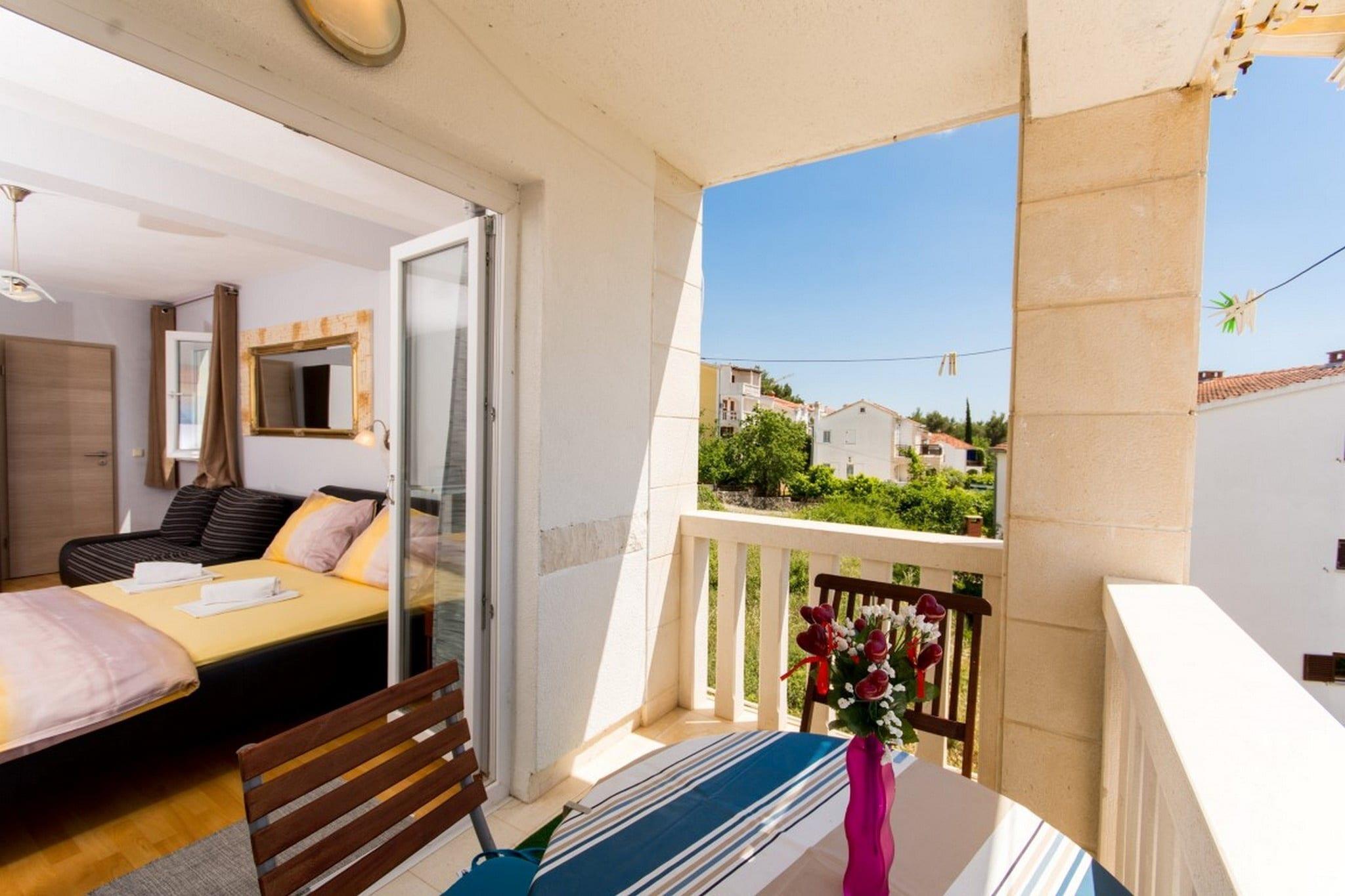Villa Stil is located in Okrug Gornji located in the beautiful traditional village Okrug Gornji on the Island of Ciovo. Villa Stil is located only 350 m from the beach. Spacious terrace fitted with sun beds and parasols as well as a common seasonal outdoor swimming pool and a shared garden are at your disposal. Free private parking is provided, reservation is not needed. Pets are not allowed. Baby cot is available upon request. By virtue of property's advantageous location, situated just 350 m from the restaurant and 350 m from the beach and bus stop, guests can find everything they need for every day life during their vacation in the vicinity of apartment. The closest super market is only 350 m away. Split airport is only 4.60 km away.