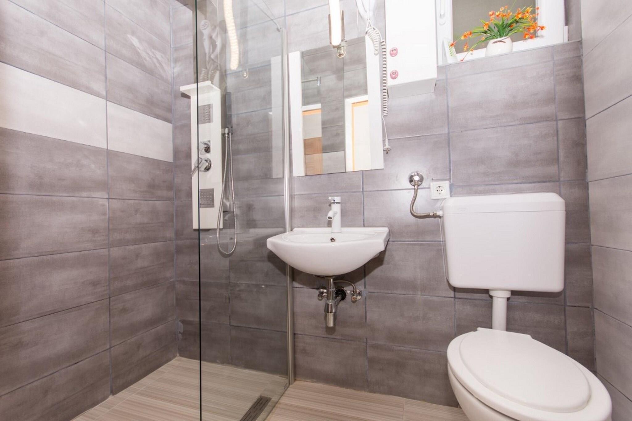 Villa Stil is located in Okrug Gornji located in the beautiful traditional village Okrug Gornji on the Island of Ciovo. Villa Stil is located only 350 m from the beach. Spacious terrace fitted with sun beds and parasols as well as a common seasonal outdoor swimming pool and a shared garden are at your disposal. Free private parking is provided, reservation is not needed. Pets are not allowed. Baby cot is available upon request. This studio apartment with balcony and sea view can accommodate three people. It features SAT LCD TV as well as air-conditioning. Kitchen is well equipped with refrigerator, trash cans, vitro ceramics and kitchen utensils. The private bathroom comes with shower and toilet.Hair dryer as well as linens and towels are at your disposal. By virtue of property's advantageous location, situated just 350 m from the restaurant and 350 m from the beach and bus stop, guests can find everything they need for every day life during their vacation in the vicinity of apartment. The closest super market is only 350 m away. Split airport is only 4.60 km away.
