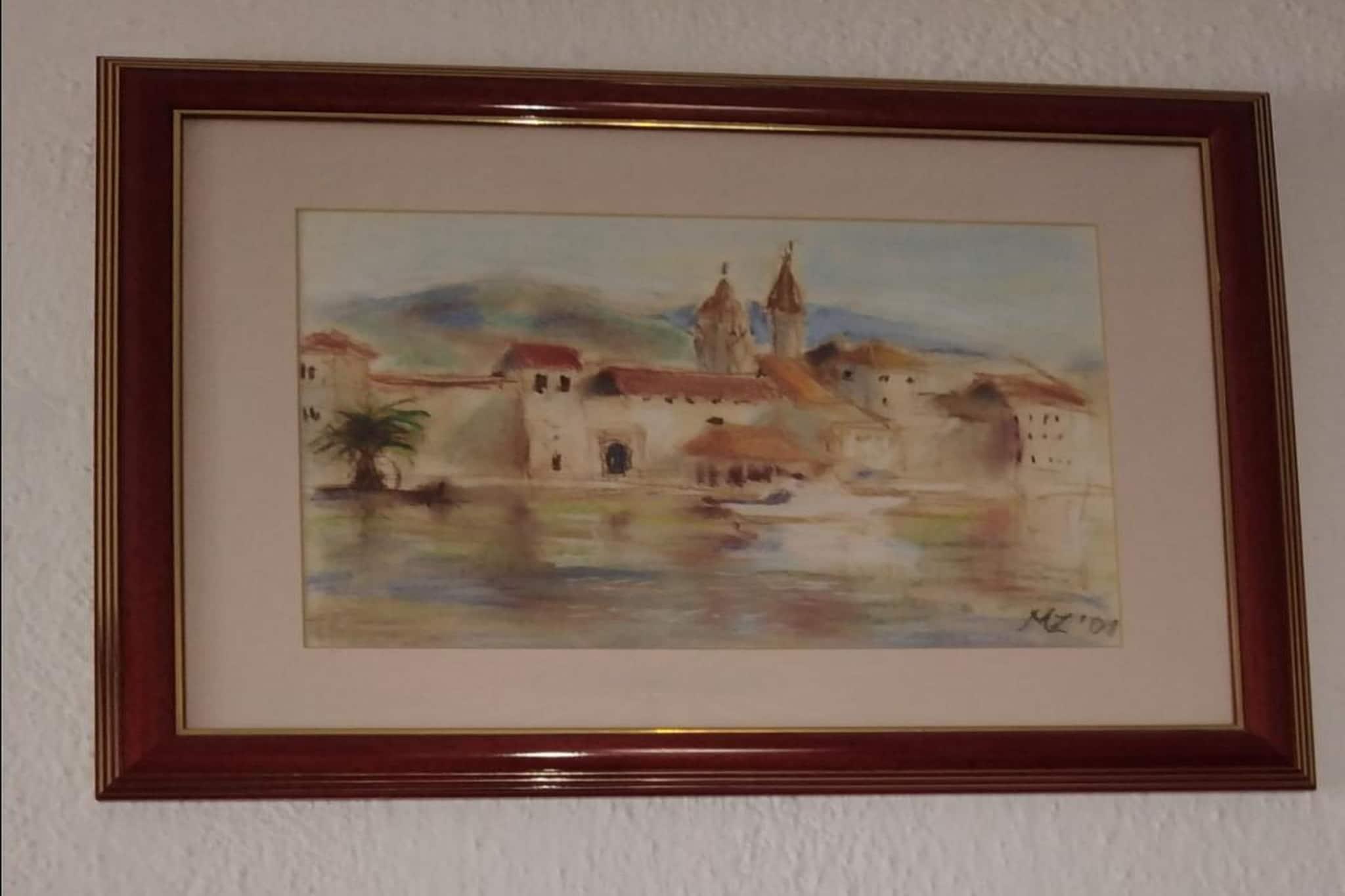 Willkommen in diesem einladenden Erdgeschoss-Apartment in Okrug Gornji, ideal für Familien oder kleine Gruppen bis zu vier Personen. Das Apartment ist auf Komfort und entspanntes Inselleben ausgelegt und verfügt über ein gemütliches Wohnzimmer mit bequemer Sitzecke, Fernseher und einem charmanten Kamin – perfekt zum Entspannen nach einem Tag am Strand. Der angrenzende Essbereich und die offene Küche sind komplett ausgestattet mit Kaffeemaschine, Wasserkocher, Kühl-/Gefrierkombination, Geschirr, Besteck und Kochutensilien, sodass die Mahlzeiten einfach und genussvoll zubereitet werden. Das Apartment bietet zwei Schlafzimmer, die jeweils mit einem Doppelbett oder zwei Einzelbetten ausgestattet sind und somit flexibel für Paare, Freunde oder Familien geeignet sind. Das moderne Badezimmer verfügt über Dusche, Waschbecken und WC. Mit Internetzugang, einer privaten Terrasse zum Entspannen im Freien und einem Grill für sonnige Mahlzeiten unter freiem Himmel bietet die Unterkunft alles, was Sie für einen angenehmen und unbeschwerten Aufenthalt benötigen. Gäste haben außerdem Zugang zu einem Gemeinschaftspool – perfekt, um sich unter der warmen dalmatinischen Sonne abzukühlen. Private Parkplätze stehen für zusätzlichen Komfort zur Verfügung. Eingebettet auf der Insel Ciovo bietet Okrug Gornji die perfekte Mischung aus Ruhe und lebhaftem Küstenflair. Wunderschöne Kieselstrände mit kristallklarem Wasser sind nur wenige Minuten entfernt, ebenso wie Strandbars, Cafés und Restaurants direkt am Wasser, die frische mediterrane Gerichte servieren. Eine kurze Autofahrt bringt Sie in die UNESCO-geschützte Stadt Trogir, bekannt für ihre bezaubernde Altstadt, mittelalterliche Architektur und ihren pulsierenden Hafen. Abenteuerlustige finden Bootsausflüge, Schnorchelplätze und malerische Küstenwanderwege direkt vor der Haustür.