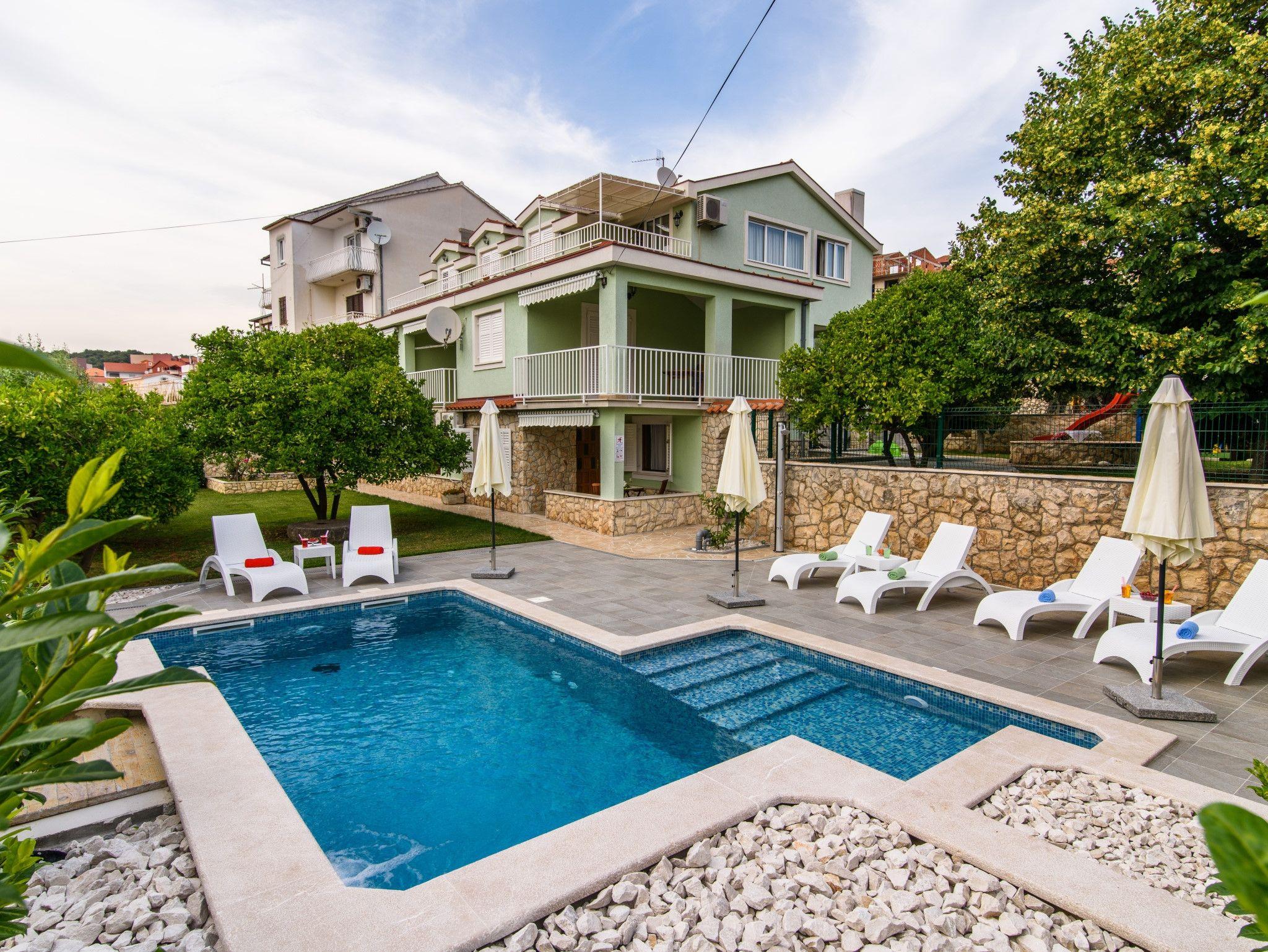 Objekt 18827 im Ort Okrug Gornji, Ciovo - Mitteldalmatien bietet Ihnen Unterkünfte mit folgenden Einheitstypen an Ferienwohnung (5) und ist 60 m vom Meer entfernt. Der nächste Strand zu dieser Unterkunft ist ein Kiesstrand. Dieses Objekt befindet sich in der Kategorie Objekte mit Schwimmbad. Das Objekt hat mehrere Unterkunftseinheiten, so ist es möglich, dass sich während Ihres Urlaubes auch andere Gäste dort befinden werden. Die Hausbesitzer werden während Ihres Urlaubes im Objekt wohnen. Der Eigentümer ist nicht verpflichtet, zusätzliche unangemeldete Personen und Haustiere zu akzeptieren. Sie sollten im Voraus bekannt gegeben werden. INHALT