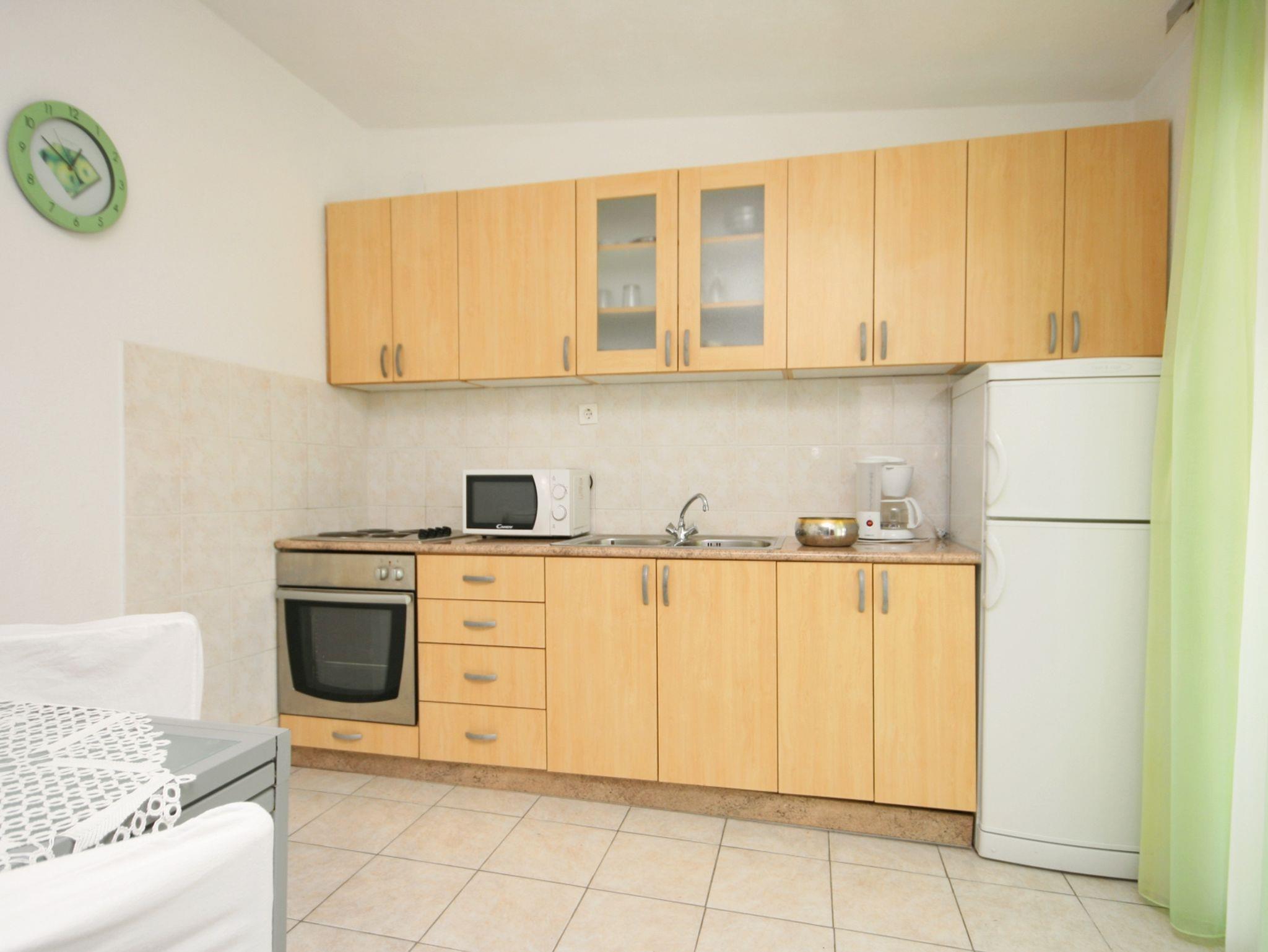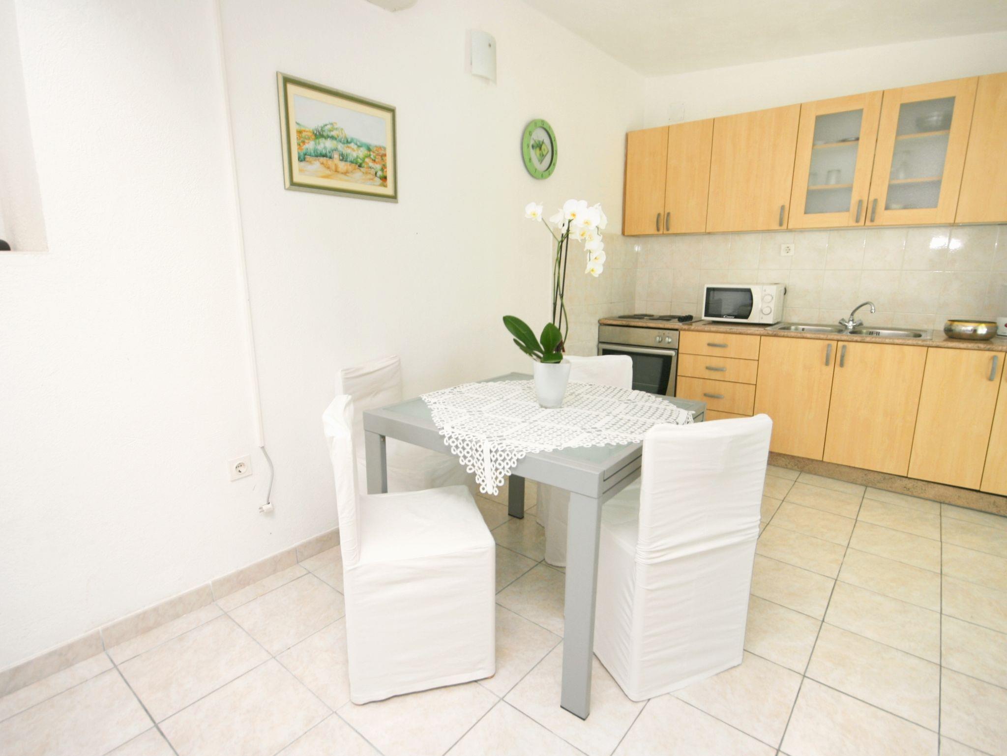 Ferienwohnung bietet Platz für 4 Gäste. Die Betten sind in Schlafzimmern, die es 1 gibt, und in Esszimmer, innerhalb einer Gesamtfläche von 35m2, angeordnet. Die Gäste haben eine eigene Terrasse zur Verfügung, auf der sie in warmen Sommernächten genießen können. Das Apartment bietet Meerblick. Für vollen Genuss und Entspannung gibt es einen privaten Grill für Gäste dieser Unterkunft. In der Unterkunftseinheit besteht die Möglichkeit des Mitbringens von Haustieren gegen Aufpreis. IM PREIS INBEGRIFFEN: Kurtaxe, Endreinigung, Parkplatz, Internet, Kinderbett, Föhn, tragbarer Grill. VERBINDLICHE ZUSÄTZLICHE KOSTEN: Aufzahlung für Kurzaufenthalte (prozentualer Zuschlag pro Nächtigungsanzahl: 30% - 1, 20% - 2, 10% - 3). UNVERBINDLICHE ZUSÄTZLICHE KOSTEN: Klimatisierung (5,00 € pro Nacht), Wäschewaschen (3,00 € Waschen), Bootsanlegeplatz (4,00 € pro Nacht), Haustiere (5,00 € pro Nacht). Die Verfügbarkeit zusätzlicher Dienstleistungen in Ihrem reservierten Termin und die Preise derselben (falls nicht aufgeführt) müssen im Voraus überprüft werden. Zusätzliche Dienstleistungen die in der Zahlungsaufforderung nicht aufgeführt sind werden direkt beim Vermieter bezahlt, angenommen der Gast nutzt auch diese. Ermäßigung auf den Grundpreis: Gratistag 14=13 (bei einem Aufenthalt von 14 Tagen oder mehr erhalten Sie einen Gratistag für den Aufenthalt bis 31.12.26).