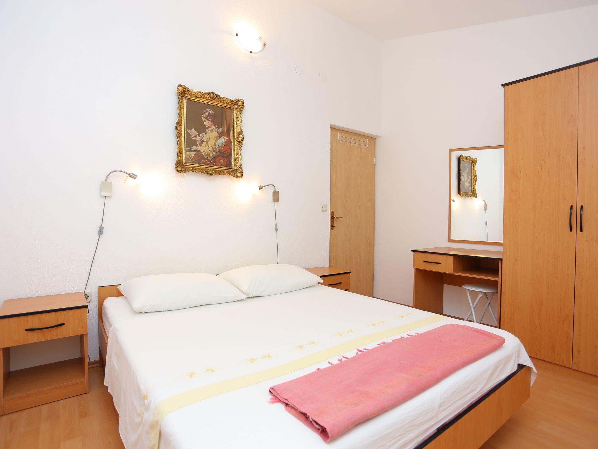 Ferienwohnung bietet Platz für 4 Gäste. Die Betten sind in Schlafzimmern, die es 1 gibt, und in Wohnzimmer, innerhalb einer Gesamtfläche von 41m2, angeordnet. Die Gäste haben eine eigene Terrasse zur Verfügung, auf der sie in warmen Sommernächten genießen können. Das Apartment bietet Meerblick. Es ist erlaubt, Speisen auf dem Gemeinschafts-Grill vorzubereiten. IM PREIS INBEGRIFFEN: Kurtaxe, Endreinigung, Klimatisierung, Parkplatz, Internet. VERBINDLICHE ZUSÄTZLICHE KOSTEN: Aufzahlung für Kurzaufenthalte (prozentualer Zuschlag pro Nächtigungsanzahl: 30% - 1, 20% - 2, 10% - 3). Die Verfügbarkeit zusätzlicher Dienstleistungen in Ihrem reservierten Termin und die Preise derselben (falls nicht aufgeführt) müssen im Voraus überprüft werden. Zusätzliche Dienstleistungen die in der Zahlungsaufforderung nicht aufgeführt sind werden direkt beim Vermieter bezahlt, angenommen der Gast nutzt auch diese.