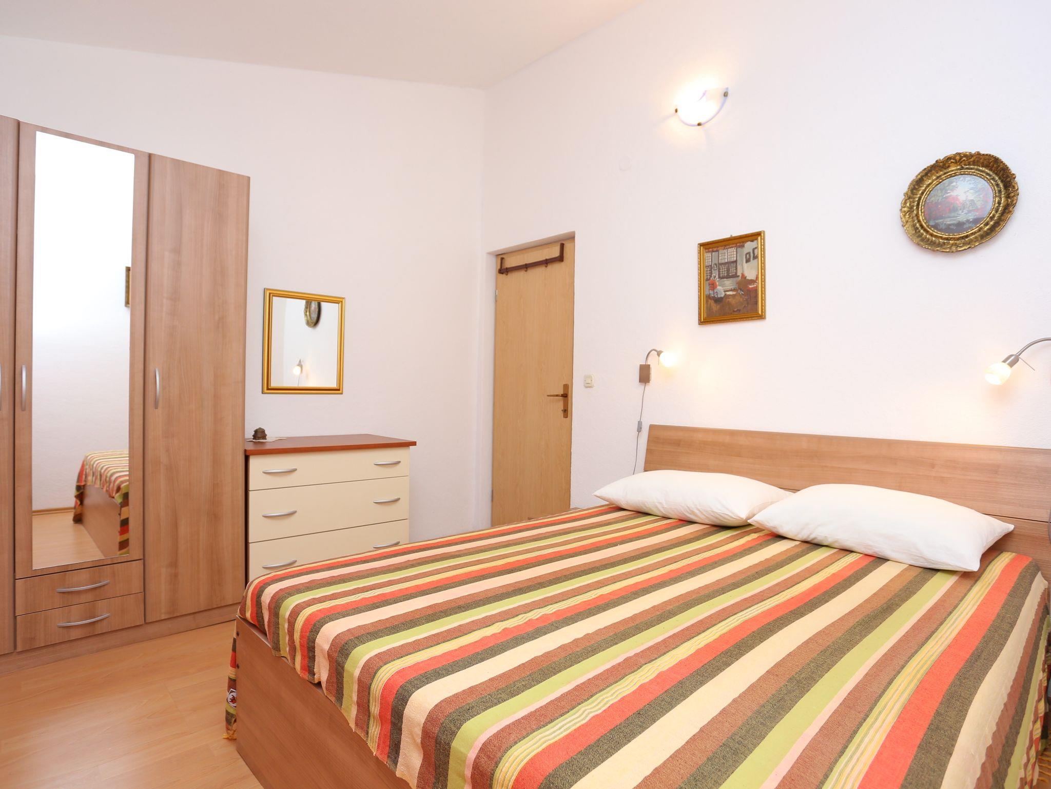 Ferienwohnung bietet Platz für 4 Gäste. Die Betten sind in Schlafzimmern, die es 2 gibt, innerhalb einer Gesamtfläche von 48m2, angeordnet. Die Gäste haben eine eigene Terrasse zur Verfügung, auf der sie in warmen Sommernächten genießen können. Das Apartment bietet Meerblick. Es ist erlaubt, Speisen auf dem Gemeinschafts-Grill vorzubereiten. IM PREIS INBEGRIFFEN: Kurtaxe, Endreinigung, Klimatisierung, Parkplatz, Internet. VERBINDLICHE ZUSÄTZLICHE KOSTEN: Aufzahlung für Kurzaufenthalte (prozentualer Zuschlag pro Nächtigungsanzahl: 30% - 1, 20% - 2, 10% - 3). Die Verfügbarkeit zusätzlicher Dienstleistungen in Ihrem reservierten Termin und die Preise derselben (falls nicht aufgeführt) müssen im Voraus überprüft werden. Zusätzliche Dienstleistungen die in der Zahlungsaufforderung nicht aufgeführt sind werden direkt beim Vermieter bezahlt, angenommen der Gast nutzt auch diese.