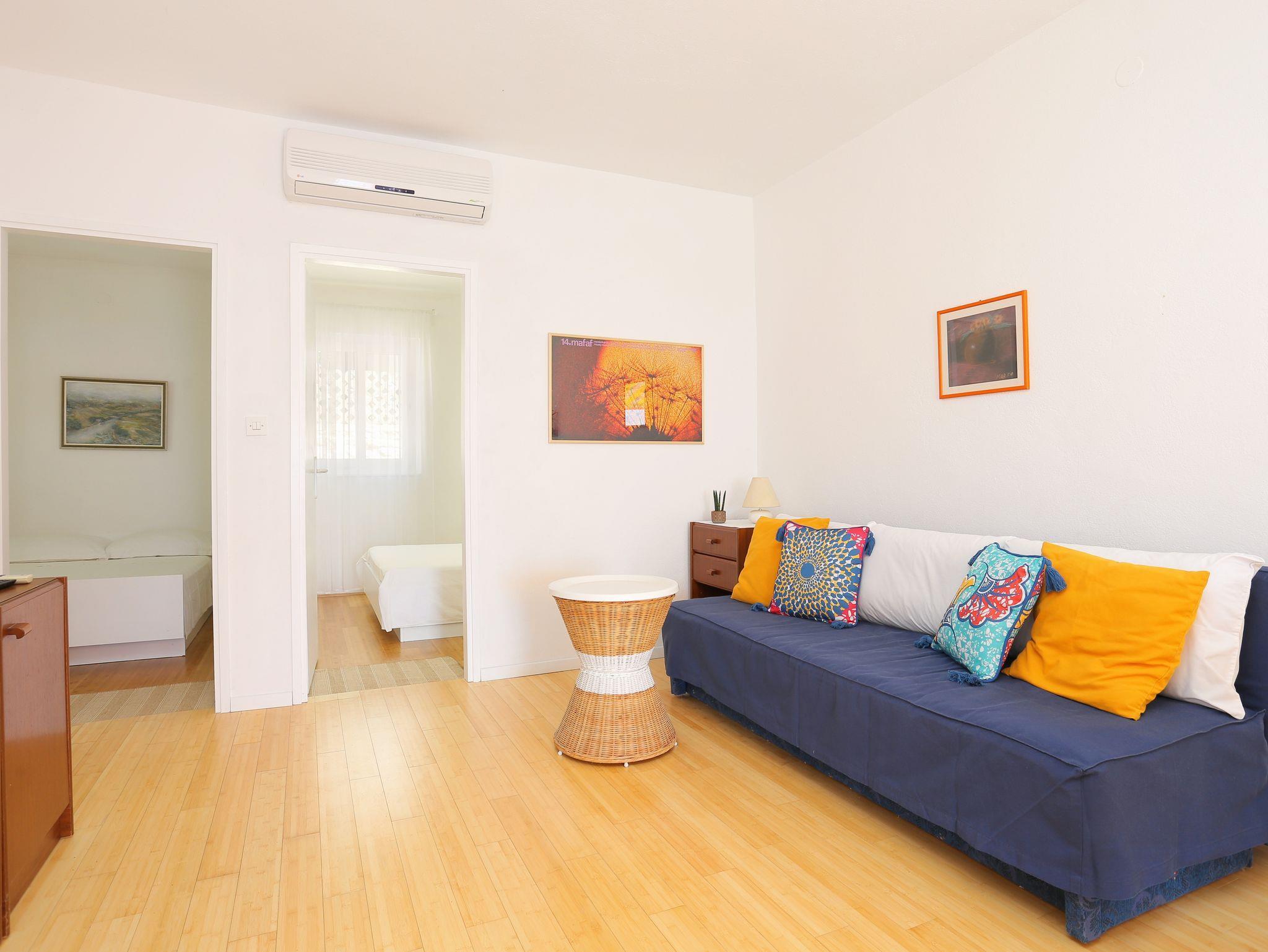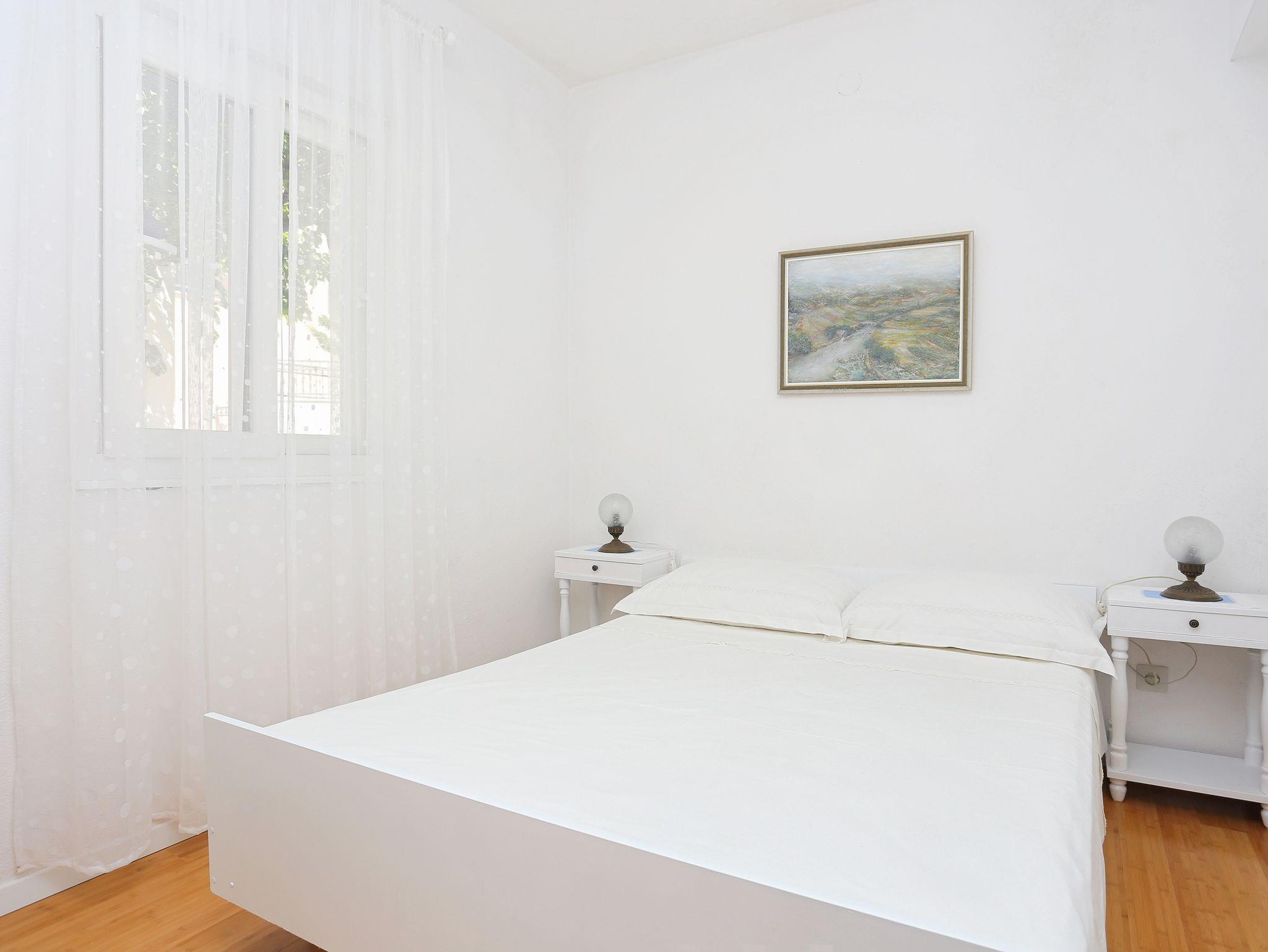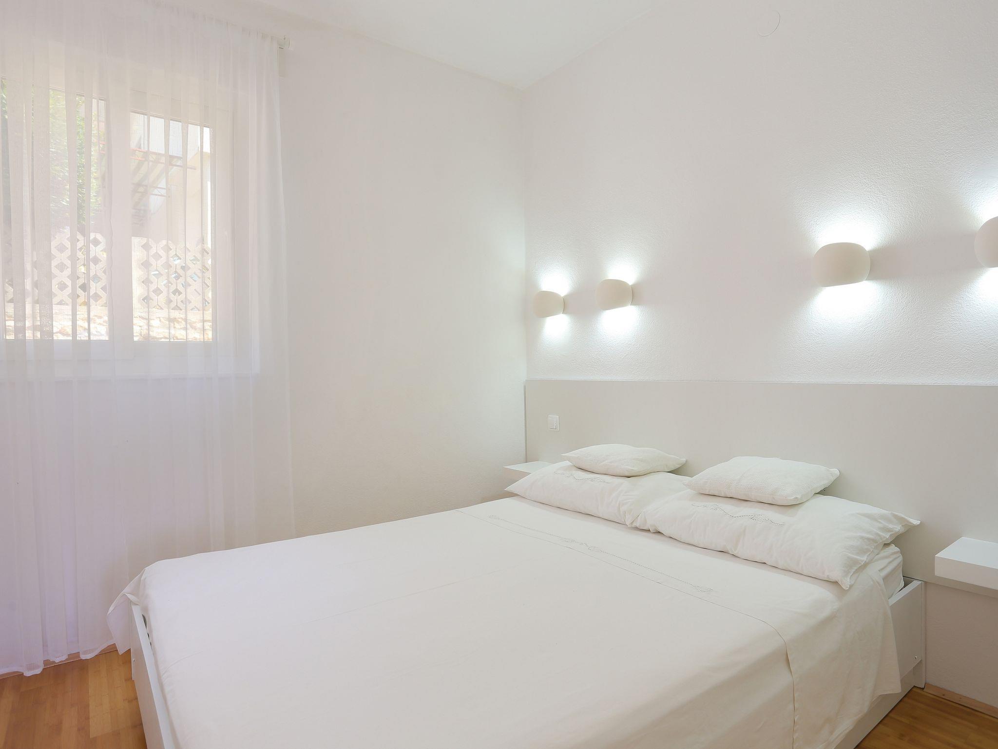 Ferienwohnung bietet Platz für 4 Gäste. Die Betten sind in Schlafzimmern, die es 2 gibt, innerhalb einer Gesamtfläche von 38m2, angeordnet. Die Gäste haben eine eigene Terrasse zur Verfügung, auf der sie in warmen Sommernächten genießen können. Das Apartment bietet Meerblick. Es ist erlaubt, Speisen auf dem Gemeinschafts-Grill vorzubereiten. In der Unterkunftseinheit besteht die Möglichkeit des Mitbringens von Haustieren gegen Aufpreis. IM PREIS INBEGRIFFEN: Kurtaxe, Endreinigung, Klimatisierung, Parkplatz, Internet, Bootsanlegeplatz. VERBINDLICHE ZUSÄTZLICHE KOSTEN: Aufzahlung für Kurzaufenthalte (prozentualer Zuschlag pro Nächtigungsanzahl: 30% - 1, 20% - 2, 10% - 3). UNVERBINDLICHE ZUSÄTZLICHE KOSTEN: Haustiere (5,00 € pro Nacht), Zusatzbett (5,00 € pro Nacht). Die Verfügbarkeit zusätzlicher Dienstleistungen in Ihrem reservierten Termin und die Preise derselben (falls nicht aufgeführt) müssen im Voraus überprüft werden. Zusätzliche Dienstleistungen die in der Zahlungsaufforderung nicht aufgeführt sind werden direkt beim Vermieter bezahlt, angenommen der Gast nutzt auch diese. Ermäßigung auf den Grundpreis: Gratistag 21=19 (bei einem Aufenthalt von 21 Tagen oder mehr erhalten Sie 2 Gratistage für den Aufenthalt bis 31.12.26).