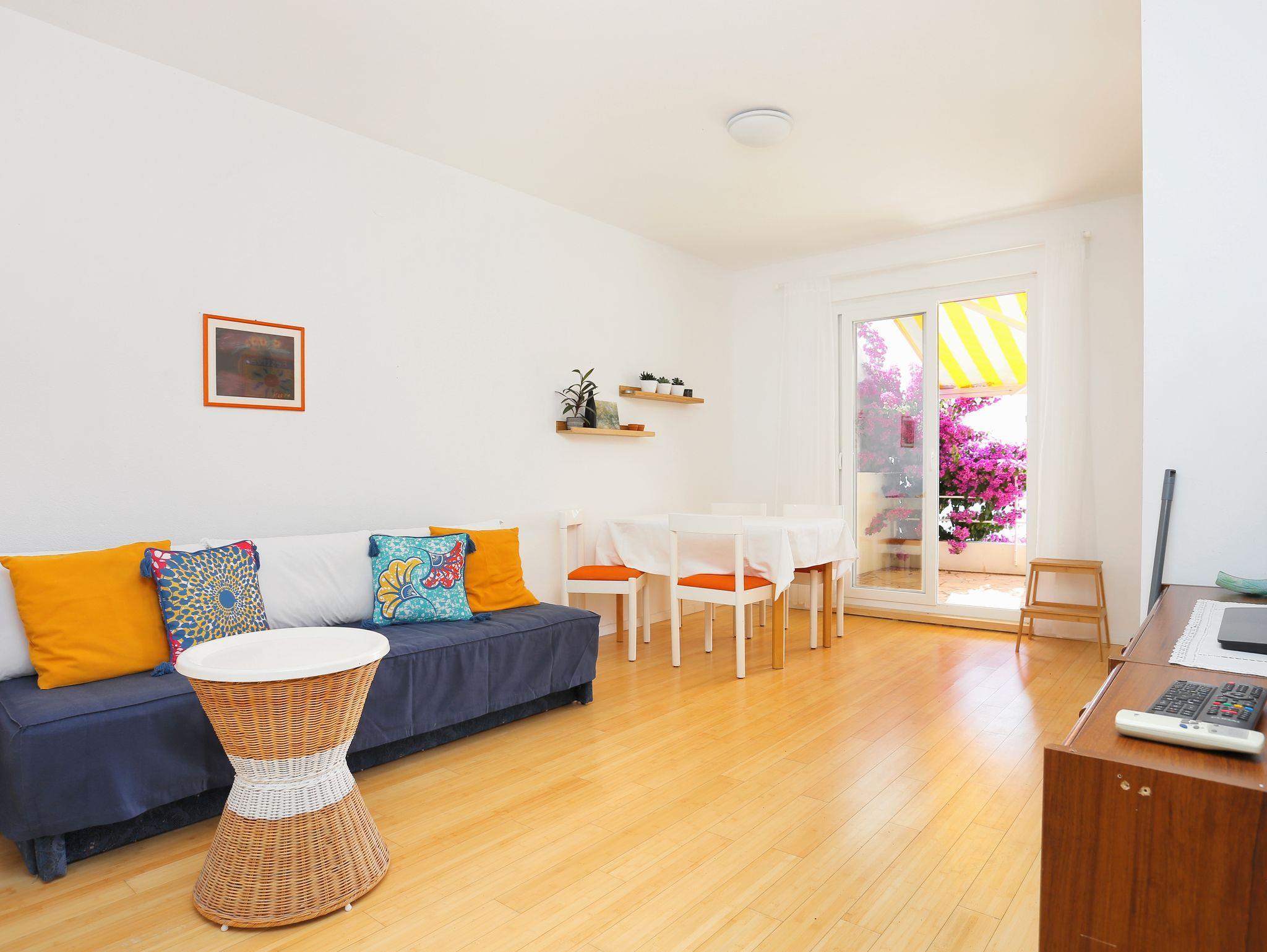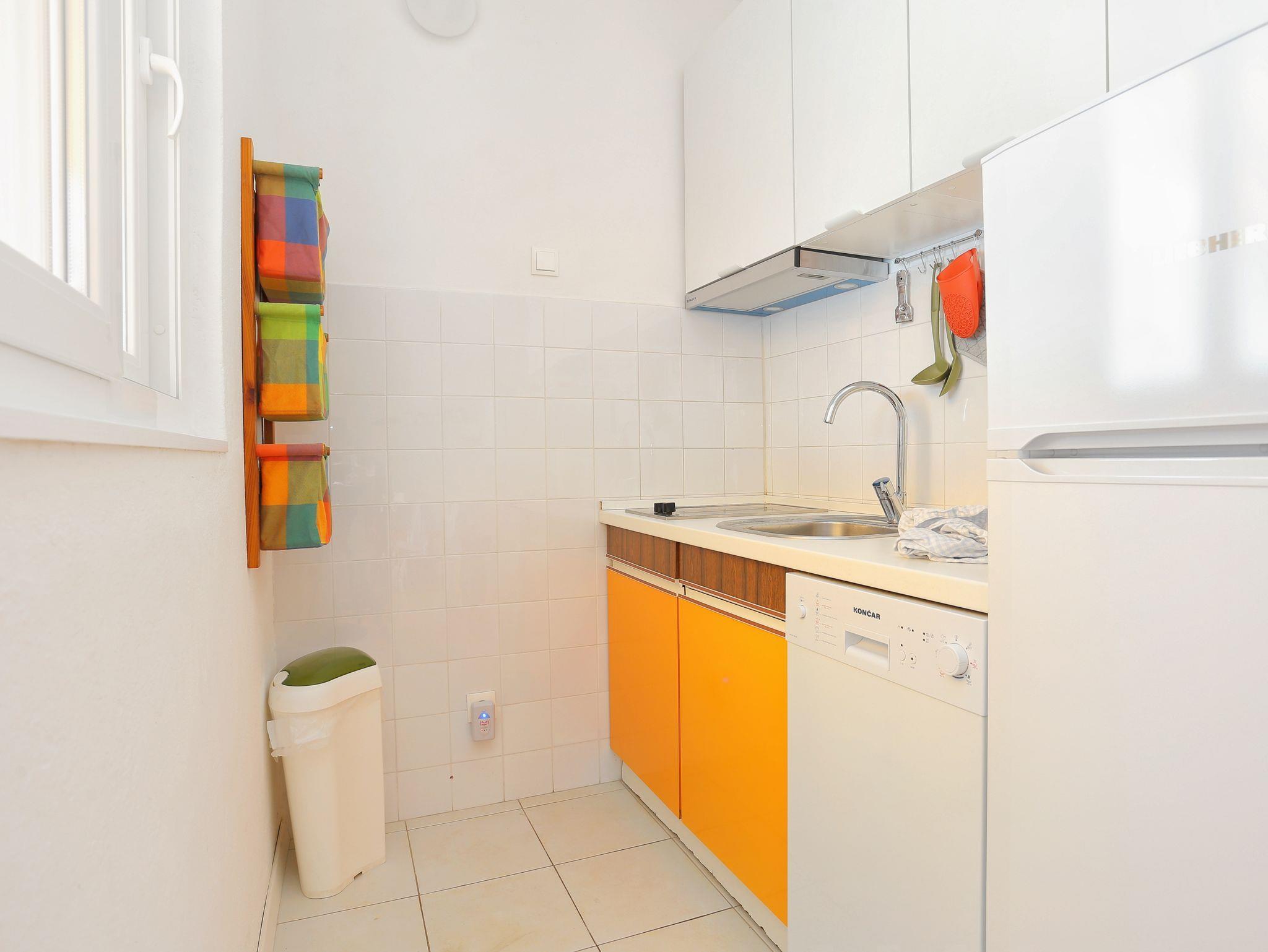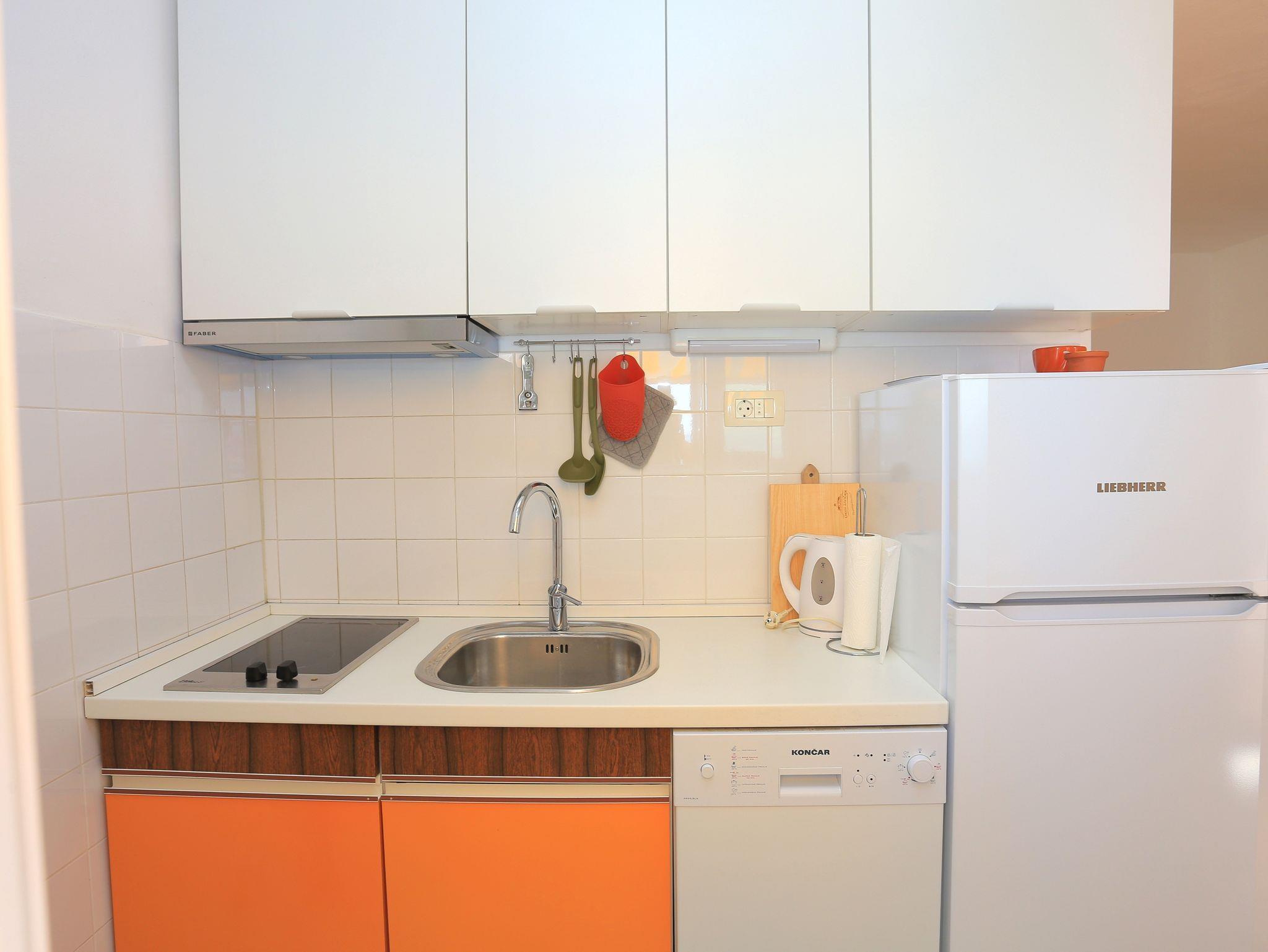 Ferienwohnung bietet Platz für 4 Gäste. Die Betten sind in Schlafzimmern, die es 2 gibt, innerhalb einer Gesamtfläche von 38m2, angeordnet. Die Gäste haben eine eigene Terrasse zur Verfügung, auf der sie in warmen Sommernächten genießen können. Das Apartment bietet Meerblick. Es ist erlaubt, Speisen auf dem Gemeinschafts-Grill vorzubereiten. In der Unterkunftseinheit besteht die Möglichkeit des Mitbringens von Haustieren gegen Aufpreis. IM PREIS INBEGRIFFEN: Kurtaxe, Endreinigung, Klimatisierung, Parkplatz, Internet, Bootsanlegeplatz. VERBINDLICHE ZUSÄTZLICHE KOSTEN: Aufzahlung für Kurzaufenthalte (prozentualer Zuschlag pro Nächtigungsanzahl: 30% - 1, 20% - 2, 10% - 3). UNVERBINDLICHE ZUSÄTZLICHE KOSTEN: Haustiere (5,00 € pro Nacht), Zusatzbett (5,00 € pro Nacht). Die Verfügbarkeit zusätzlicher Dienstleistungen in Ihrem reservierten Termin und die Preise derselben (falls nicht aufgeführt) müssen im Voraus überprüft werden. Zusätzliche Dienstleistungen die in der Zahlungsaufforderung nicht aufgeführt sind werden direkt beim Vermieter bezahlt, angenommen der Gast nutzt auch diese. Ermäßigung auf den Grundpreis: Gratistag 21=19 (bei einem Aufenthalt von 21 Tagen oder mehr erhalten Sie 2 Gratistage für den Aufenthalt bis 31.12.26).