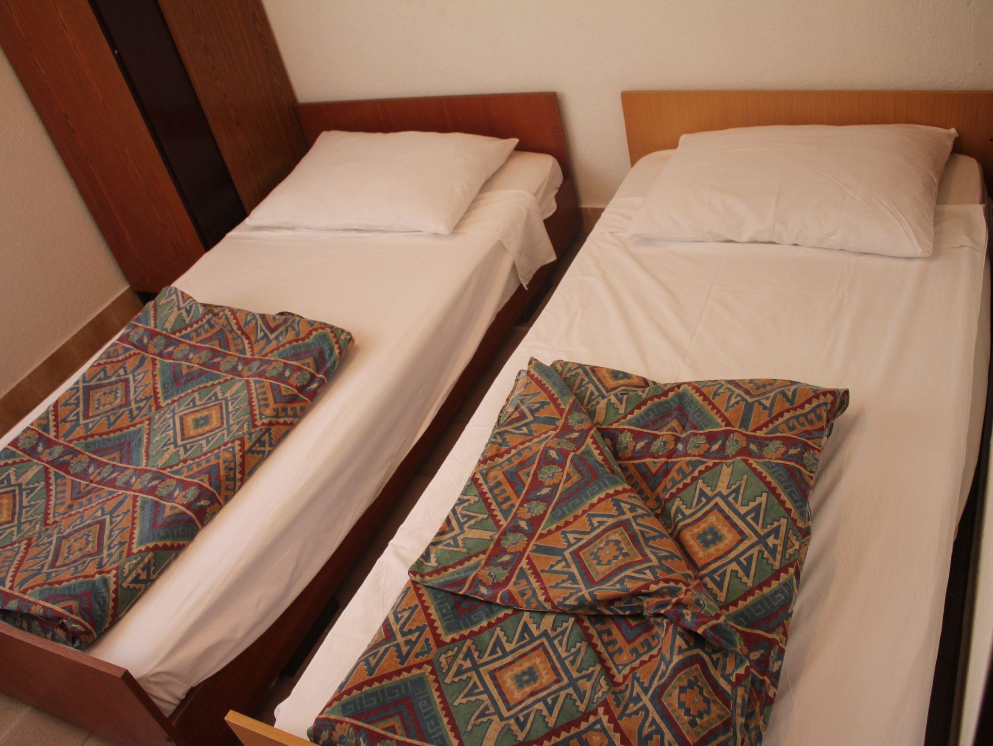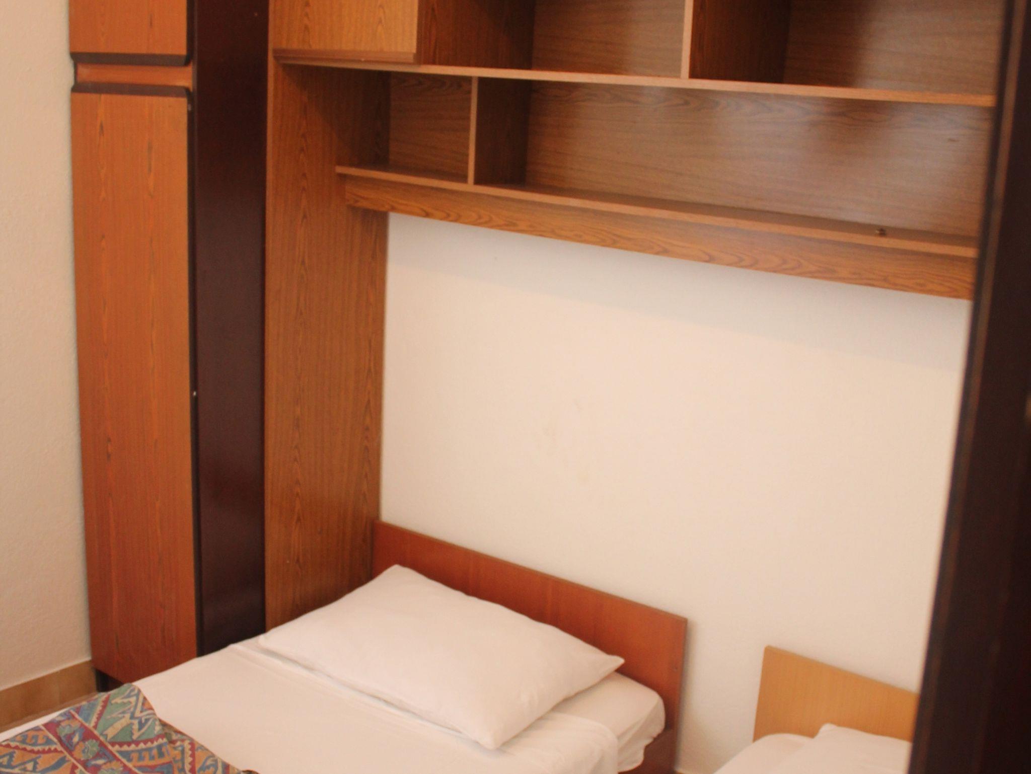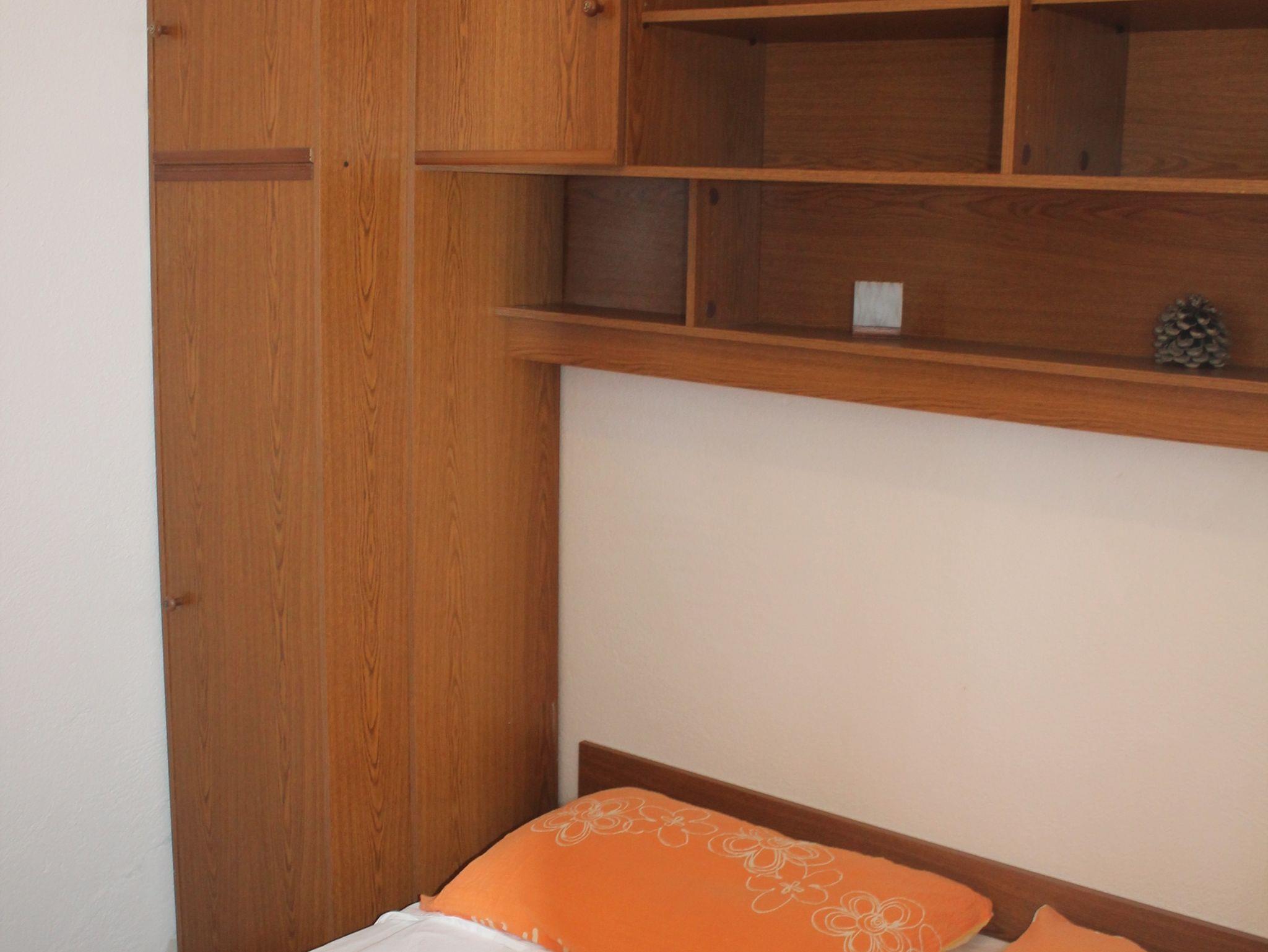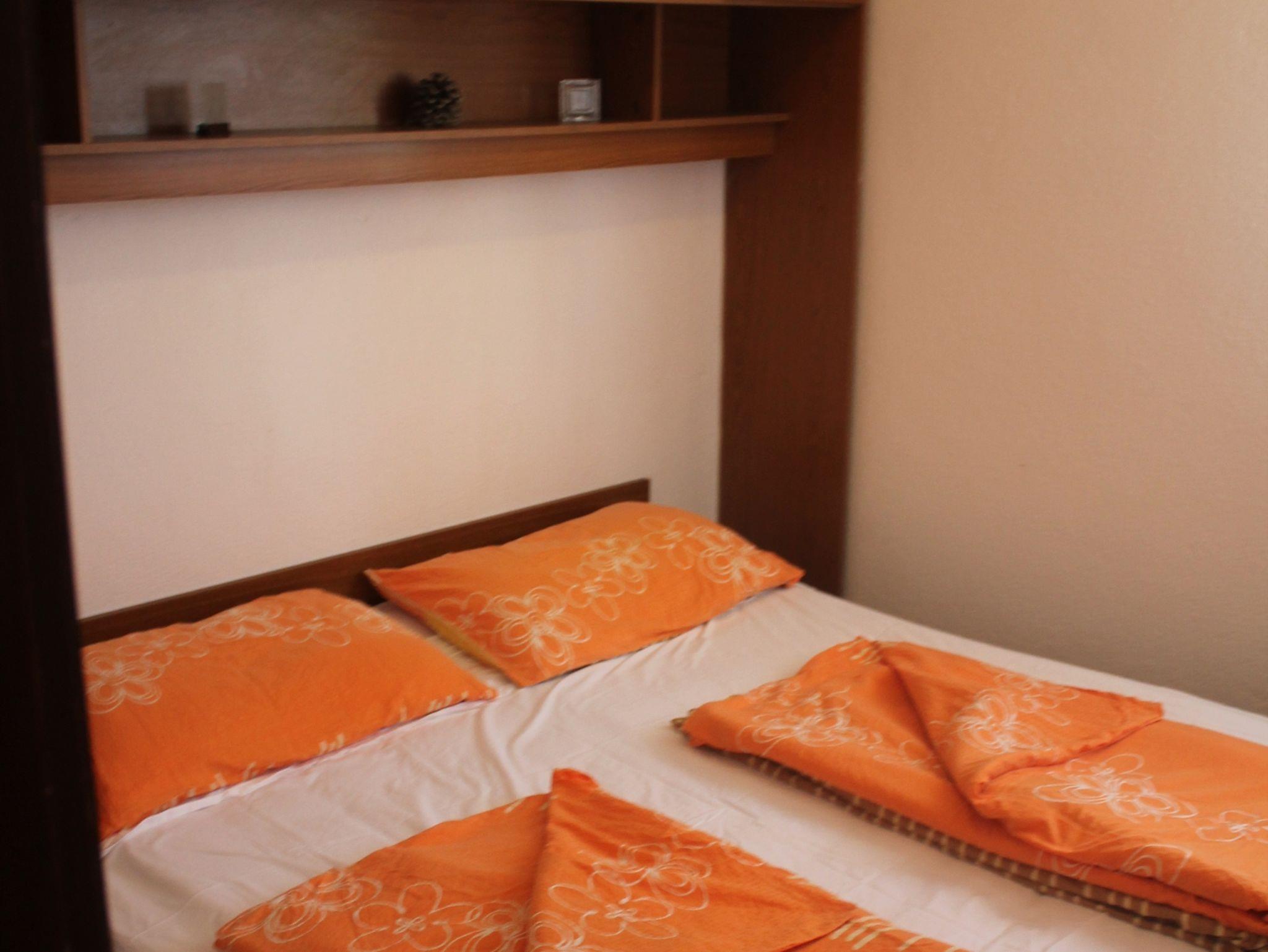 Ferienwohnung bietet Platz für 5 Gäste. Die Betten sind in Schlafzimmern, die es 2 gibt, und in Wohnzimmer, innerhalb einer Gesamtfläche von 42m2, angeordnet. Die Gäste haben eine eigene Terrasse zur Verfügung, auf der sie in warmen Sommernächten genießen können. Das Apartment bietet Meerblick. Es ist erlaubt, Speisen auf dem Gemeinschafts-Grill vorzubereiten. In der Unterkunftseinheit besteht die Möglichkeit des Mitbringens von Haustieren gegen Aufpreis. IM PREIS INBEGRIFFEN: Kurtaxe, Endreinigung, Parkplatz, Internet, Wäschewaschen, Bügeleisen, Bügelbrett, Föhn, Sonnenschirm. VERBINDLICHE ZUSÄTZLICHE KOSTEN: Aufzahlung für Kurzaufenthalte (prozentualer Zuschlag pro Nächtigungsanzahl: 30% - 1, 20% - 2, 10% - 3). UNVERBINDLICHE ZUSÄTZLICHE KOSTEN: Klimatisierung (5,00 € pro Nacht), Haustiere (10,00 € pro Nacht), Zusatzbett (10,00 € pro Nacht). Die Verfügbarkeit zusätzlicher Dienstleistungen in Ihrem reservierten Termin und die Preise derselben (falls nicht aufgeführt) müssen im Voraus überprüft werden. Zusätzliche Dienstleistungen die in der Zahlungsaufforderung nicht aufgeführt sind werden direkt beim Vermieter bezahlt, angenommen der Gast nutzt auch diese. Ermäßigung auf den Grundpreis: Gratistag 14=13 (bei einem Aufenthalt von 14 Tagen oder mehr erhalten Sie einen Gratistag für den Aufenthalt bis 31.12.26).