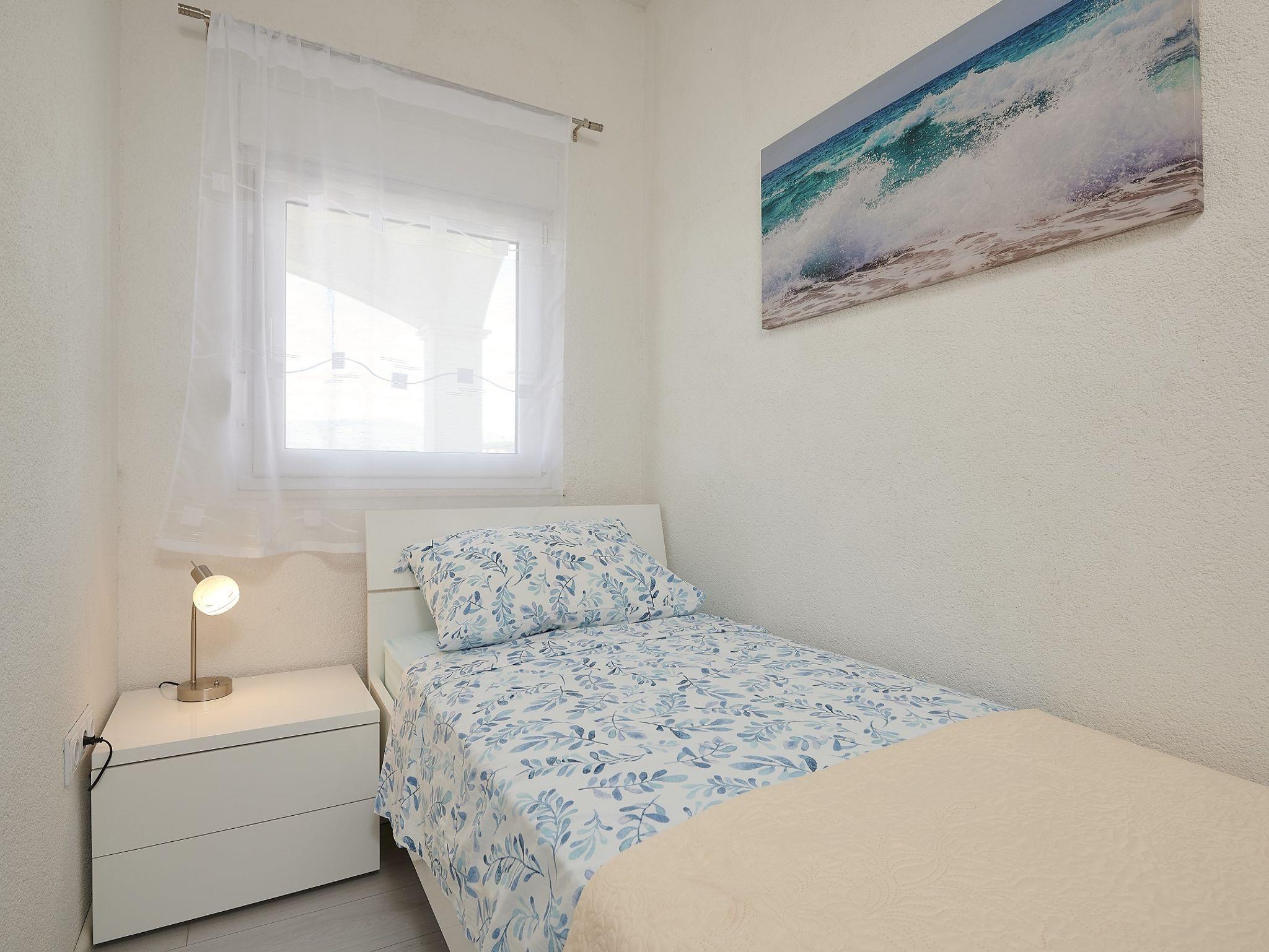 Ferienwohnung bietet Platz für 5 Gäste. Die Betten sind in Schlafzimmern, die es 3 gibt, innerhalb einer Gesamtfläche von 55m2, angeordnet. Die Gäste haben eine eigene Terrasse zur Verfügung, auf der sie in warmen Sommernächten genießen können. Das Apartment bietet Meerblick. Es ist erlaubt, Speisen auf dem Gemeinschafts-Grill vorzubereiten. IM PREIS INBEGRIFFEN: Kurtaxe, Endreinigung, Klimatisierung, Parkplatz, Internet, Kinderbett, Bügeleisen, Bügelbrett, Föhn. VERBINDLICHE ZUSÄTZLICHE KOSTEN: Aufzahlung für Kurzaufenthalte (prozentualer Zuschlag pro Nächtigungsanzahl: 30% - 1, 20% - 2, 10% - 3). Die Verfügbarkeit zusätzlicher Dienstleistungen in Ihrem reservierten Termin und die Preise derselben (falls nicht aufgeführt) müssen im Voraus überprüft werden. Zusätzliche Dienstleistungen die in der Zahlungsaufforderung nicht aufgeführt sind werden direkt beim Vermieter bezahlt, angenommen der Gast nutzt auch diese.