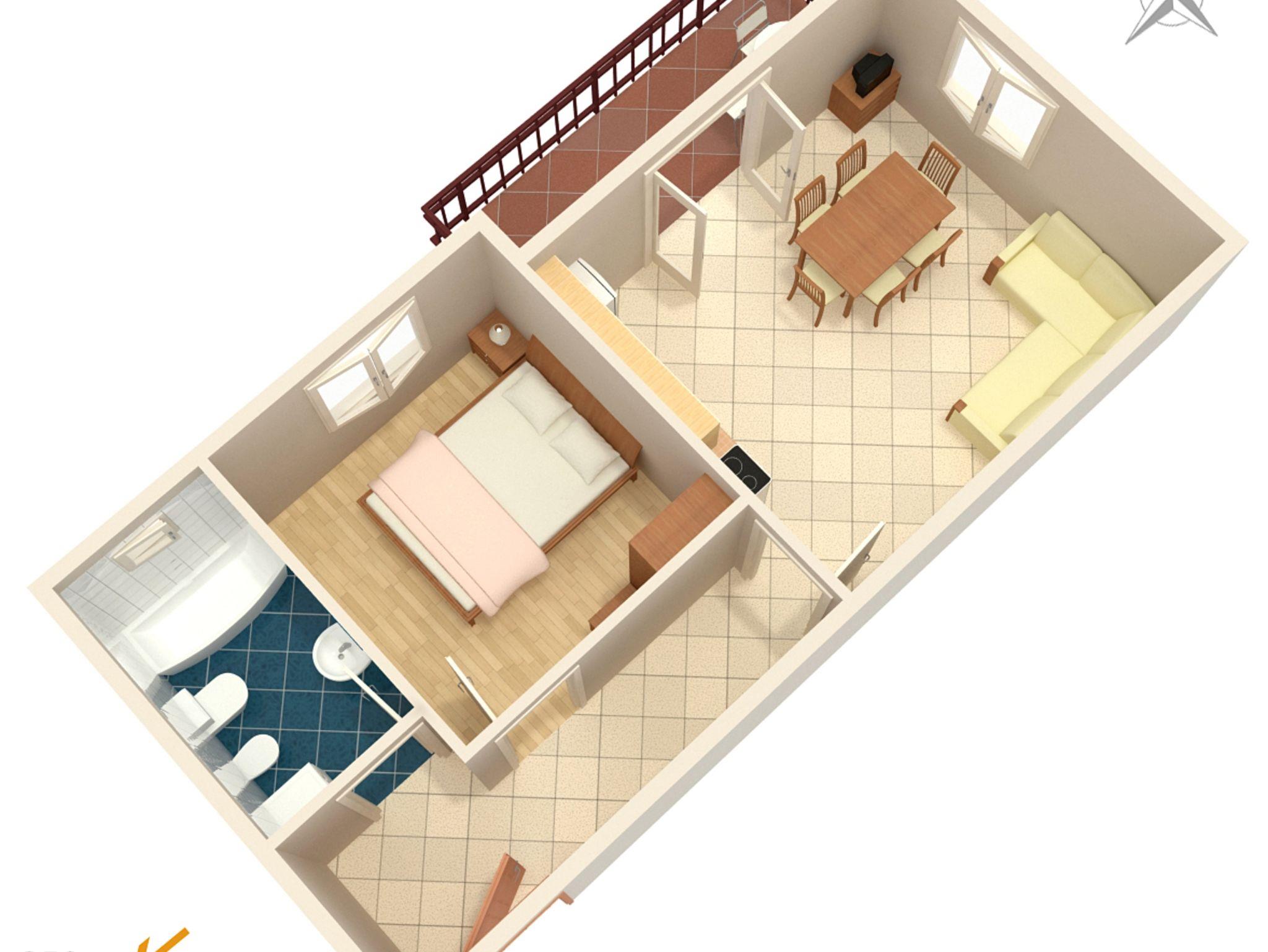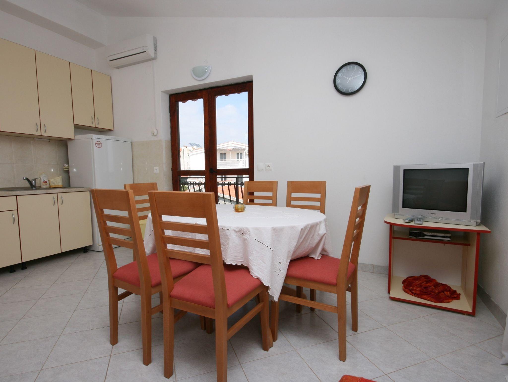 Ferienwohnung bietet Platz für 4 Gäste. Die Betten sind in Schlafzimmern, die es 1 gibt, und in Wohnzimmer, innerhalb einer Gesamtfläche von 38m2, angeordnet. Die Gäste haben einen eigenen Balkon zur Verfügung, auf der sie in warmen Sommernächten genießen können. Das Apartment bietet Meerblick. Es ist erlaubt, Speisen auf dem Gemeinschafts-Grill vorzubereiten. IM PREIS INBEGRIFFEN: Kurtaxe, Endreinigung, Klimatisierung, Parkplatz, Internet, Kinderbett, Zusatzbett. VERBINDLICHE ZUSÄTZLICHE KOSTEN: Aufzahlung für Kurzaufenthalte (prozentualer Zuschlag pro Nächtigungsanzahl: 30% - 1, 20% - 2, 10% - 3). Die Verfügbarkeit zusätzlicher Dienstleistungen in Ihrem reservierten Termin und die Preise derselben (falls nicht aufgeführt) müssen im Voraus überprüft werden. Zusätzliche Dienstleistungen die in der Zahlungsaufforderung nicht aufgeführt sind werden direkt beim Vermieter bezahlt, angenommen der Gast nutzt auch diese.
