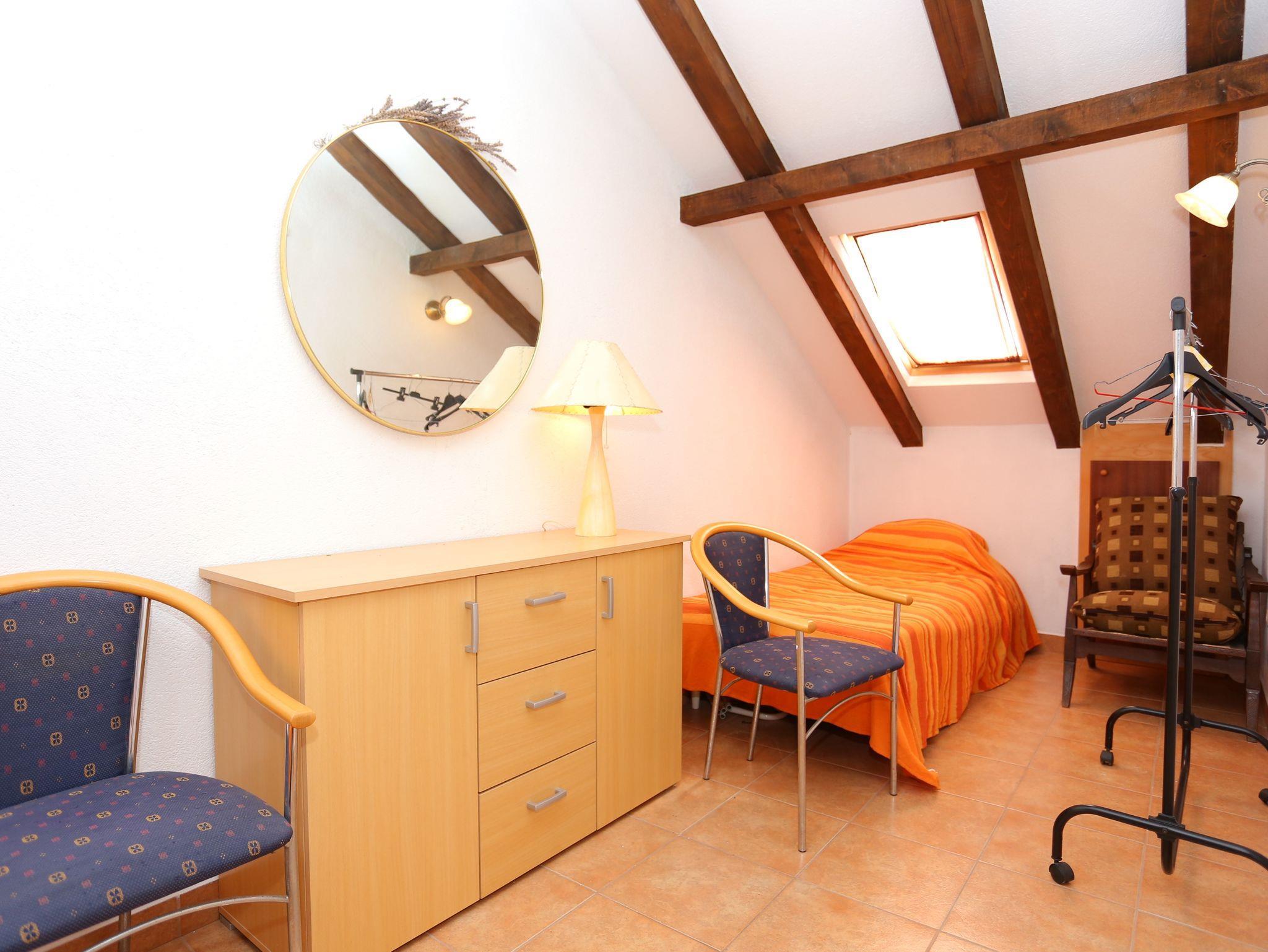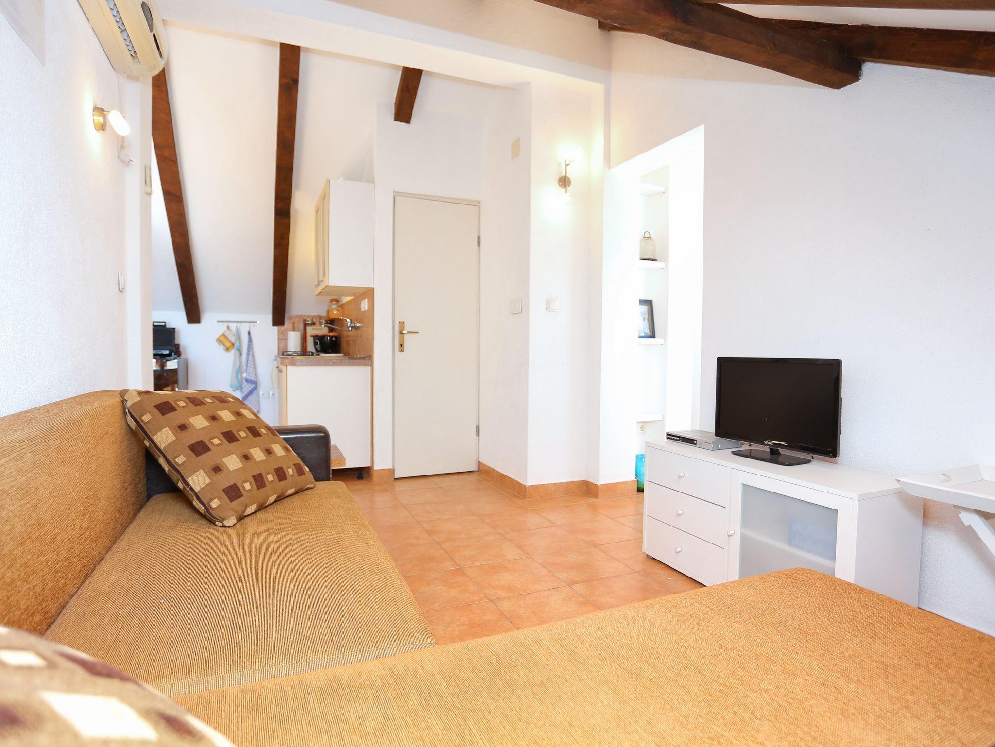 Ferienwohnung bietet Platz für 3 Gäste. Die Betten sind in Schlafzimmern, die es 1 gibt, innerhalb einer Gesamtfläche von 44m2, angeordnet. Die Gäste haben eine eigene Terrasse zur Verfügung, auf der sie in warmen Sommernächten genießen können. Das Apartment bietet Meerblick. IM PREIS INBEGRIFFEN: Kurtaxe, Endreinigung, Klimatisierung, Internet, Wäschewaschen, Kinderbett, Bügeleisen, Bügelbrett, Föhn, Liegestühle. VERBINDLICHE ZUSÄTZLICHE KOSTEN: Aufzahlung für Kurzaufenthalte (prozentualer Zuschlag pro Nächtigungsanzahl: 30% - 1, 20% - 2, 10% - 3). Die Verfügbarkeit zusätzlicher Dienstleistungen in Ihrem reservierten Termin und die Preise derselben (falls nicht aufgeführt) müssen im Voraus überprüft werden. Zusätzliche Dienstleistungen die in der Zahlungsaufforderung nicht aufgeführt sind werden direkt beim Vermieter bezahlt, angenommen der Gast nutzt auch diese.