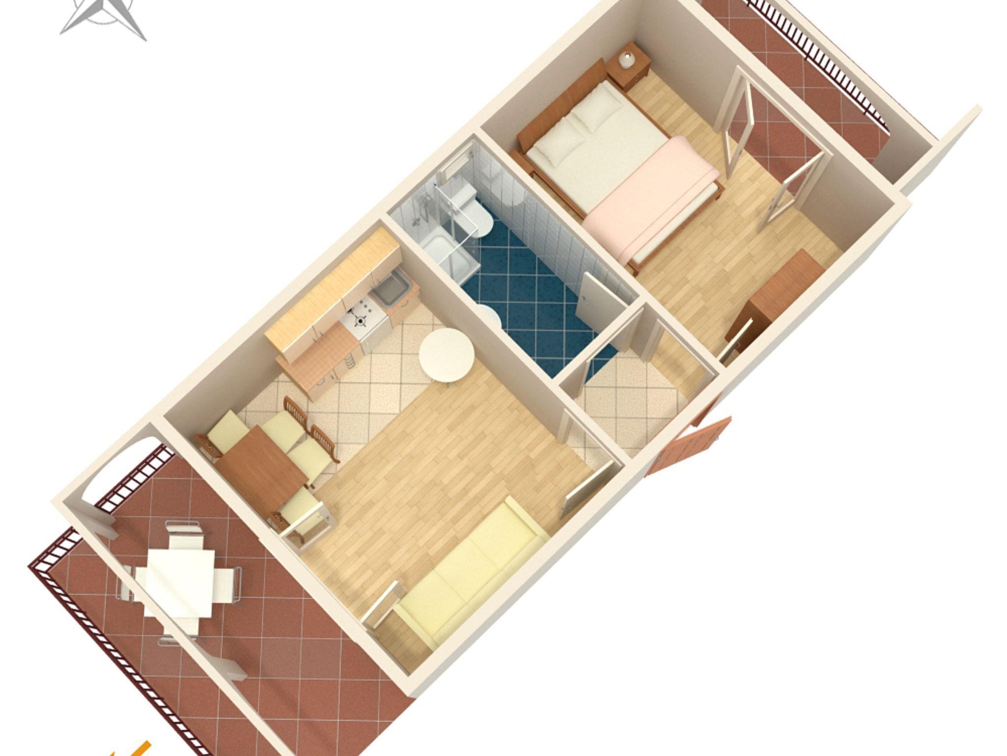 Ferienwohnung bietet Platz für 3 Gäste. Die Betten sind in Schlafzimmern, die es 1 gibt, und in Wohnzimmer, innerhalb einer Gesamtfläche von 32m2, angeordnet. Die Gäste haben eine eigene Terrasse zur Verfügung, auf der sie in warmen Sommernächten genießen können. Das Apartment bietet Meerblick. Es ist erlaubt, Speisen auf dem Gemeinschafts-Grill vorzubereiten. In der Unterkunftseinheit besteht die Möglichkeit des Mitbringens von Haustieren, und die Dienstleistung ist im Preis der Unterkunft enthalten. IM PREIS INBEGRIFFEN: Kurtaxe, Endreinigung, Klimatisierung, Parkplatz, Internet, Haustiere. Die Verfügbarkeit zusätzlicher Dienstleistungen in Ihrem reservierten Termin und die Preise derselben (falls nicht aufgeführt) müssen im Voraus überprüft werden. Zusätzliche Dienstleistungen die in der Zahlungsaufforderung nicht aufgeführt sind werden direkt beim Vermieter bezahlt, angenommen der Gast nutzt auch diese. Ermäßigung auf den Grundpreis: Gratistag 21=19 (bei einem Aufenthalt von 21 Tagen oder mehr erhalten Sie 2 Gratistage für den Aufenthalt bis 31.12.26).