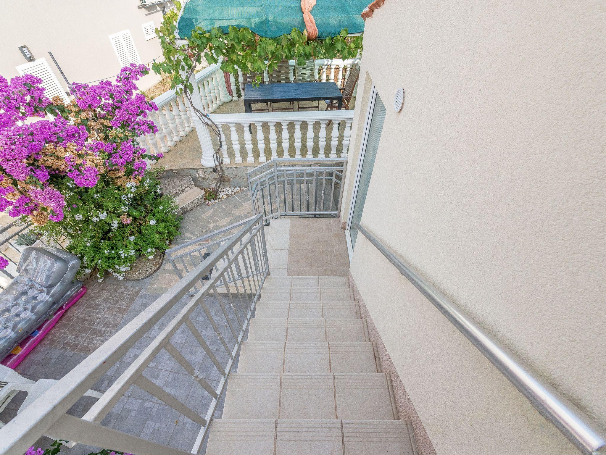 Ferienwohnung bietet Platz für 4 Gäste. Die Betten sind in Schlafzimmern, die es 2 gibt, innerhalb einer Gesamtfläche von 33m2, angeordnet. Die Gäste haben eine eigene Terrasse zur Verfügung, auf der sie in warmen Sommernächten genießen können. Das Apartment bietet Meerblick. Es ist erlaubt, Speisen auf dem Gemeinschafts-Grill vorzubereiten. In der Unterkunftseinheit besteht die Möglichkeit des Mitbringens von Haustieren gegen Aufpreis. Unterkunftseinheit hat Räume, die von dem Rest der Einheit abgetrennt werden. IM PREIS INBEGRIFFEN: Kurtaxe, Endreinigung, Klimatisierung, Parkplatz, Internet, Wäschewaschen, Bügeleisen, Bügelbrett, Föhn. VERBINDLICHE ZUSÄTZLICHE KOSTEN: Aufzahlung für Kurzaufenthalte (prozentualer Zuschlag pro Nächtigungsanzahl: 30% - 1, 20% - 2, 10% - 3). UNVERBINDLICHE ZUSÄTZLICHE KOSTEN: Haustiere (7,00 € pro Nacht). Die Verfügbarkeit zusätzlicher Dienstleistungen in Ihrem reservierten Termin und die Preise derselben (falls nicht aufgeführt) müssen im Voraus überprüft werden. Zusätzliche Dienstleistungen die in der Zahlungsaufforderung nicht aufgeführt sind werden direkt beim Vermieter bezahlt, angenommen der Gast nutzt auch diese.