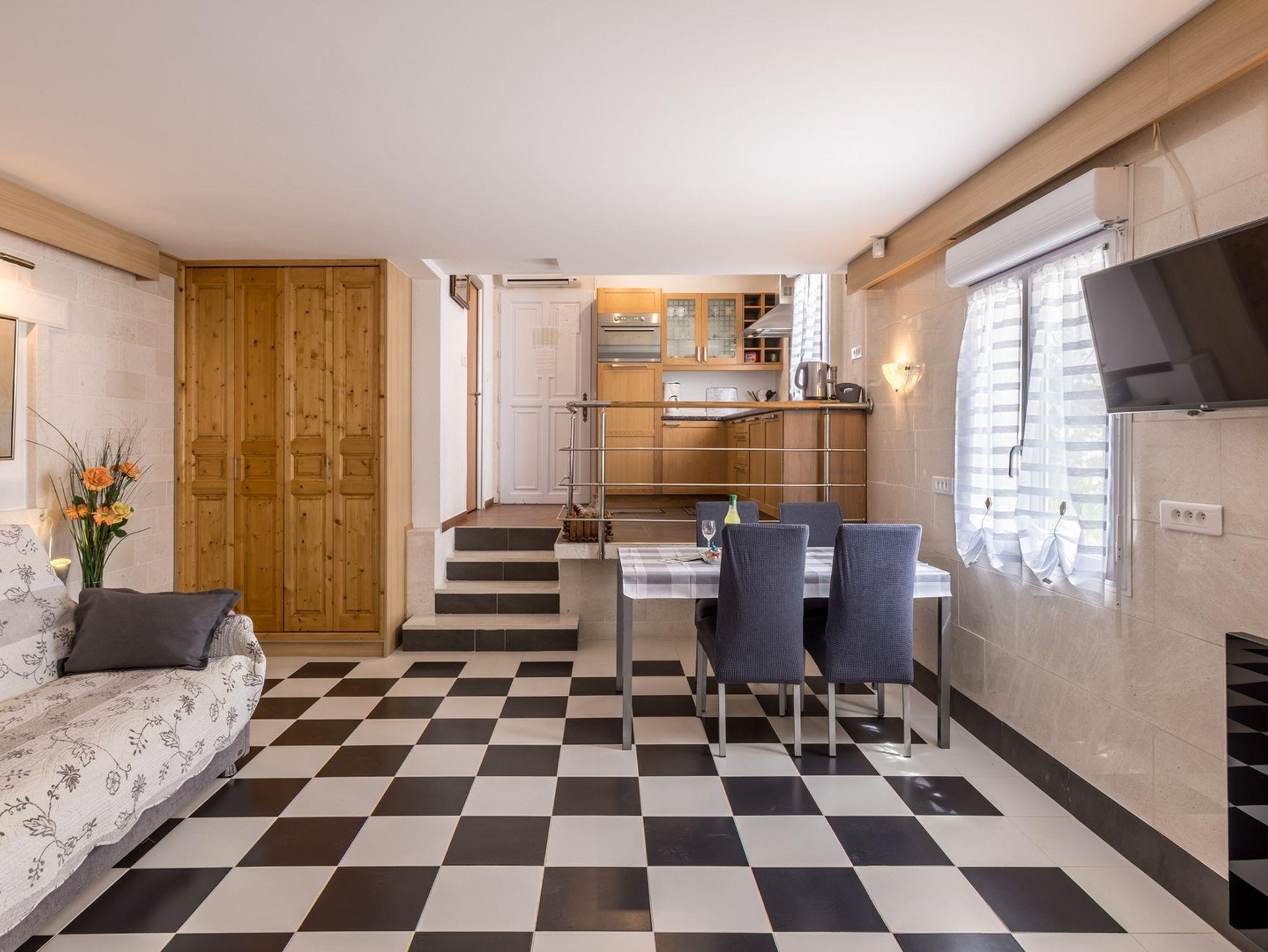 Studio bietet Platz für 2 Gäste. Die Betten sind in Schlafzimmern, die es 1 gibt, innerhalb einer Gesamtfläche von 49m2, angeordnet. Die Gäste haben eine eigene Terrasse zur Verfügung, auf der sie in warmen Sommernächten genießen können. Es ist erlaubt, Speisen auf dem Gemeinschafts-Grill vorzubereiten. IM PREIS INBEGRIFFEN: Kurtaxe, Endreinigung, Klimatisierung, Parkplatz, Internet, Kinderbett, Bügeleisen, Föhn. Die Verfügbarkeit zusätzlicher Dienstleistungen in Ihrem reservierten Termin und die Preise derselben (falls nicht aufgeführt) müssen im Voraus überprüft werden. Zusätzliche Dienstleistungen die in der Zahlungsaufforderung nicht aufgeführt sind werden direkt beim Vermieter bezahlt, angenommen der Gast nutzt auch diese.