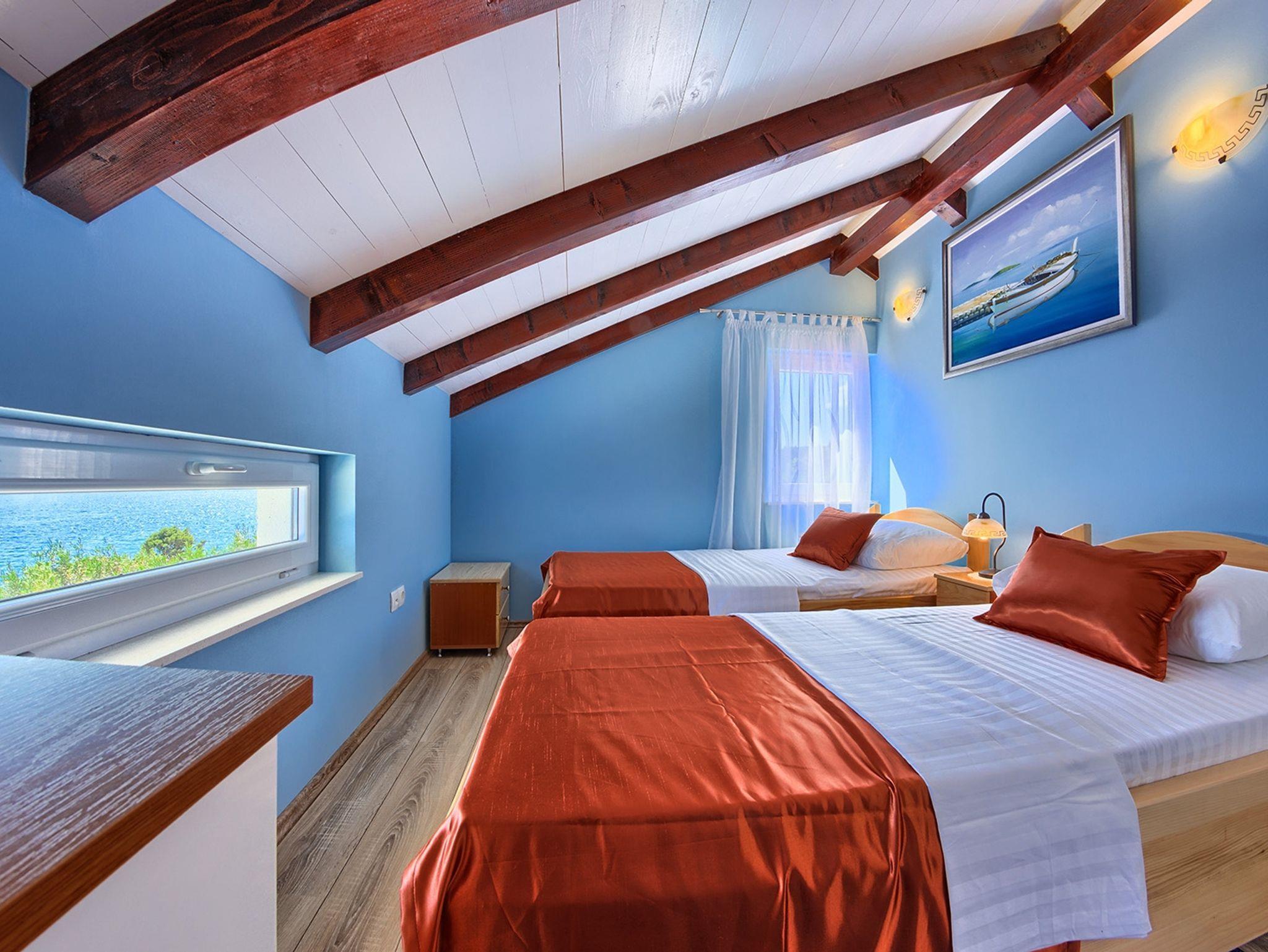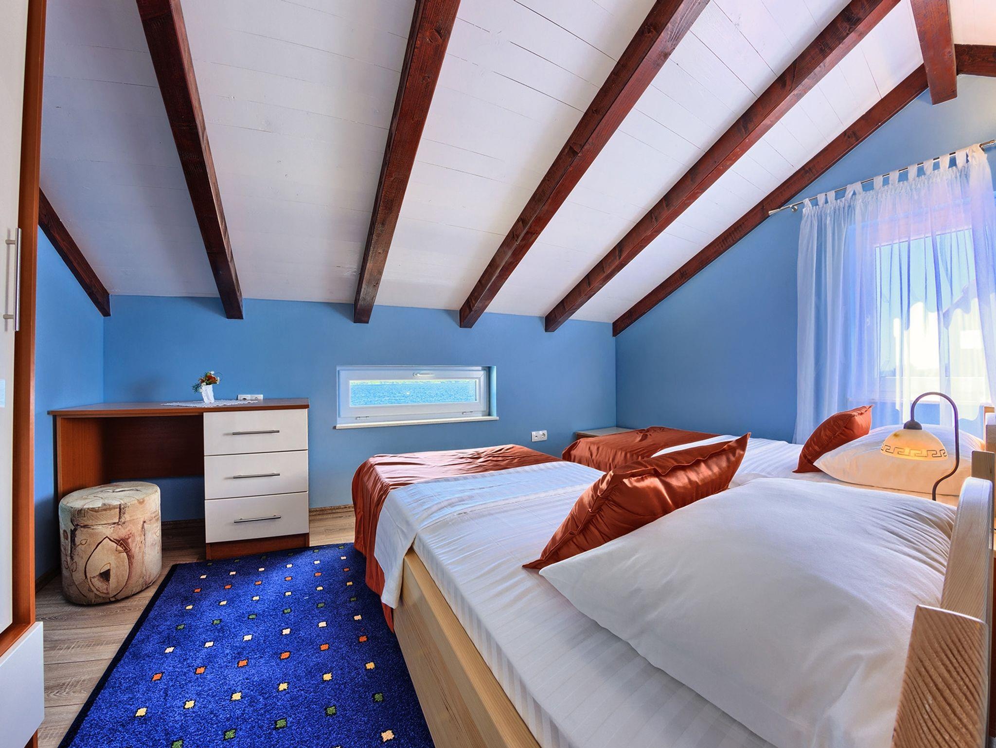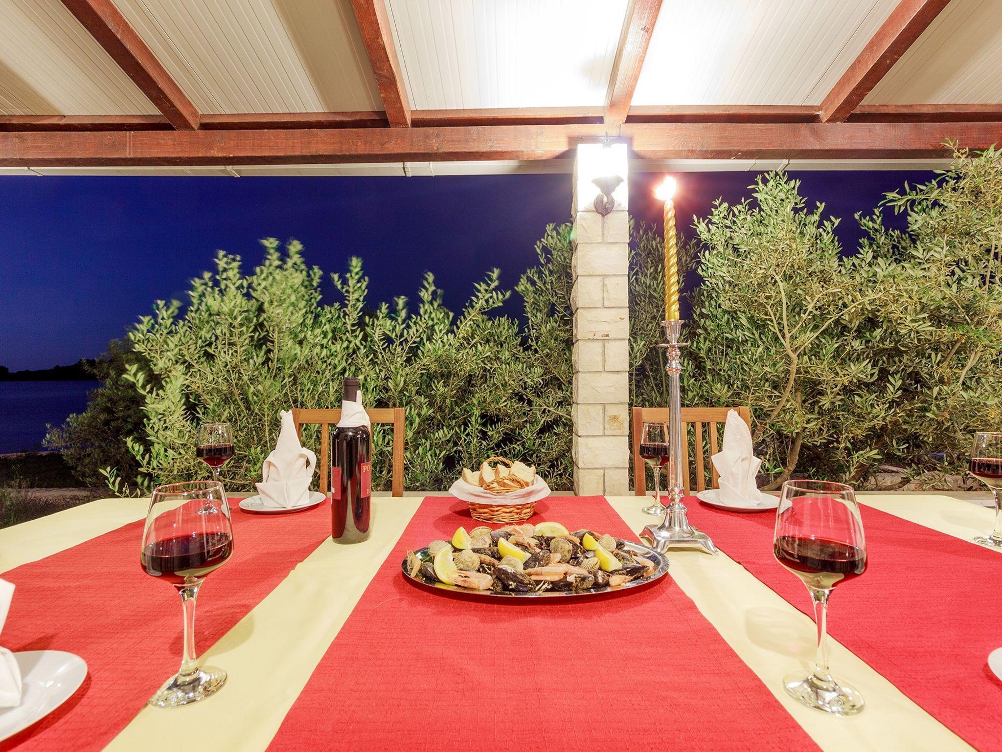 Haus bietet Platz für 8 Gäste. Die Betten sind in Schlafzimmern, die es 4 gibt, und in Wohnzimmer, innerhalb einer Gesamtfläche von 100m2, angeordnet. Die Gäste haben eine eigene Terrasse zur Verfügung, auf der sie in warmen Sommernächten genießen können. Das Haus bietet Meerblick. Für vollen Genuss und Entspannung gibt es einen privaten Grill für Gäste dieser Unterkunft. Während ihres Aufenthalts können sich Gäste im privaten Schwimmbad entspannen. In der Unterkunftseinheit besteht die Möglichkeit des Mitbringens von Haustieren, und die Dienstleistung ist im Preis der Unterkunft enthalten. In der gebuchten Unterkunftseinheit zahlt man am Ort ein Depositum ( der Preis ist an der Internetseite angeführt ). IM PREIS INBEGRIFFEN: Kurtaxe, Endreinigung, Klimatisierung, Pool, Parkplatz, Internet, Bootsanlegeplatz, Haustiere, Kinderbett, Bügeleisen, Föhn, Sonnenschirm, Liegestühle. VERBINDLICHE ZUSÄTZLICHE KOSTEN: Kaution (500,00 € Einmalzahlung), Aufzahlung für Kurzaufenthalte (prozentualer Zuschlag pro Nächtigungsanzahl: 30% - 1, 20% - 2, 10% - 3). UNVERBINDLICHE ZUSÄTZLICHE KOSTEN: Wäschewaschen (20,00 € Waschen), Zusatzbett (20,00 € pro Nacht). Die Verfügbarkeit zusätzlicher Dienstleistungen in Ihrem reservierten Termin und die Preise derselben (falls nicht aufgeführt) müssen im Voraus überprüft werden. Zusätzliche Dienstleistungen die in der Zahlungsaufforderung nicht aufgeführt sind werden direkt beim Vermieter bezahlt, angenommen der Gast nutzt auch diese.
