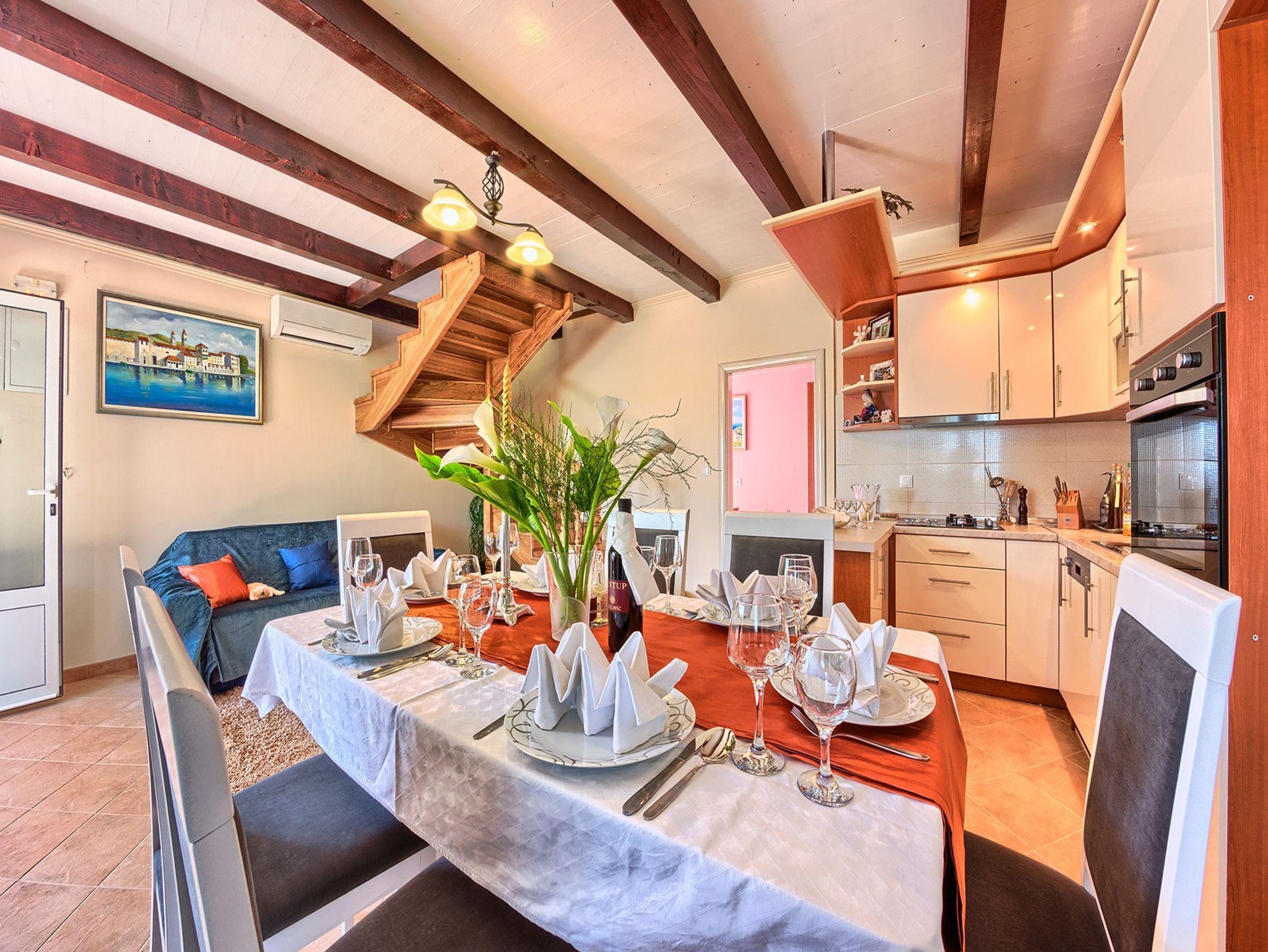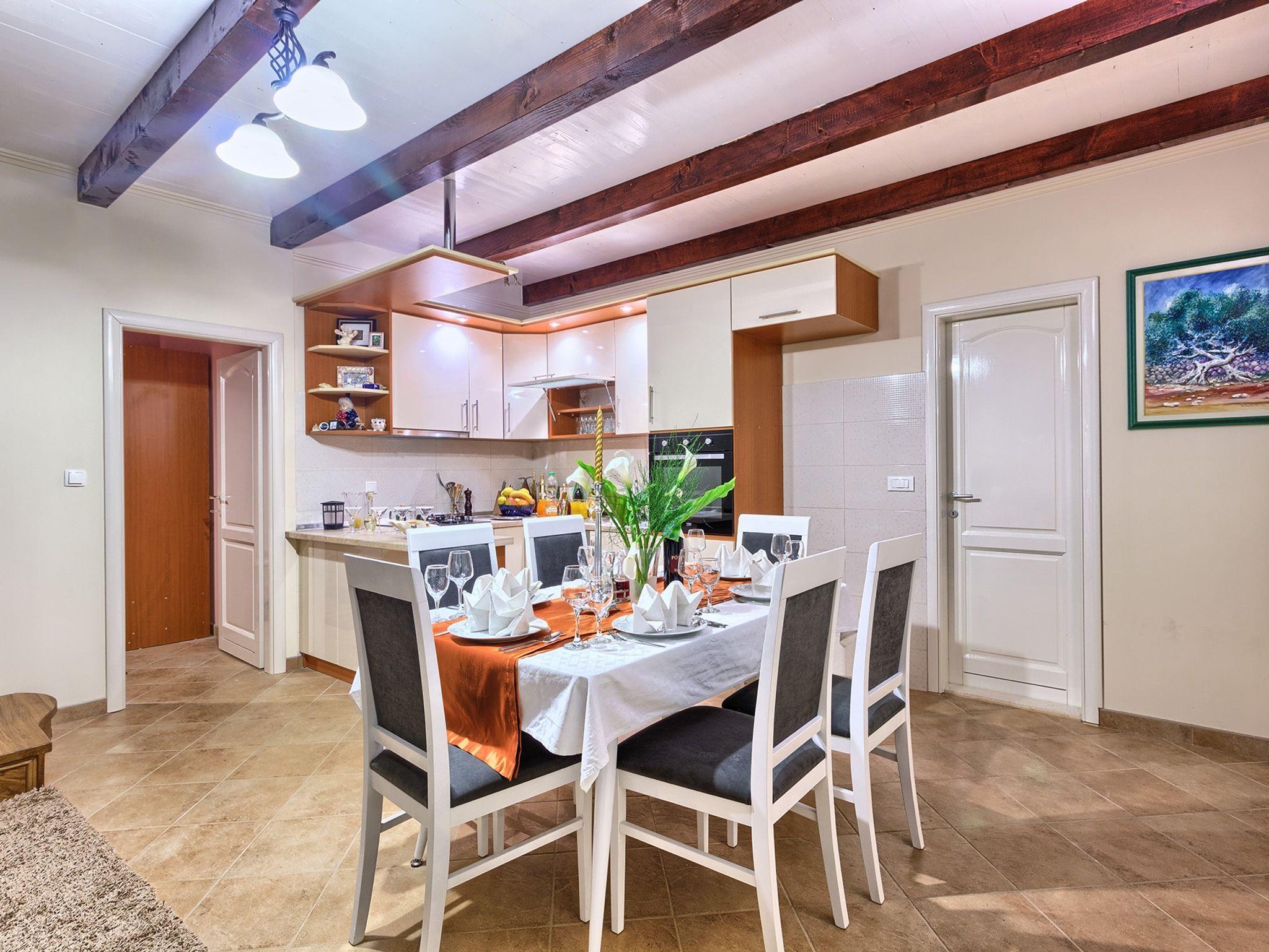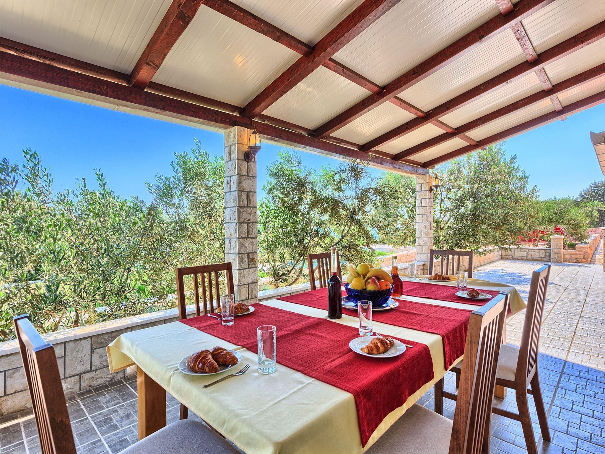 Haus bietet Platz für 8 Gäste. Die Betten sind in Schlafzimmern, die es 4 gibt, und in Wohnzimmer, innerhalb einer Gesamtfläche von 100m2, angeordnet. Die Gäste haben eine eigene Terrasse zur Verfügung, auf der sie in warmen Sommernächten genießen können. Das Haus bietet Meerblick. Für vollen Genuss und Entspannung gibt es einen privaten Grill für Gäste dieser Unterkunft. Während ihres Aufenthalts können sich Gäste im privaten Schwimmbad entspannen. In der Unterkunftseinheit besteht die Möglichkeit des Mitbringens von Haustieren, und die Dienstleistung ist im Preis der Unterkunft enthalten. In der gebuchten Unterkunftseinheit zahlt man am Ort ein Depositum ( der Preis ist an der Internetseite angeführt ). IM PREIS INBEGRIFFEN: Kurtaxe, Endreinigung, Klimatisierung, Pool, Parkplatz, Internet, Bootsanlegeplatz, Haustiere, Kinderbett, Bügeleisen, Föhn, Sonnenschirm, Liegestühle. VERBINDLICHE ZUSÄTZLICHE KOSTEN: Kaution (500,00 € Einmalzahlung), Aufzahlung für Kurzaufenthalte (prozentualer Zuschlag pro Nächtigungsanzahl: 30% - 1, 20% - 2, 10% - 3). UNVERBINDLICHE ZUSÄTZLICHE KOSTEN: Wäschewaschen (20,00 € Waschen), Zusatzbett (20,00 € pro Nacht). Die Verfügbarkeit zusätzlicher Dienstleistungen in Ihrem reservierten Termin und die Preise derselben (falls nicht aufgeführt) müssen im Voraus überprüft werden. Zusätzliche Dienstleistungen die in der Zahlungsaufforderung nicht aufgeführt sind werden direkt beim Vermieter bezahlt, angenommen der Gast nutzt auch diese.