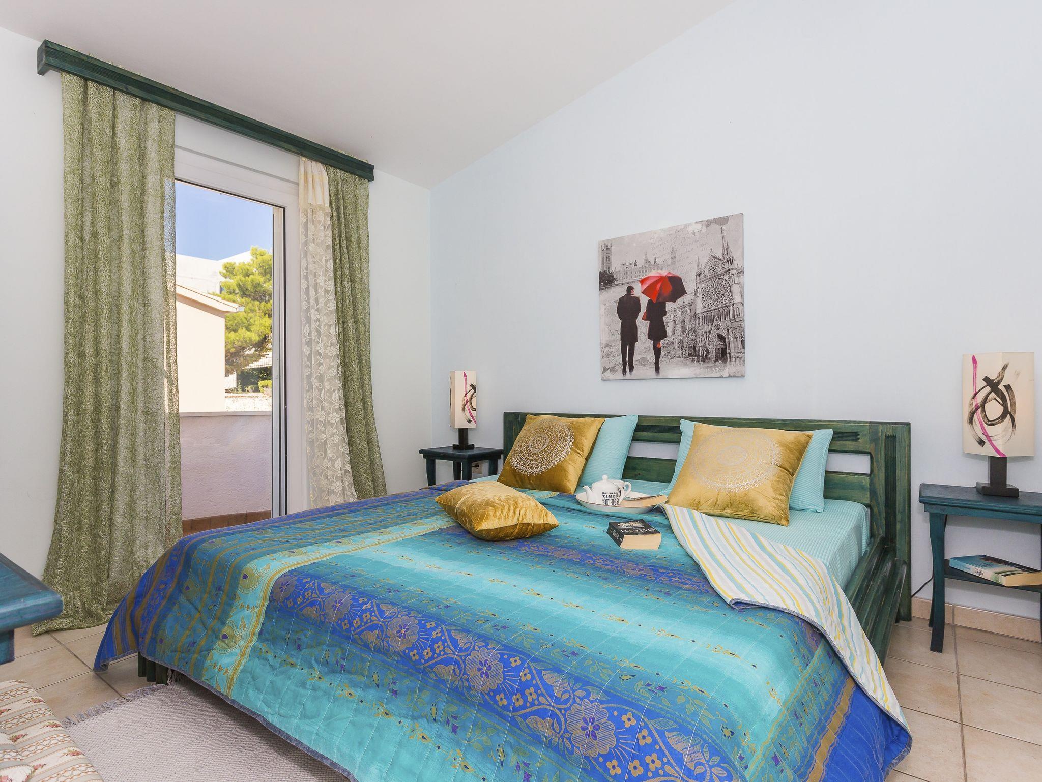 Ferienwohnung bietet Platz für 4 Gäste. Die Betten sind in Schlafzimmern, die es 2 gibt, innerhalb einer Gesamtfläche von 70m2, angeordnet. Die Gäste haben eine eigene Terrasse zur Verfügung, auf der sie in warmen Sommernächten genießen können. Das Apartment bietet Meerblick. Es ist erlaubt, Speisen auf dem Gemeinschafts-Grill vorzubereiten. Während ihres Aufenthalts können Gäste das gemeinsam zur Nutzung stehende Schwimmbad benutzen. In der Unterkunftseinheit besteht die Möglichkeit des Mitbringens von Haustieren gegen Aufpreis. IM PREIS INBEGRIFFEN: Kurtaxe, Endreinigung, Klimatisierung, Pool, Parkplatz, Internet, Wäschewaschen, Bügeleisen, Bügelbrett, Föhn, Sonnenschirm, Liegestühle. UNVERBINDLICHE ZUSÄTZLICHE KOSTEN: Haustiere (10,00 € pro Nacht). Die Verfügbarkeit zusätzlicher Dienstleistungen in Ihrem reservierten Termin und die Preise derselben (falls nicht aufgeführt) müssen im Voraus überprüft werden. Zusätzliche Dienstleistungen die in der Zahlungsaufforderung nicht aufgeführt sind werden direkt beim Vermieter bezahlt, angenommen der Gast nutzt auch diese.