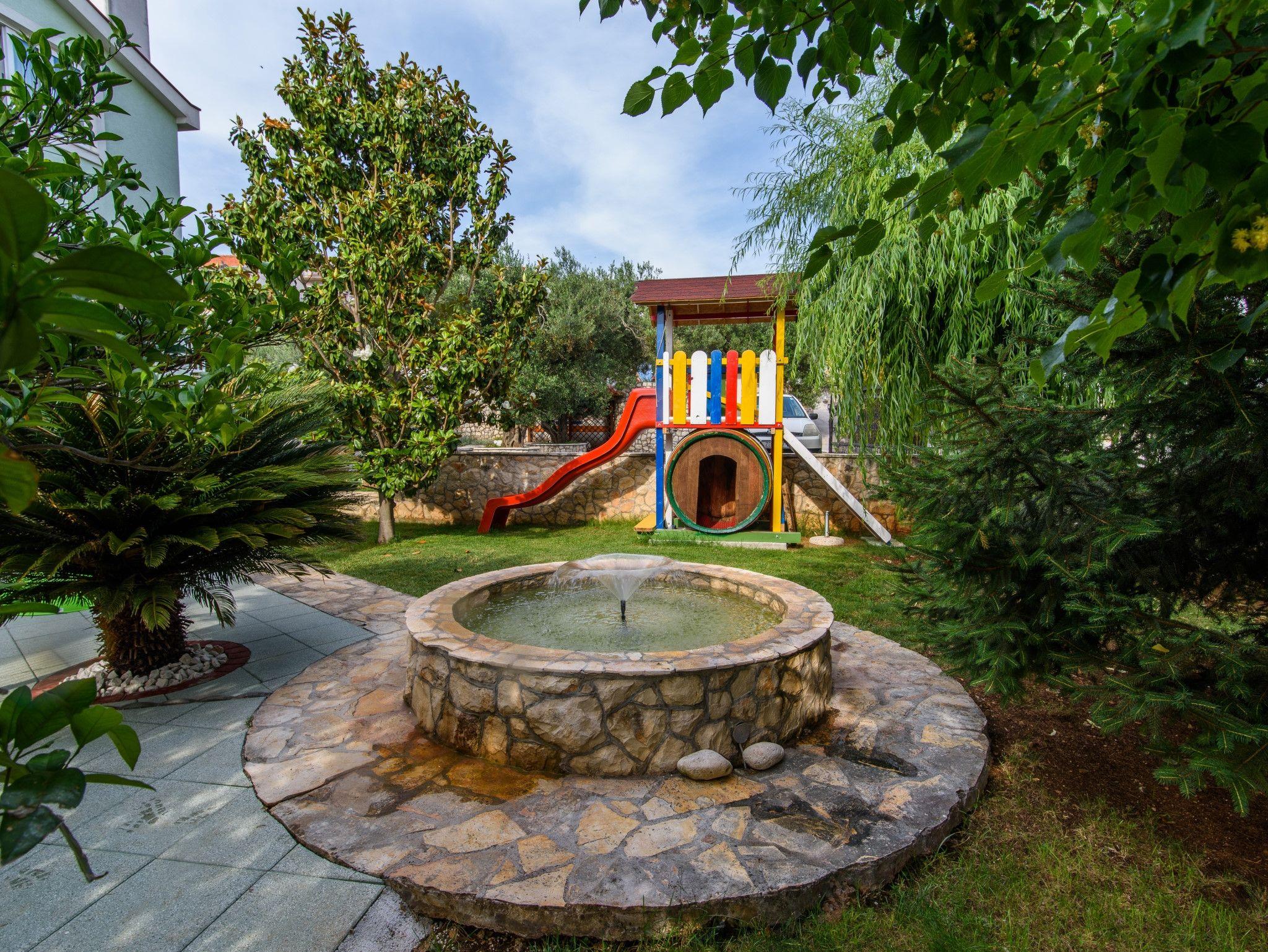 Umgebung des Objekts (Eingerichtet), Hof (700m2, Kinderbereich, Sitzbereich), Parkplatz (Anzahl der Parkplätze: 5, Entfernung vom Objekt: im Hof), Pool: gemeinsam, Dimensionen: 6.5m x 4m x 1.6m, Wassertyp: Salzwasser, Heizung: Ja, Grill: gemeinsam, WiFi Internet, Föhn, Bügeleisen, Bügelbrett, Kinderbett