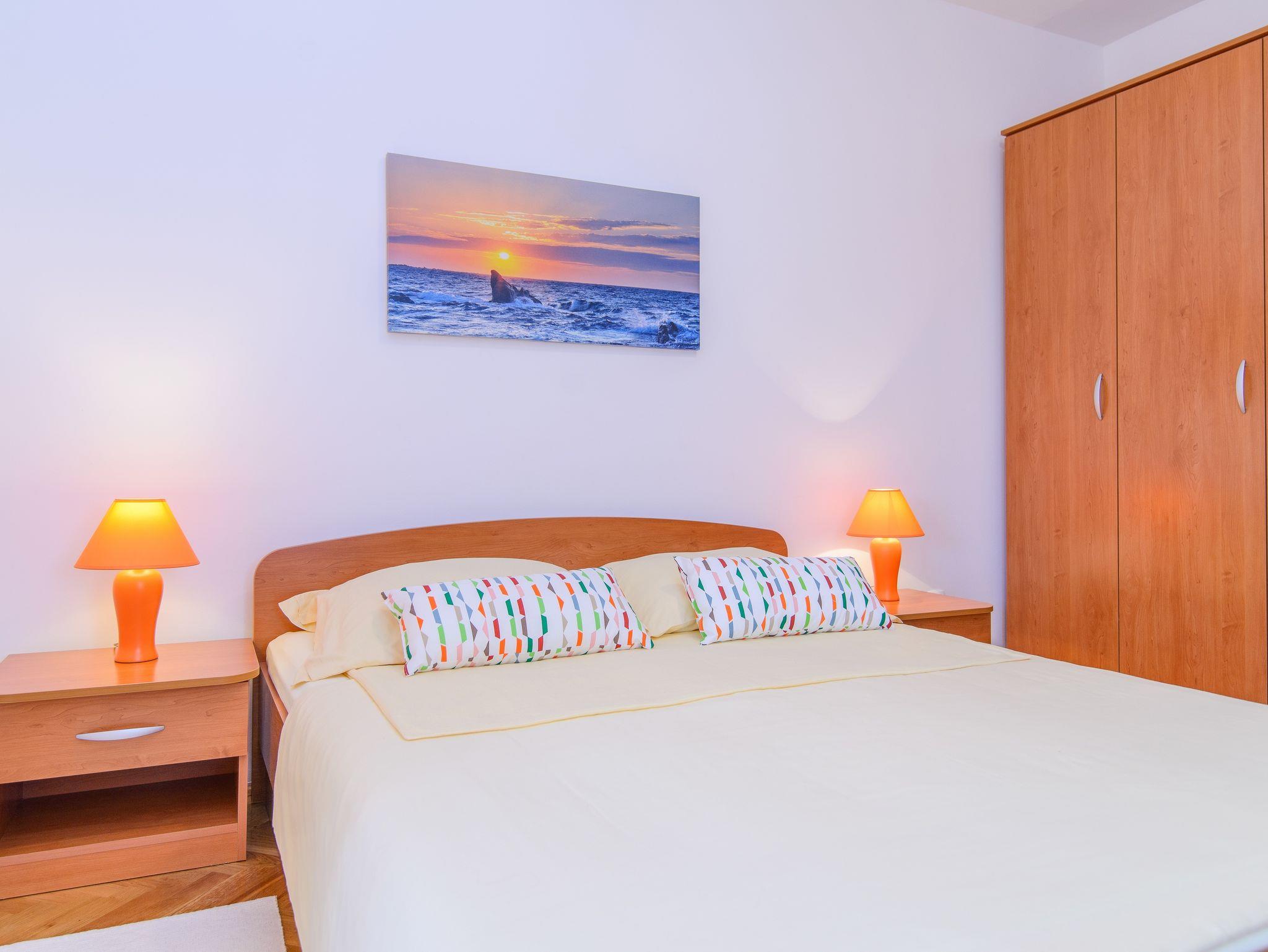 Ferienwohnung bietet Platz für 6 Gäste. Die Betten sind in Schlafzimmern, die es 2 gibt, und in Wohnzimmer, innerhalb einer Gesamtfläche von 68m2, angeordnet. Die Gäste haben eine eigene Terrasse zur Verfügung, auf der sie in warmen Sommernächten genießen können. Das Apartment bietet Meerblick. Es ist erlaubt, Speisen auf dem Gemeinschafts-Grill vorzubereiten. Während ihres Aufenthalts können Gäste das gemeinsam zur Nutzung stehende Schwimmbad benutzen. IM PREIS INBEGRIFFEN: Kurtaxe, Endreinigung, Klimatisierung, Zentralheizung, Pool, Parkplatz, Internet, Kinderbett, Bügeleisen, Bügelbrett, Föhn. Die Verfügbarkeit zusätzlicher Dienstleistungen in Ihrem reservierten Termin und die Preise derselben (falls nicht aufgeführt) müssen im Voraus überprüft werden. Zusätzliche Dienstleistungen die in der Zahlungsaufforderung nicht aufgeführt sind werden direkt beim Vermieter bezahlt, angenommen der Gast nutzt auch diese.