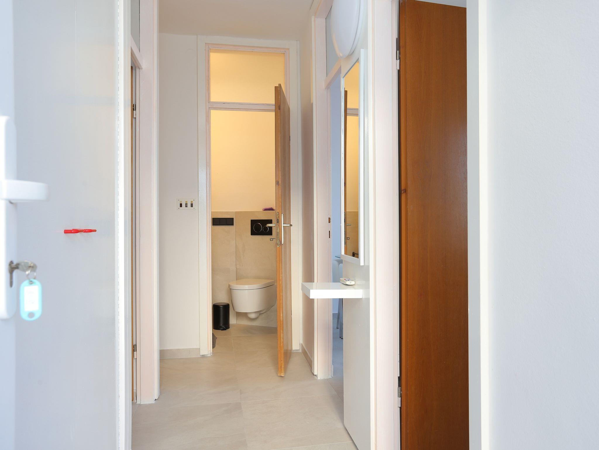 Ferienwohnung bietet Platz für 4 Gäste. Die Betten sind in Schlafzimmern, die es 2 gibt, innerhalb einer Gesamtfläche von 42m2, angeordnet. Die Gäste haben eine eigene Terrasse zur Verfügung, auf der sie in warmen Sommernächten genießen können. Das Apartment bietet Meerblick. Es ist erlaubt, Speisen auf dem Gemeinschafts-Grill vorzubereiten. IM PREIS INBEGRIFFEN: Kurtaxe, Endreinigung, Klimatisierung, Parkplatz, Internet, Wäschewaschen, Bügeleisen, Bügelbrett, Föhn, Sonnenschirm, Liegestühle. Die Verfügbarkeit zusätzlicher Dienstleistungen in Ihrem reservierten Termin und die Preise derselben (falls nicht aufgeführt) müssen im Voraus überprüft werden. Zusätzliche Dienstleistungen die in der Zahlungsaufforderung nicht aufgeführt sind werden direkt beim Vermieter bezahlt, angenommen der Gast nutzt auch diese.
