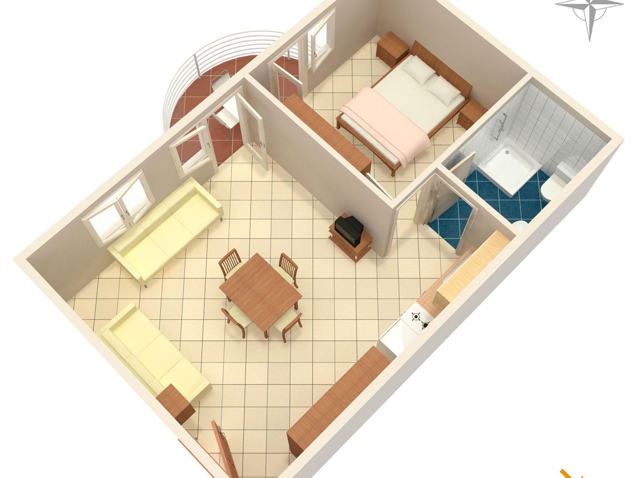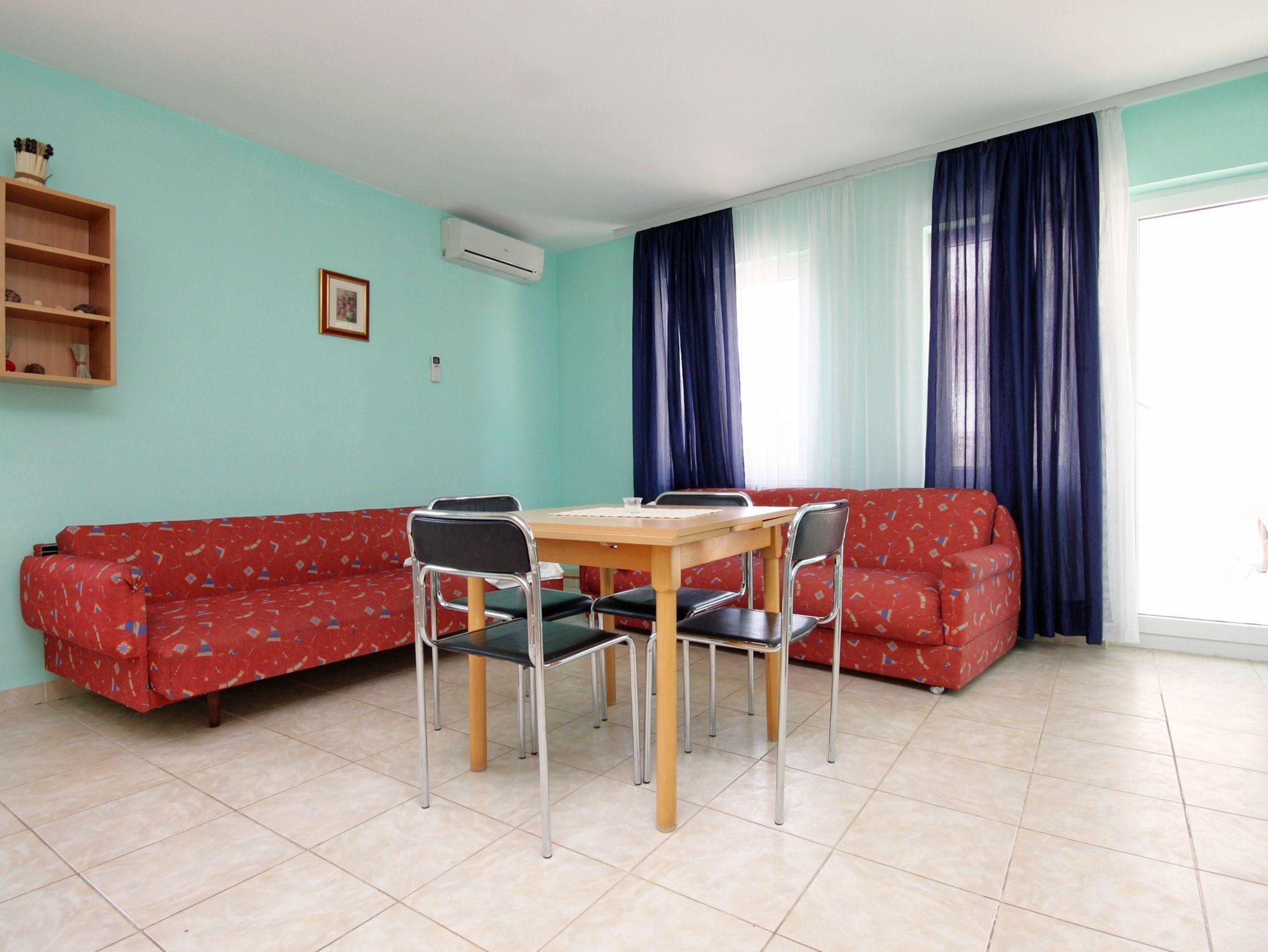 Ferienwohnung bietet Platz für 4 Gäste. Die Betten sind in Schlafzimmern, die es 1 gibt, und in Esszimmer, innerhalb einer Gesamtfläche von 37m2, angeordnet. Die Gäste haben einen eigenen Balkon zur Verfügung, auf der sie in warmen Sommernächten genießen können. Es ist erlaubt, Speisen auf dem Gemeinschafts-Grill vorzubereiten. In der Unterkunftseinheit besteht die Möglichkeit des Mitbringens von Haustieren gegen Aufpreis. IM PREIS INBEGRIFFEN: Kurtaxe, Endreinigung, Klimatisierung, Parkplatz, Internet, Kinderbett. VERBINDLICHE ZUSÄTZLICHE KOSTEN: Aufzahlung für Kurzaufenthalte (prozentualer Zuschlag pro Nächtigungsanzahl: 30% - 1, 20% - 2, 10% - 3). UNVERBINDLICHE ZUSÄTZLICHE KOSTEN: Haustiere (5,00 € pro Nacht). Die Verfügbarkeit zusätzlicher Dienstleistungen in Ihrem reservierten Termin und die Preise derselben (falls nicht aufgeführt) müssen im Voraus überprüft werden. Zusätzliche Dienstleistungen die in der Zahlungsaufforderung nicht aufgeführt sind werden direkt beim Vermieter bezahlt, angenommen der Gast nutzt auch diese. Ermäßigung auf den Grundpreis: Gratistag 14=13 (bei einem Aufenthalt von 14 Tagen oder mehr erhalten Sie einen Gratistag für den Aufenthalt bis 31.12.26).