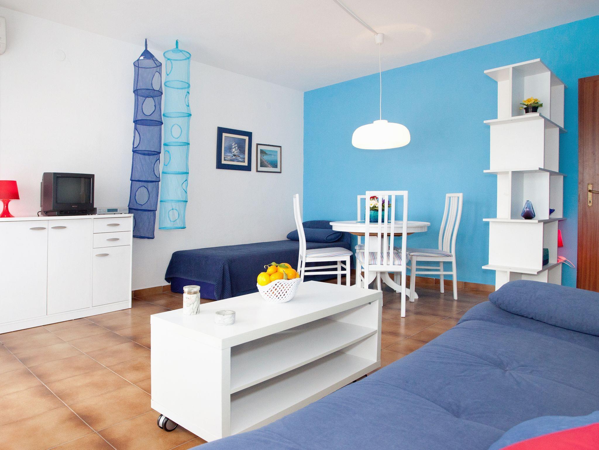Ferienwohnung bietet Platz für 4 Gäste. Die Betten sind in Schlafzimmern, die es 1 gibt, und in Wohnzimmer und Esszimmer, innerhalb einer Gesamtfläche von 42m2, angeordnet. Die Gäste haben eine eigene Terrasse zur Verfügung, auf der sie in warmen Sommernächten genießen können. Das Apartment bietet Meerblick. Es ist erlaubt, Speisen auf dem Gemeinschafts-Grill vorzubereiten. IM PREIS INBEGRIFFEN: Kurtaxe, Endreinigung, Klimatisierung, Parkplatz, Internet, Kinderbett. Die Verfügbarkeit zusätzlicher Dienstleistungen in Ihrem reservierten Termin und die Preise derselben (falls nicht aufgeführt) müssen im Voraus überprüft werden. Zusätzliche Dienstleistungen die in der Zahlungsaufforderung nicht aufgeführt sind werden direkt beim Vermieter bezahlt, angenommen der Gast nutzt auch diese.