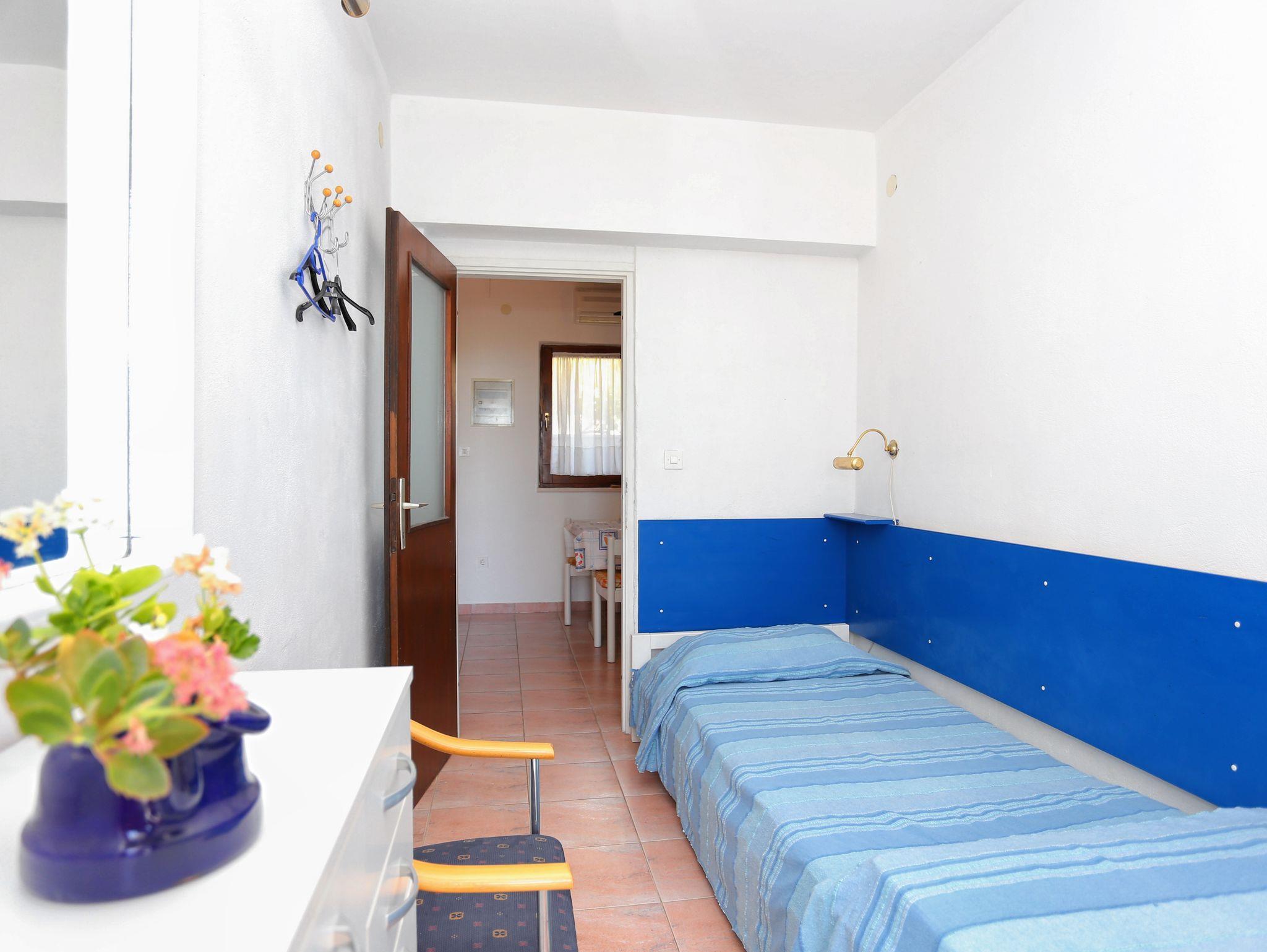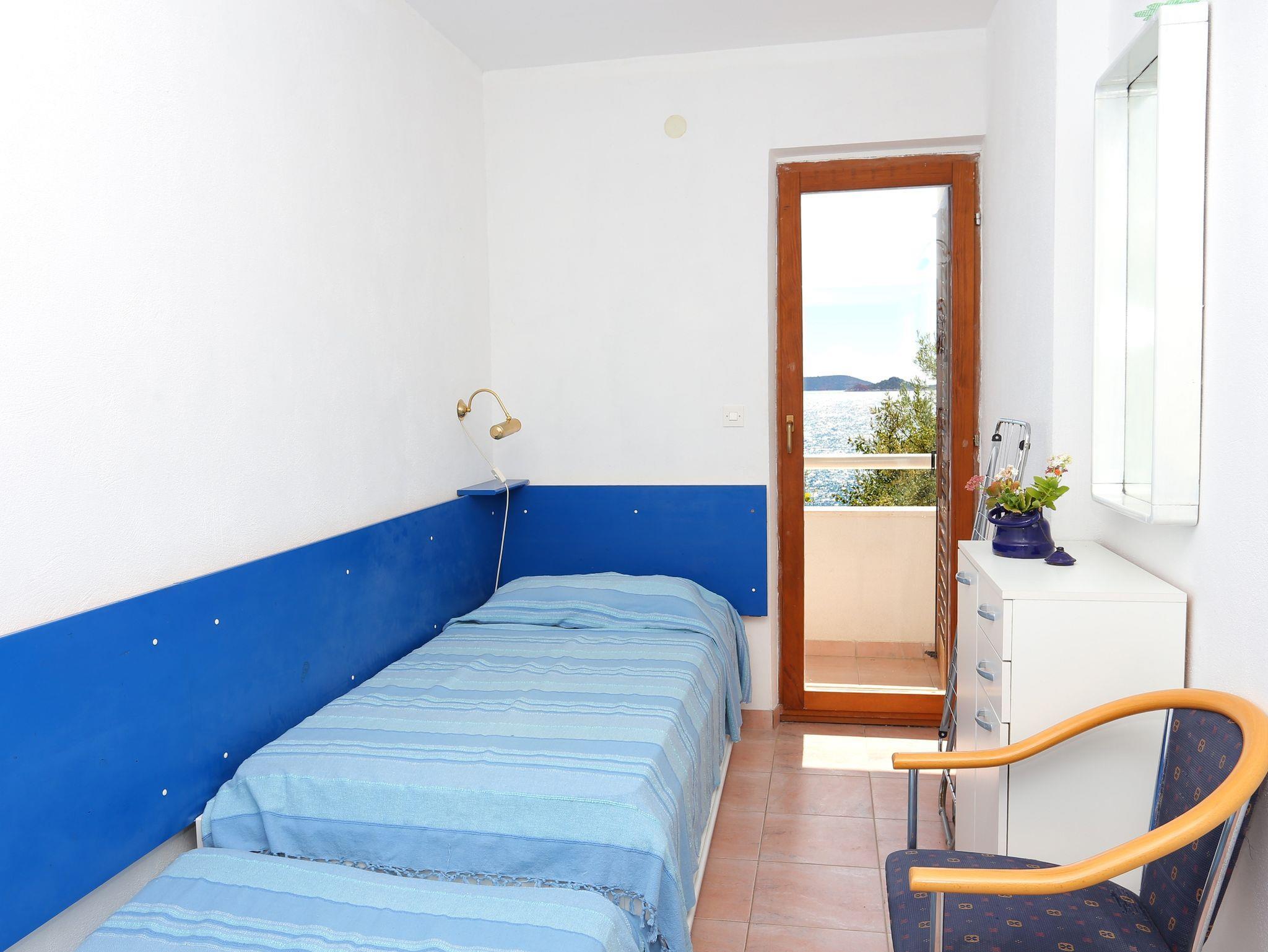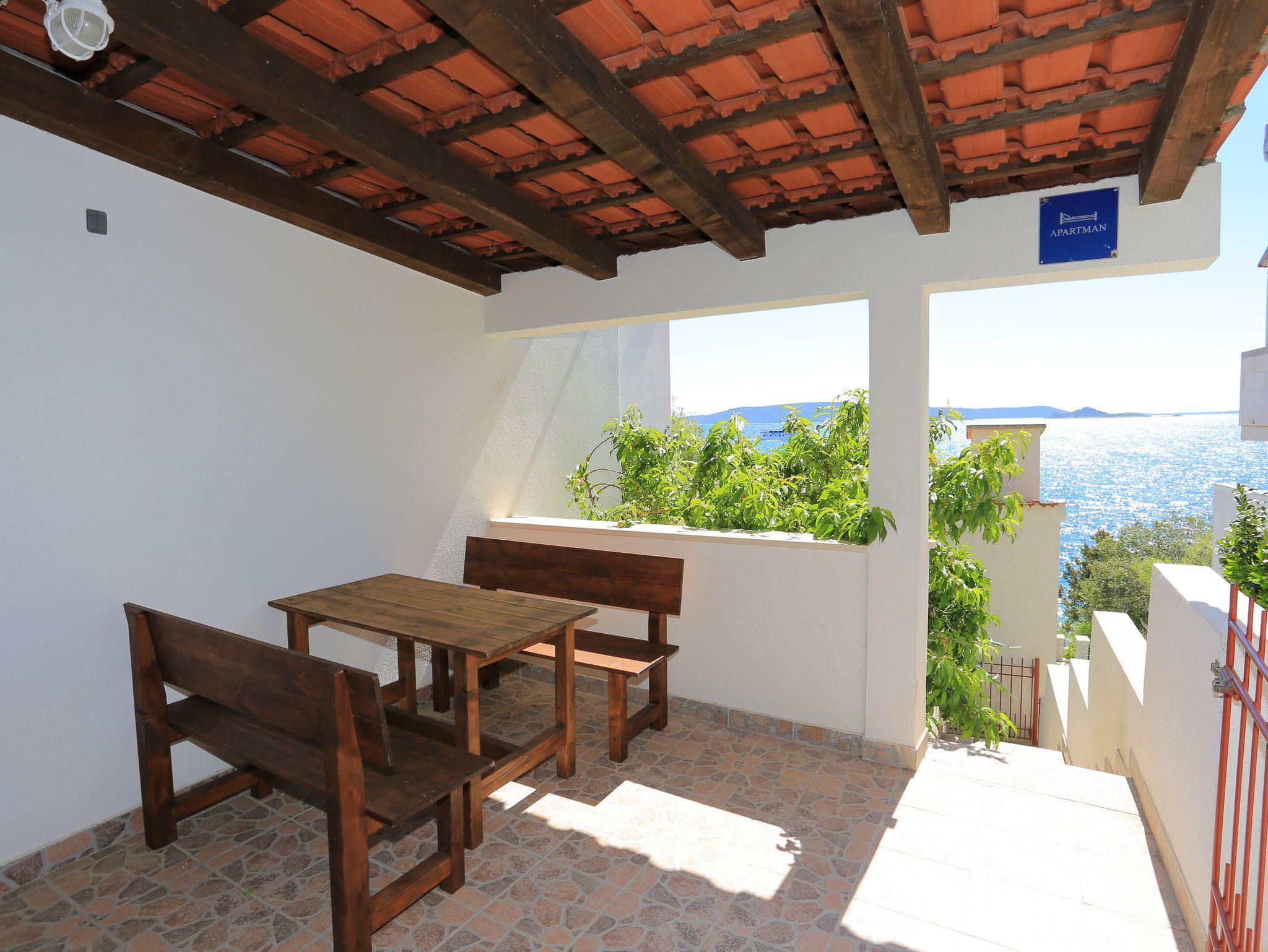 Ferienwohnung bietet Platz für 4 Gäste. Die Betten sind in Schlafzimmern, die es 2 gibt, innerhalb einer Gesamtfläche von 30m2, angeordnet. Die Gäste haben eine eigene Terrasse zur Verfügung, auf der sie in warmen Sommernächten genießen können. Das Apartment bietet Meerblick. Unterkunftseinheit hat Räume, die von dem Rest der Einheit abgetrennt werden. IM PREIS INBEGRIFFEN: Kurtaxe, Endreinigung, Klimatisierung, Internet, Wäschewaschen, Kinderbett, Bügeleisen, Bügelbrett, Föhn, Liegestühle. VERBINDLICHE ZUSÄTZLICHE KOSTEN: Aufzahlung für Kurzaufenthalte (prozentualer Zuschlag pro Nächtigungsanzahl: 30% - 1, 20% - 2, 10% - 3). Die Verfügbarkeit zusätzlicher Dienstleistungen in Ihrem reservierten Termin und die Preise derselben (falls nicht aufgeführt) müssen im Voraus überprüft werden. Zusätzliche Dienstleistungen die in der Zahlungsaufforderung nicht aufgeführt sind werden direkt beim Vermieter bezahlt, angenommen der Gast nutzt auch diese.