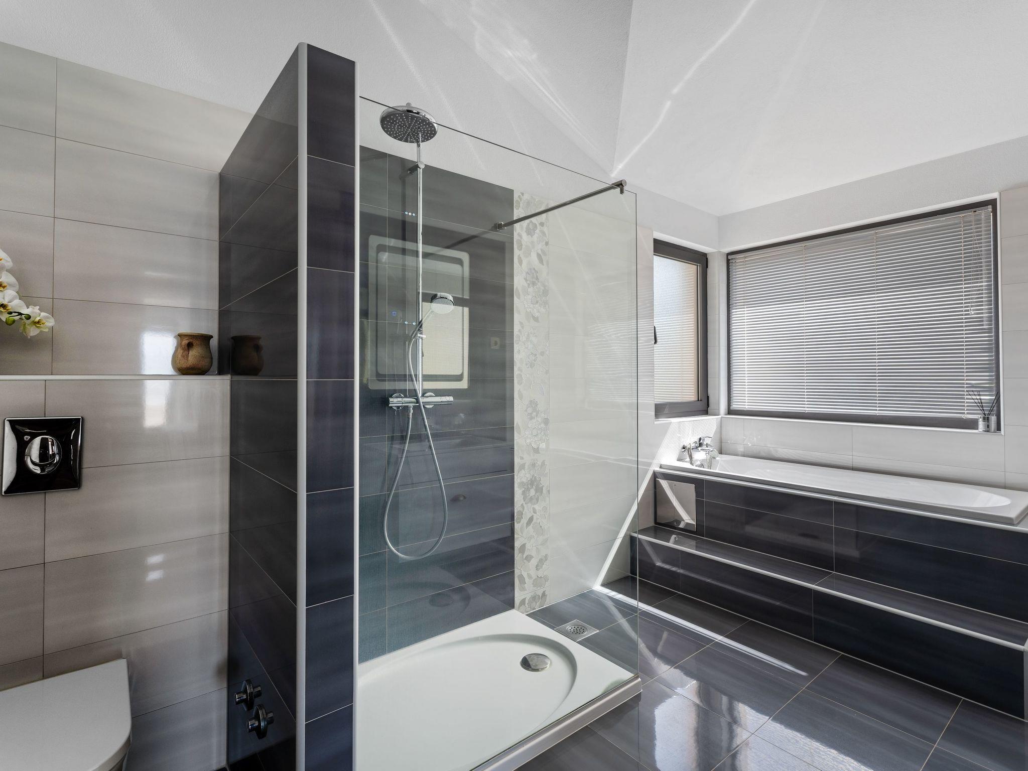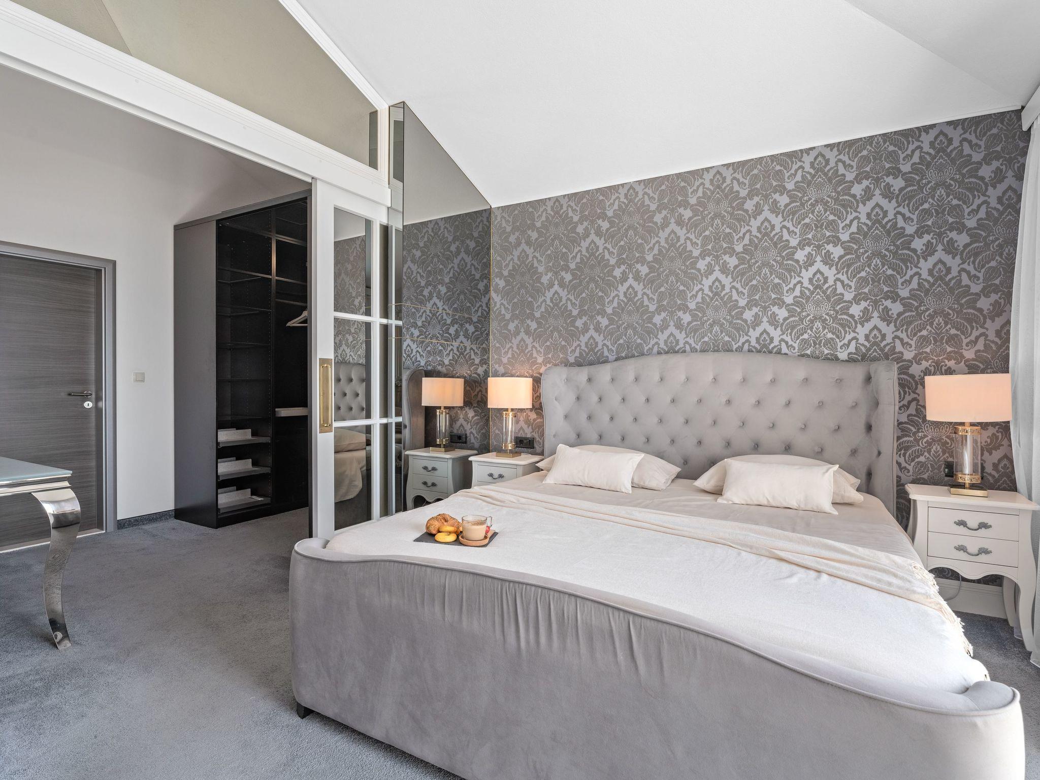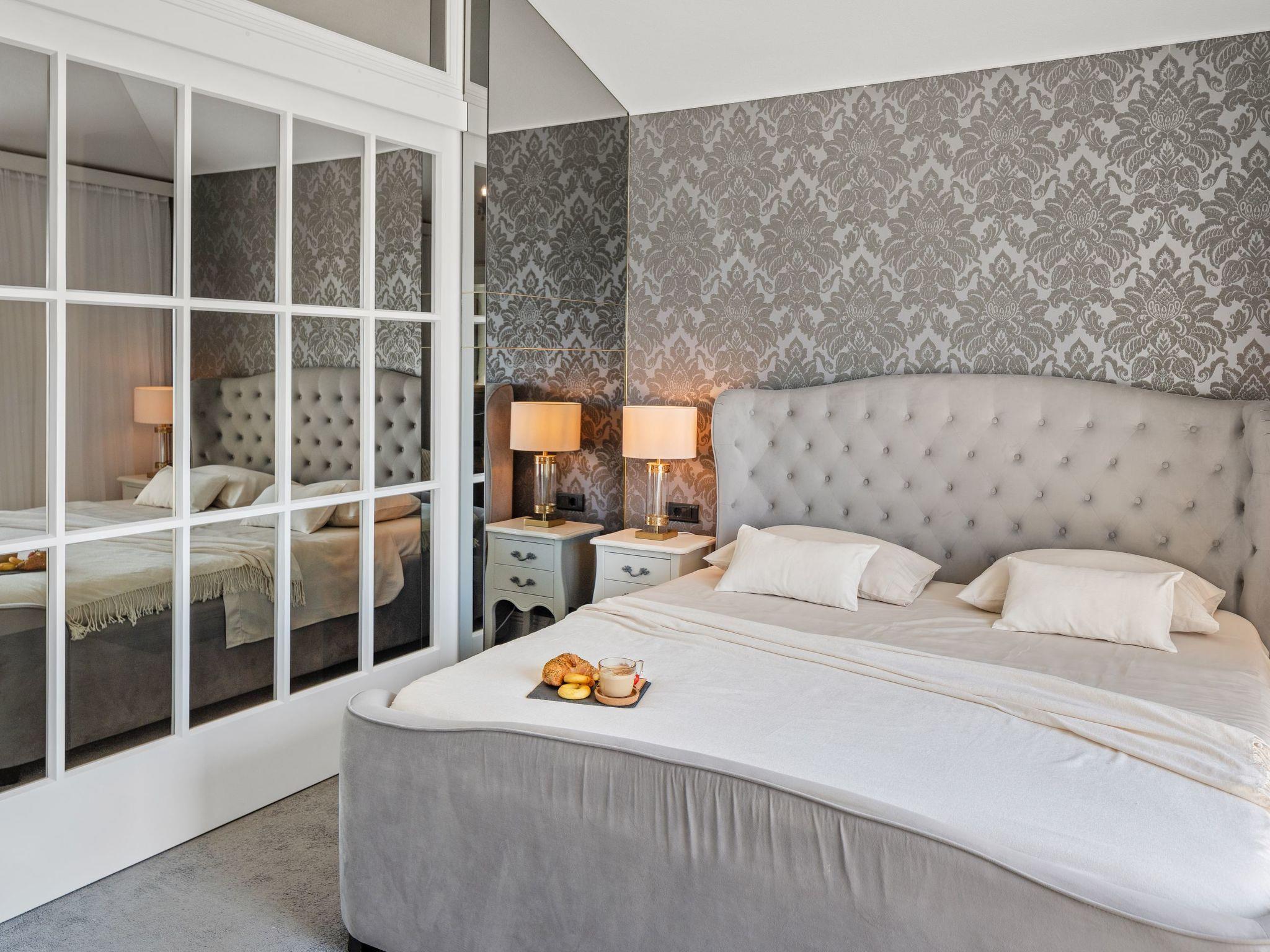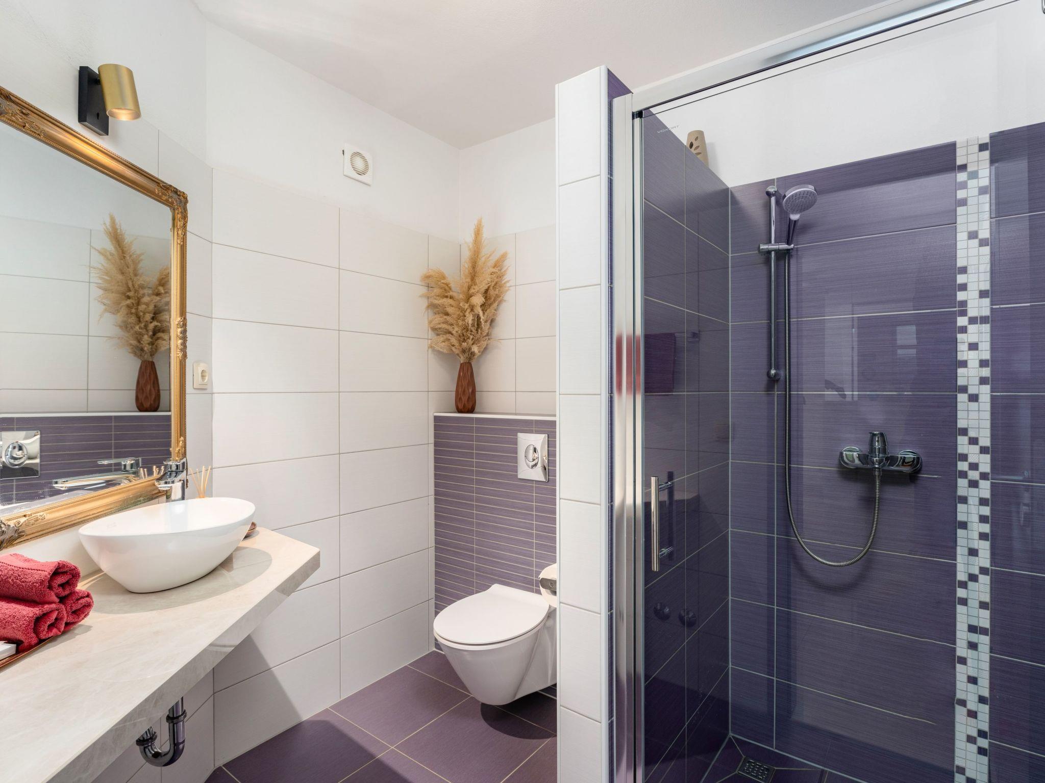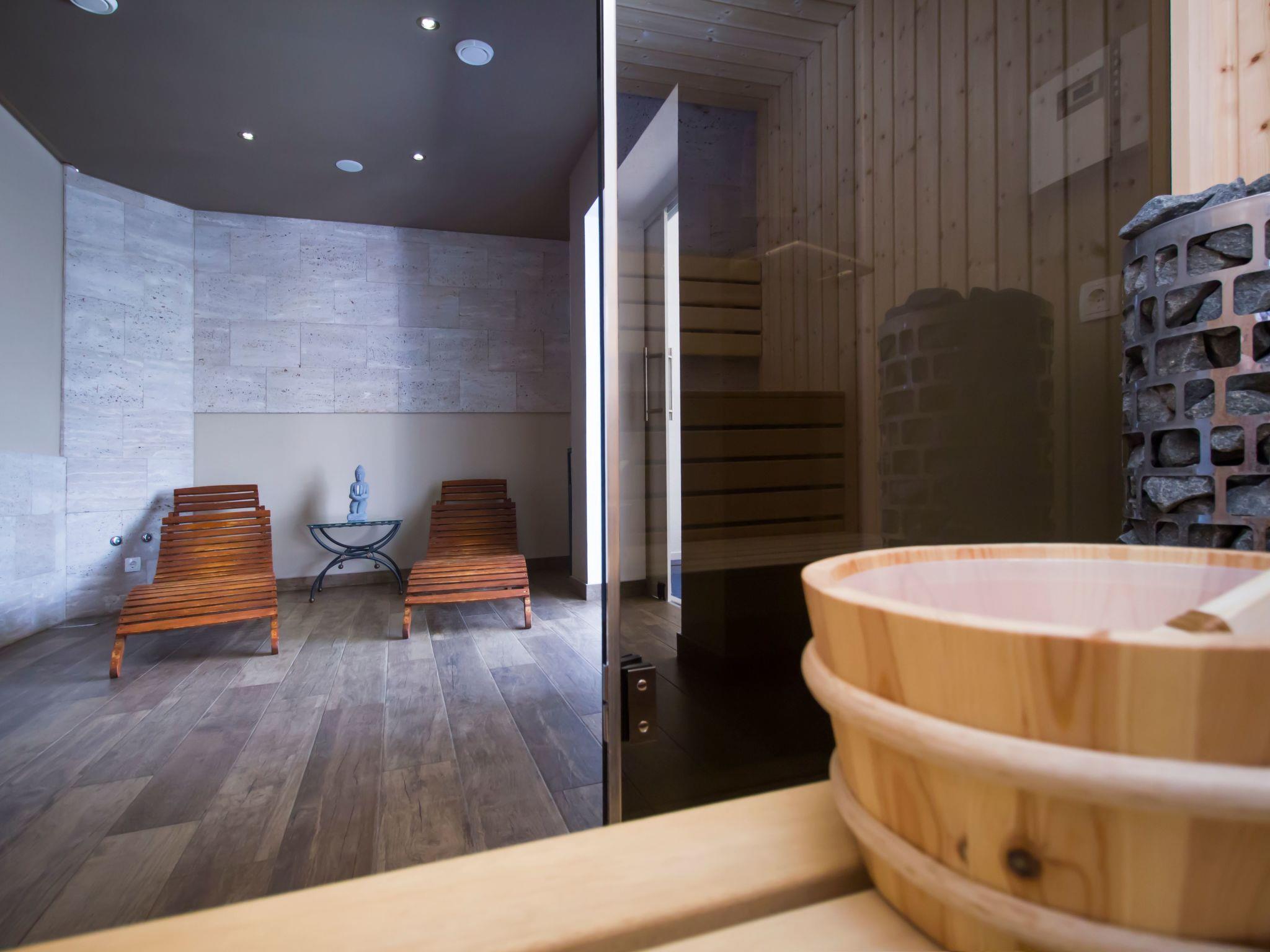 Im Erdgeschoß befindet sich das große Wohn-Esszimmer mit einem offenem Kamin und allem, was das Herz begehrt. Von hier aus betritt man auch die hochmoderne und perfekt ausgestattete Küche. In der oberen Etage liegen die fünf, jeweils mit einem Dopelbett ausgestatteten Schlafzimmer. Im Design-Badezimmer befindet sich Dusche und WC.
