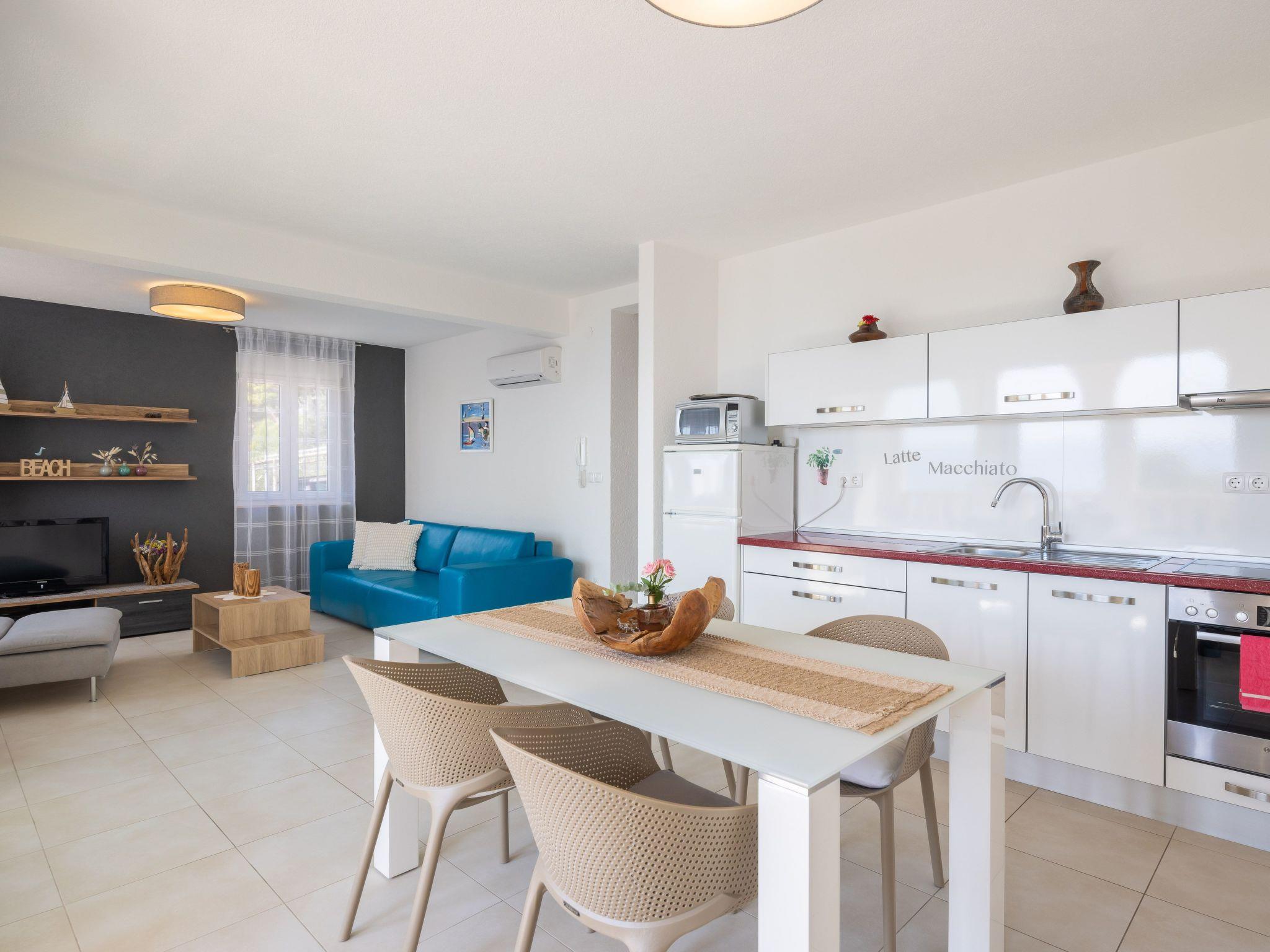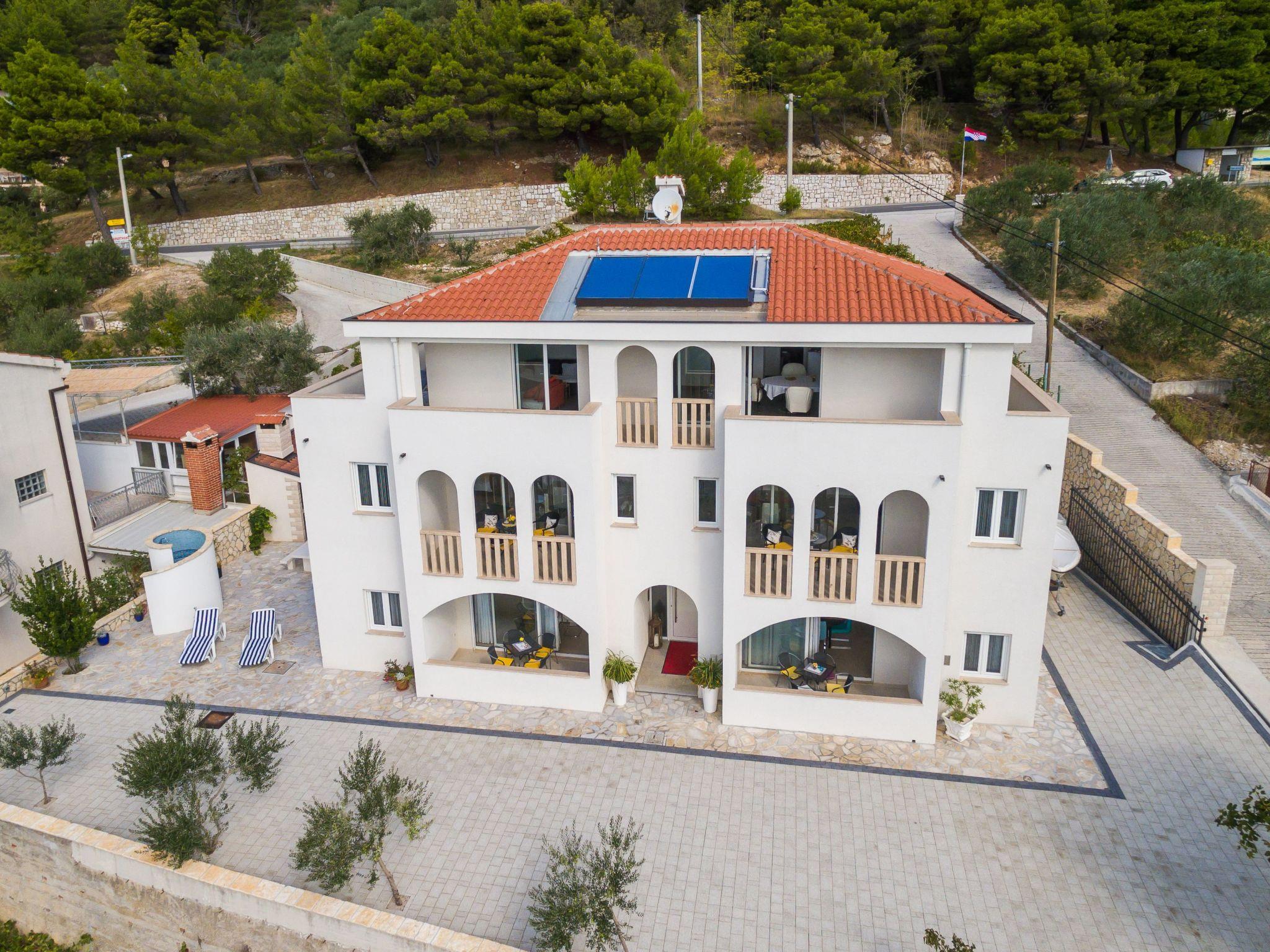 Genießen Sie Ihren Urlaub in diesem exklusiven Apartmenthaus im mediterranen Baustil. Dieses Schmuckstück bietet einen atemberaubenden und unverbauten Panoramablick aufs Meer, die unweit gelegene Makarska Riviera und die Insel Brac im Hintergrund. Ihr Feriendomizil besteht aus vier getrennten Wohneinheiten, welche über separate Eingänge verfügen.