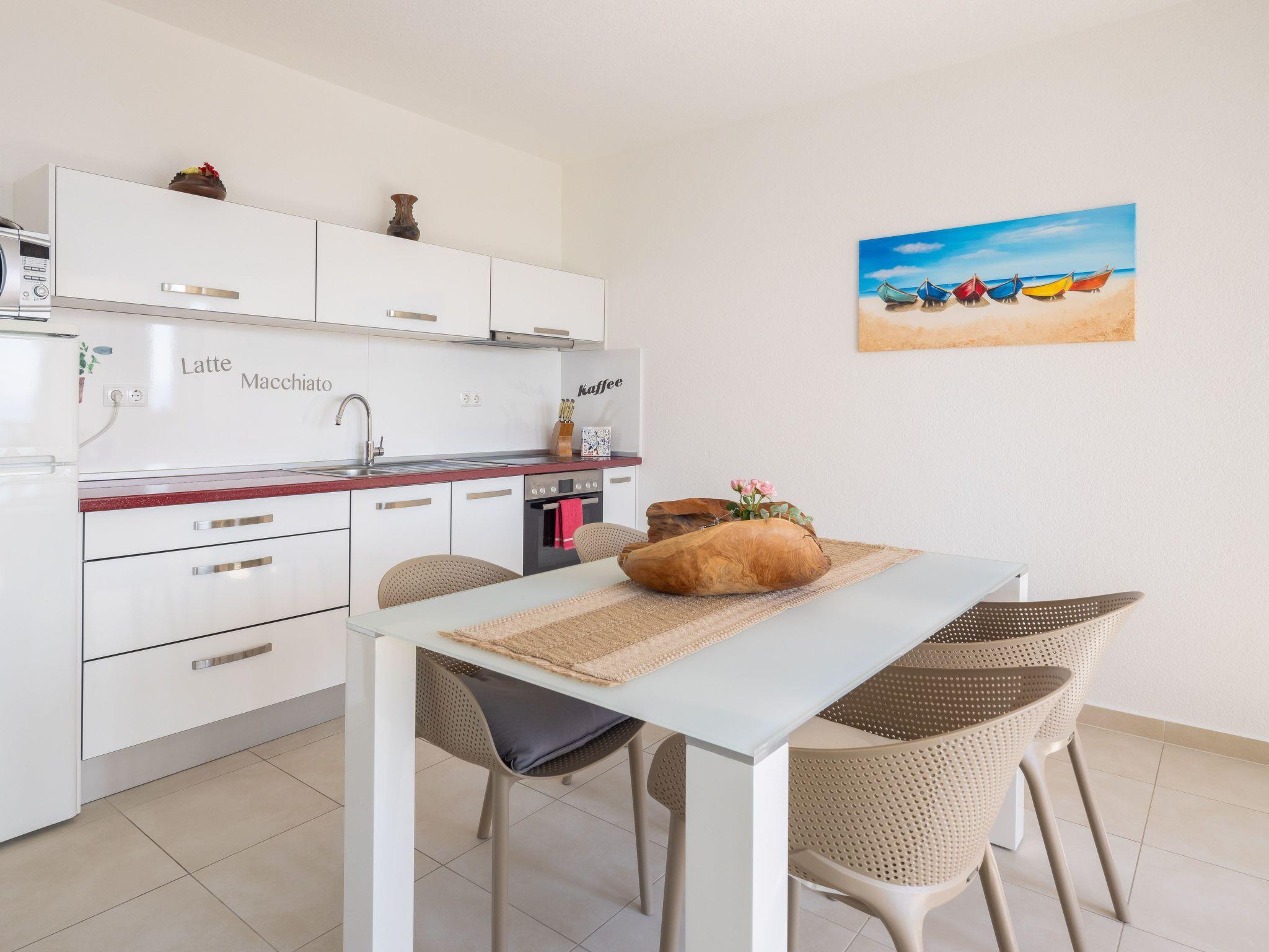 Der Innenbereich dieser Ferienwohnung ist klimatisiert, großzügig und gemütlich eingerichtet und bietet Ihnen allen modernen Komfort, den man für einen erholsamen Urlaub braucht. Die komplett ausgestattete Wohnung verfügt über ein Wohn- und Esszimmer, das mit einer Schlafcouch für zwei Personen, einem Sessel und einem SAT-TV-Flachbildschirm ausgestattet ist. Zudem gibt es hier eine Küchenzeile und einen Essbereich mit Esstisch und Stühlen. Desweiteren verfügt die Wohnung über ein Schlafzimmer mit Doppelbett sowie ein Bad mit ebenerdiger Dusche und WC.