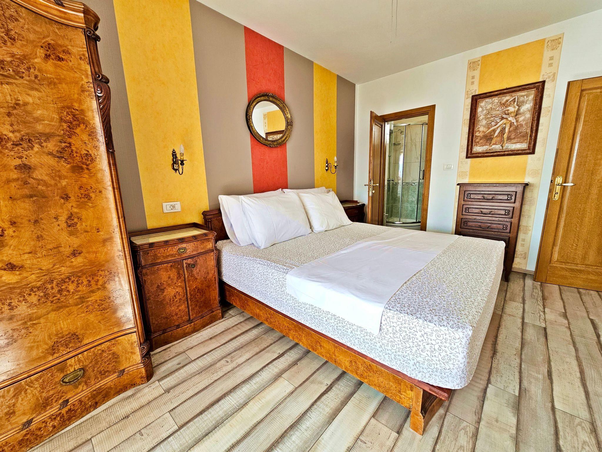 Die 95 m² große Ferienwohnung befindet sich im Dachgeschoss und bietet Platz für bis zu sechs Personen. Sie verfügt über zwei Schlafzimmer mit Kleiderschränken und einem bequemen Doppelbett im ersten und drei Einzelbetten im zweiten. Das Wohnzimmer verfügt über ein Schlafsofa und eine offene Küche im Retrostil, die mit Herd, Backofen, Kühlschrank, Gefrierfach, Kaffeemaschine und Wasserkocher ausgestattet ist. Ein Esstisch mit Stühlen, ein Flachbildfernseher, ein Safe, drahtloser Internetzugang und eine Klimaanlage sind vorhanden. Das Badezimmer ist mit einer Dusche, einer Waschmaschine und einem WC ausgestattet.