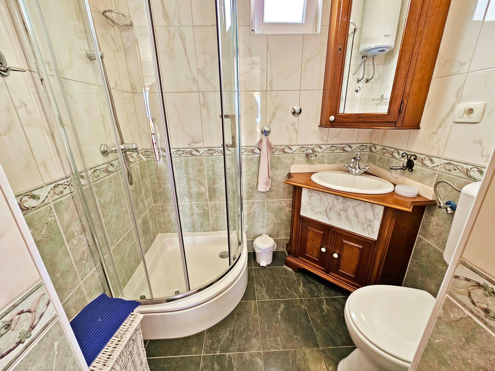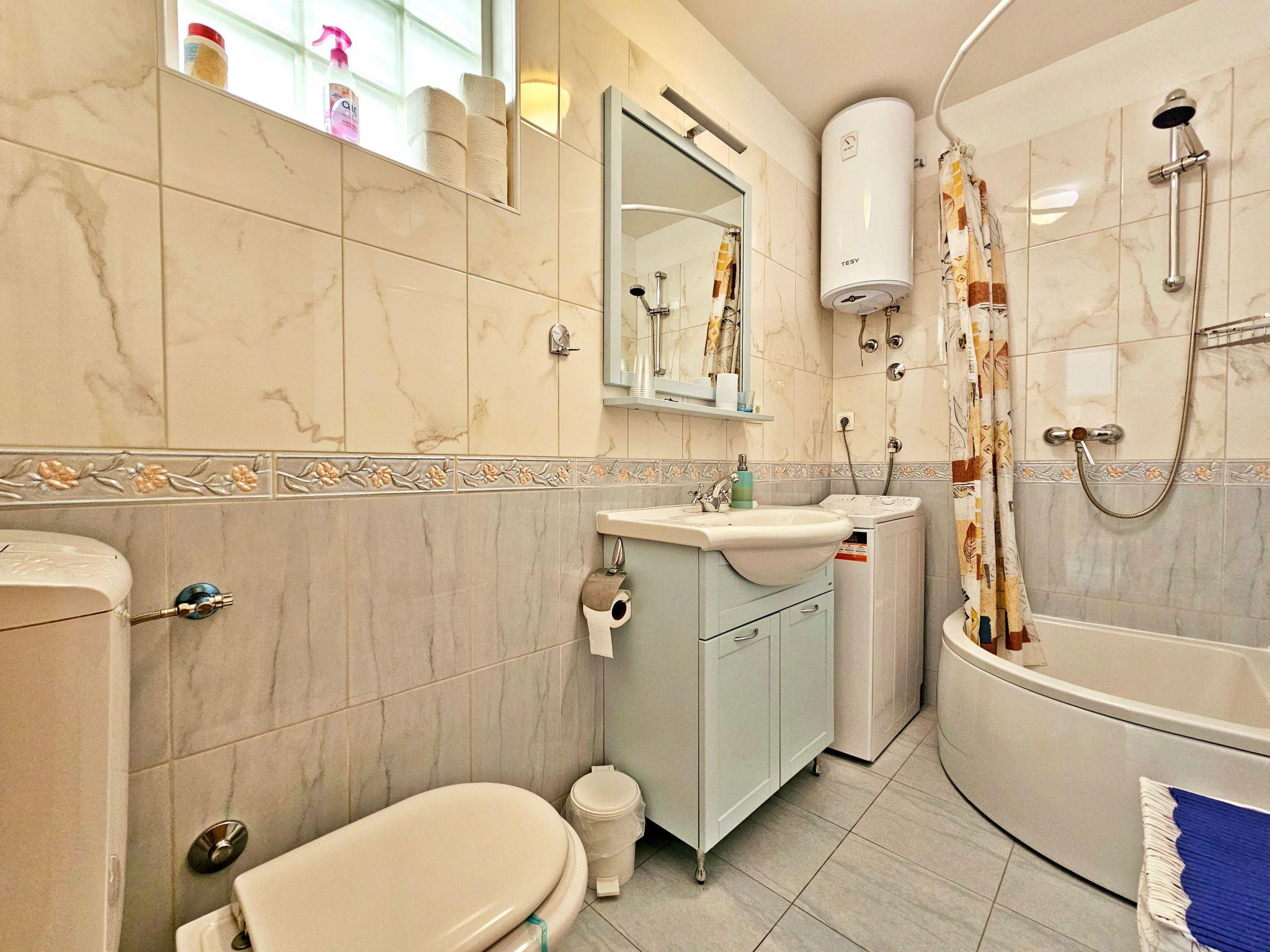 Die Wohnung hat zwei Schlafzimmer und zwei Bäder. Die Wohnung hat eine Terrasse von 15 m2 mit einem großen Esstisch und eine Schaukel. Auch Wohnung hat einen Balkon von 10 m2 mit Tisch und Stühlen. Die Küche ist mit allen notwendigen Geräten, geräumigen Wohnbereich, wo ist das Sofa ausgestattet.