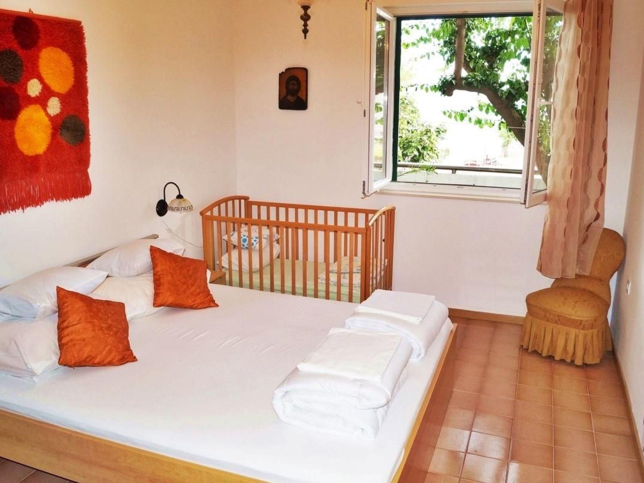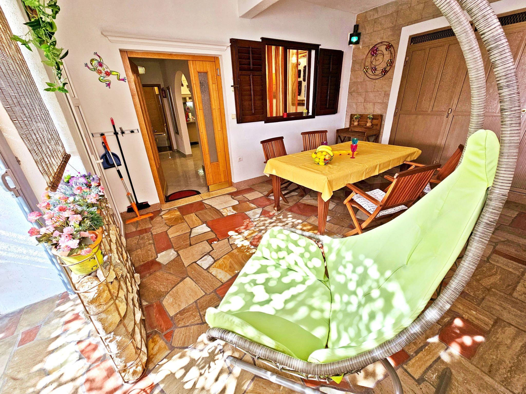 Der 23m2 große überdachte Terrasse bietet einen wunderbaren Blick auf das Meer sowie die umliegenden Inseln und bietet einen großen Holztisch mit zwei Holzliegen und eine Steinmauer mit Blumen. Vor der Terrasse stehen kostenlose Parkplätze zur Verfügung.