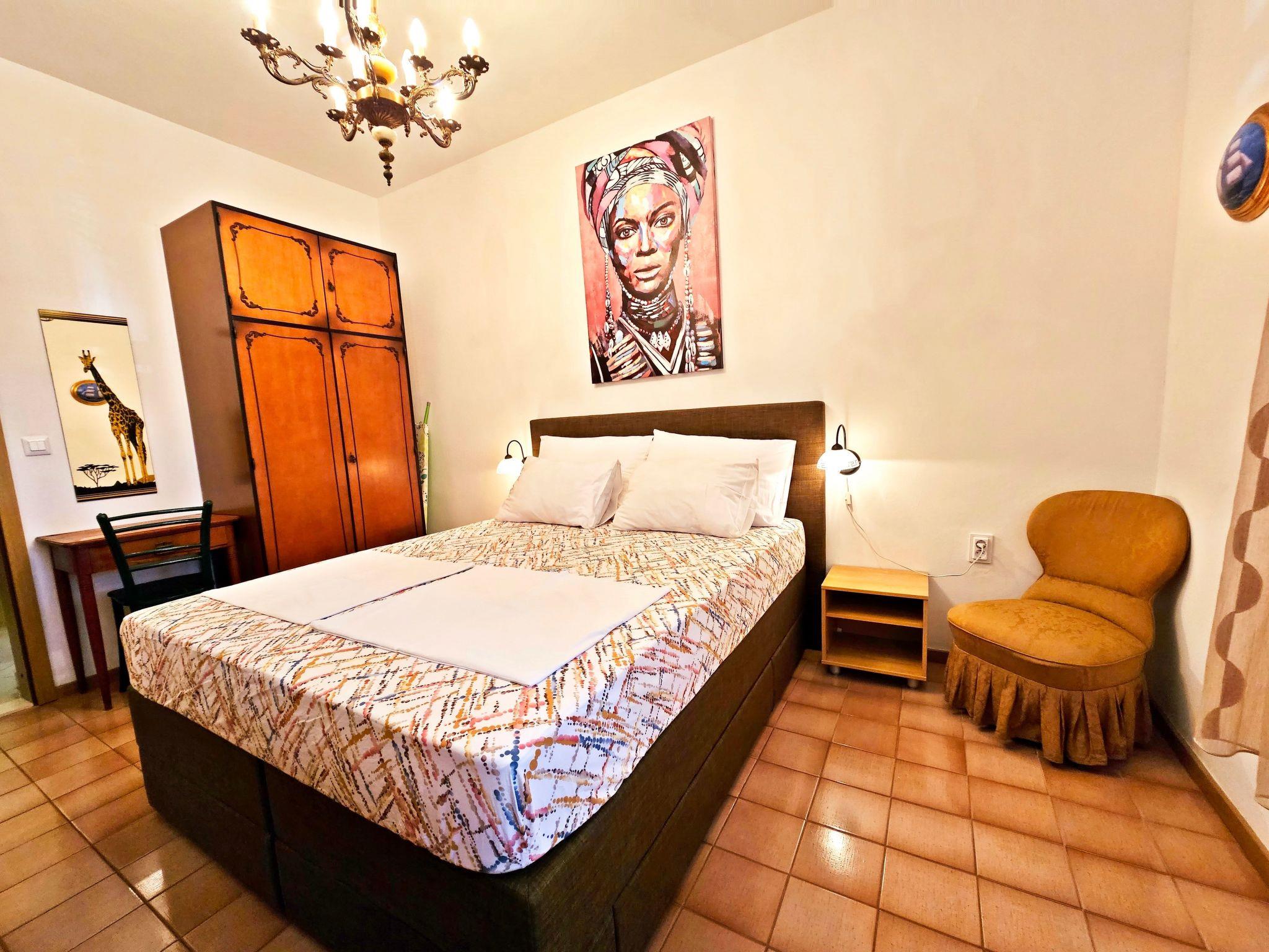 Die 70m2 große Ferienwohnung liegt im Erdgeschoss und bietet bis zu sechs Personen Platz. Sie verfügt über zwei Schlafzimmer mit einem komfortablen Doppelbett bzw. drei Einzelbetten. Der Wohnraum bietet eine Schlafcouch und die offene Küche im Retro-Stil, die komplett ausgestattet ist mit Herd, Ofen, Kühlschrank, Gefrierfach und Wasserkocher. Zudem stehen noch ein Esstisch mit Stühlen, ein Flachbildfernseher, ein Safe, Wlan-Internet und Klimaanlage bereit. Das Badezimmer ist mit einer Dusche und Waschmaschine eingerichtet. Eine zusätzliche Toilette ist auch vorhanden.