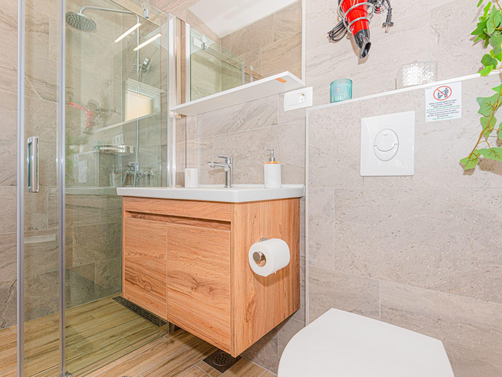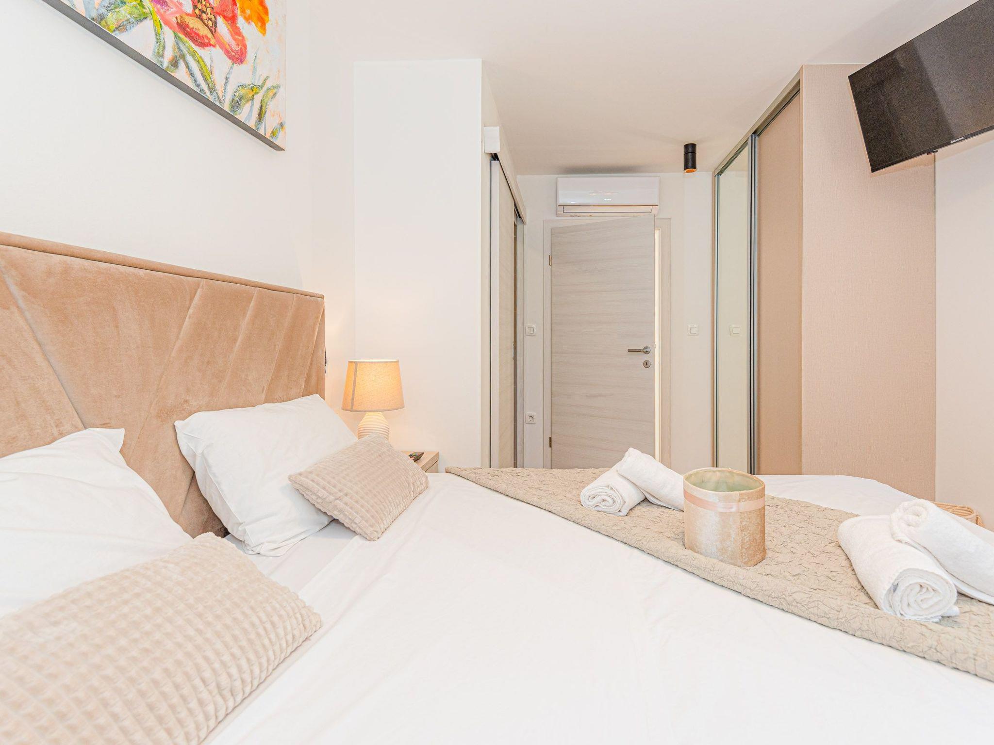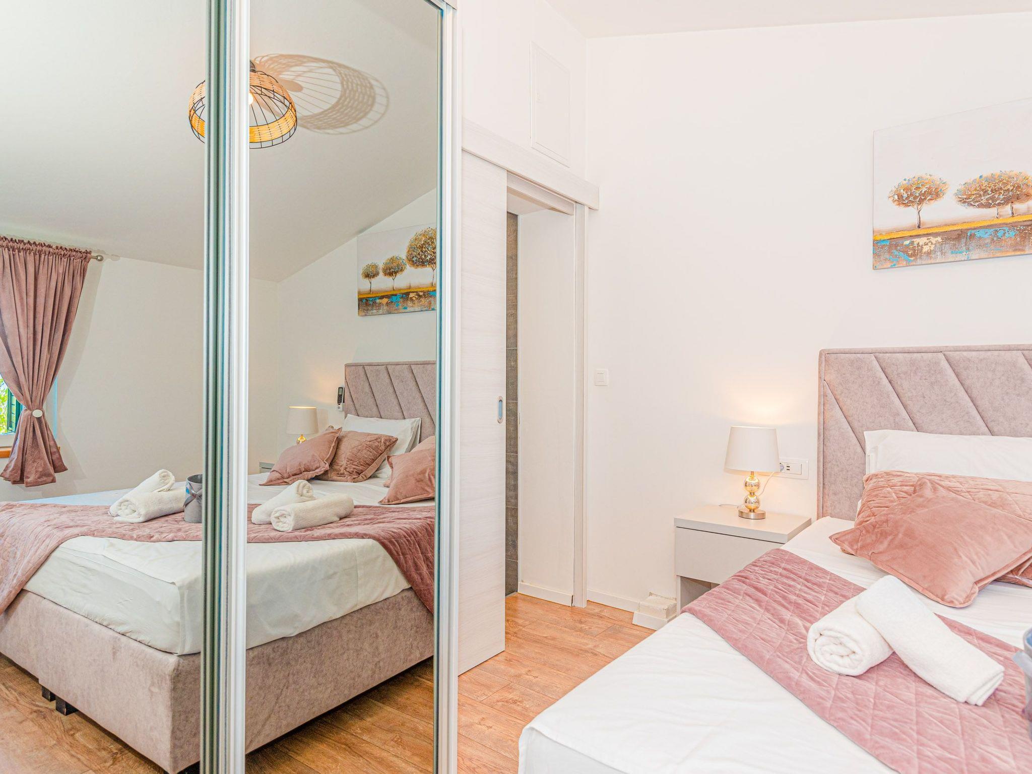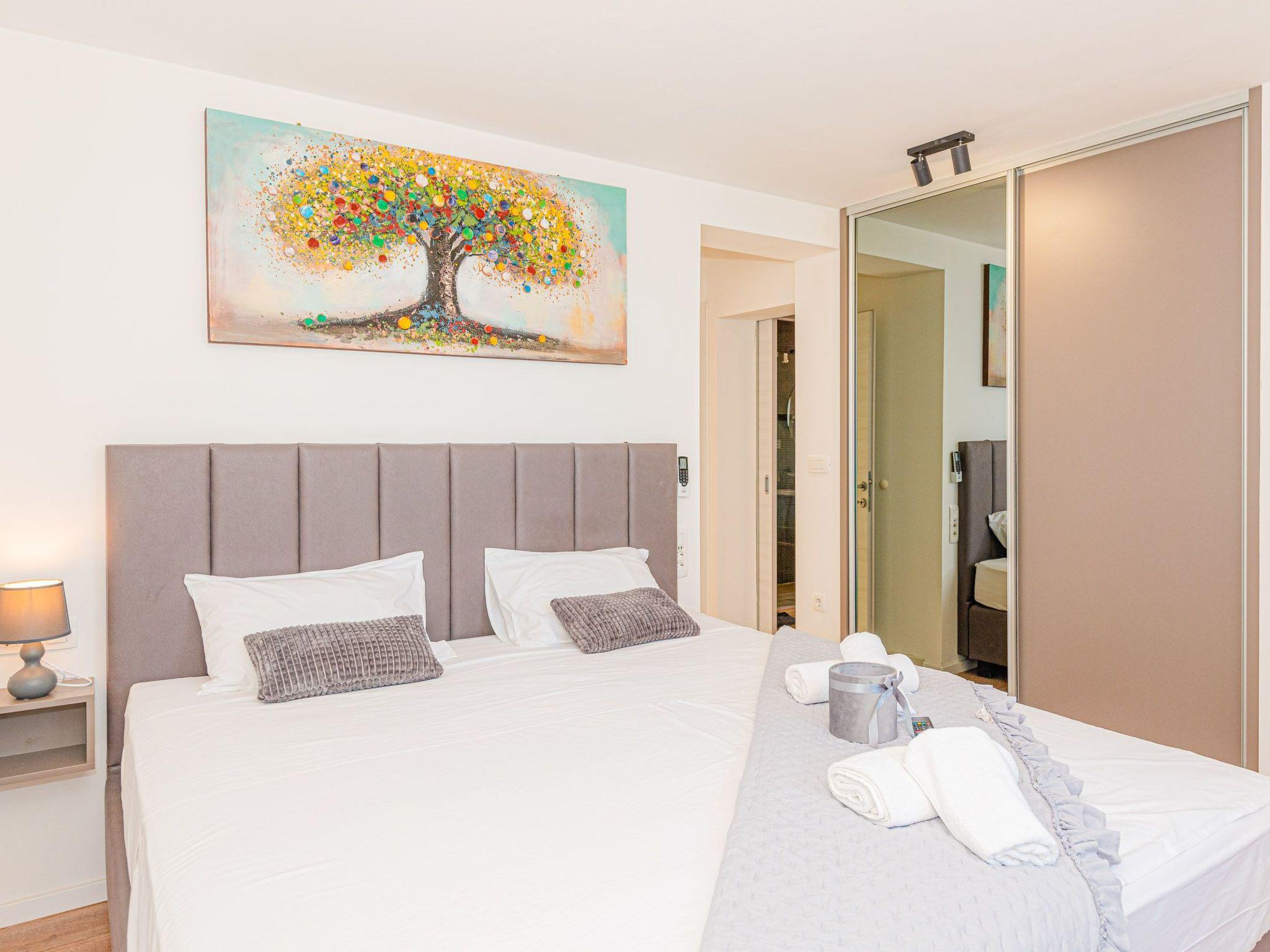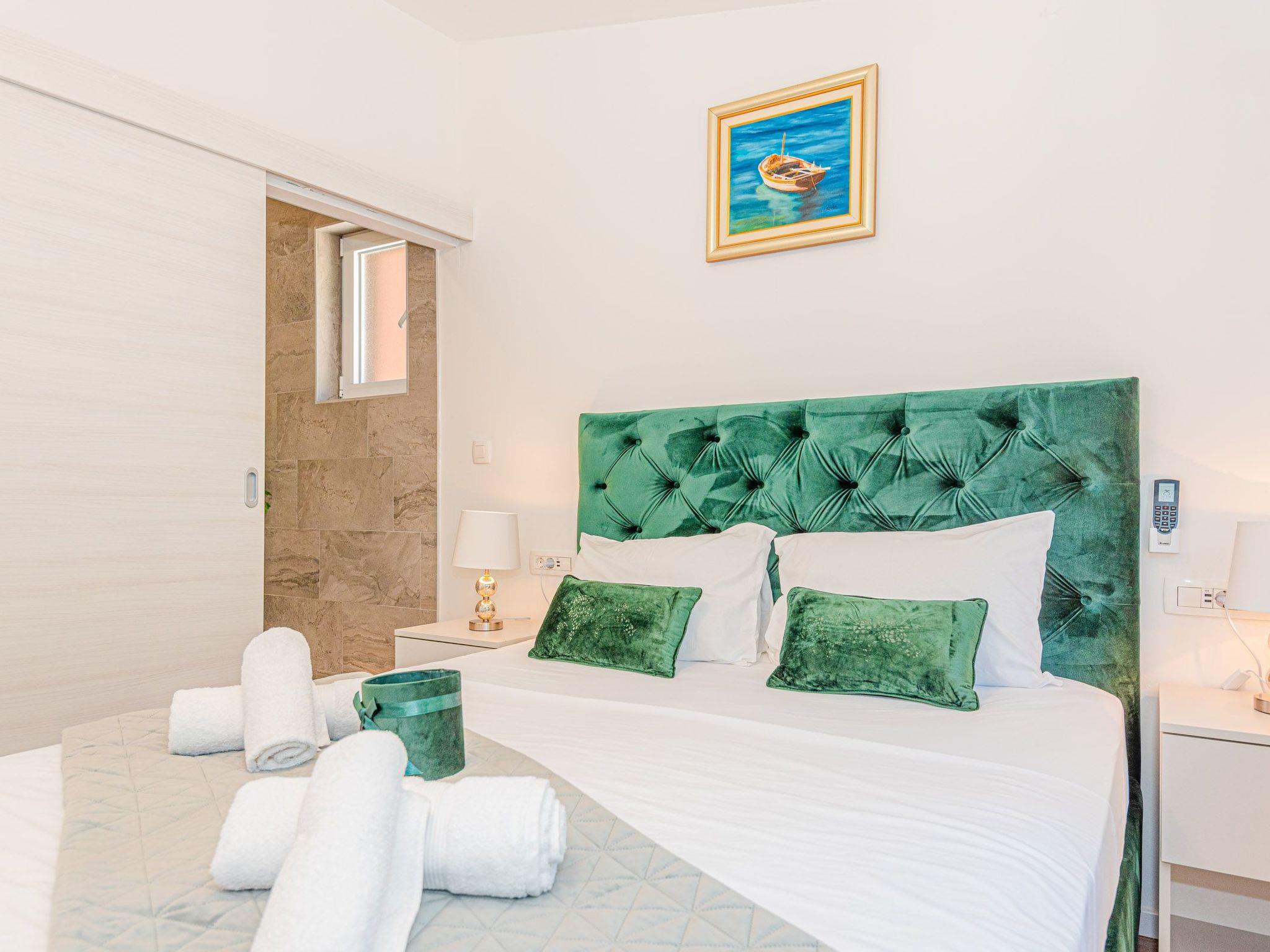 Die geräumigen Innenräume sind mit eleganten Möbeln und modernem Dekor ausgestattet und schaffen eine stilvolle und dennoch komfortable Atmosphäre. Darüber hinaus verfügt jeder Bereich über eine Klimaanlage und kostenloses Wi-Fi, damit Sie sich während Ihres gesamten Aufenthalts wohl fühlen. Beginnen Sie Ihren Tag mit einer warmen Tasse Kaffee auf der Terrasse und genießen Sie die schöne Umgebung. Abends können Sie sich entspannen und die atemberaubenden Sonnenuntergänge bewundern, die den Himmel über der Adria erleuchten und für einen malerischen Ausklang des Tages sorgen.
