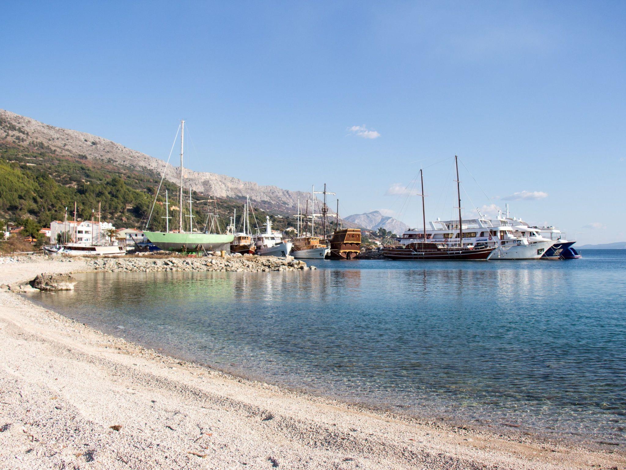 Ihre Ferienwohnung liegt in gerade mal etwa 10 m Entfernung vom blauen Meer, einem Bootssteg und kleinen Kiesstrand. Bis zum nächstgelegenen, langen Sandstrand sind es ungefähr 500 m Entfernung. Einkaufsmöglichkeiten, Cafes und Restaurants bieten sich im Zentrum von Jesenice in ebenfalls etwa 500 m Entfernung. Etwa 100 m entfernt bietet eine Bushaltestelle regelmäßige und direkte Verbindungen nach Split und Omis.