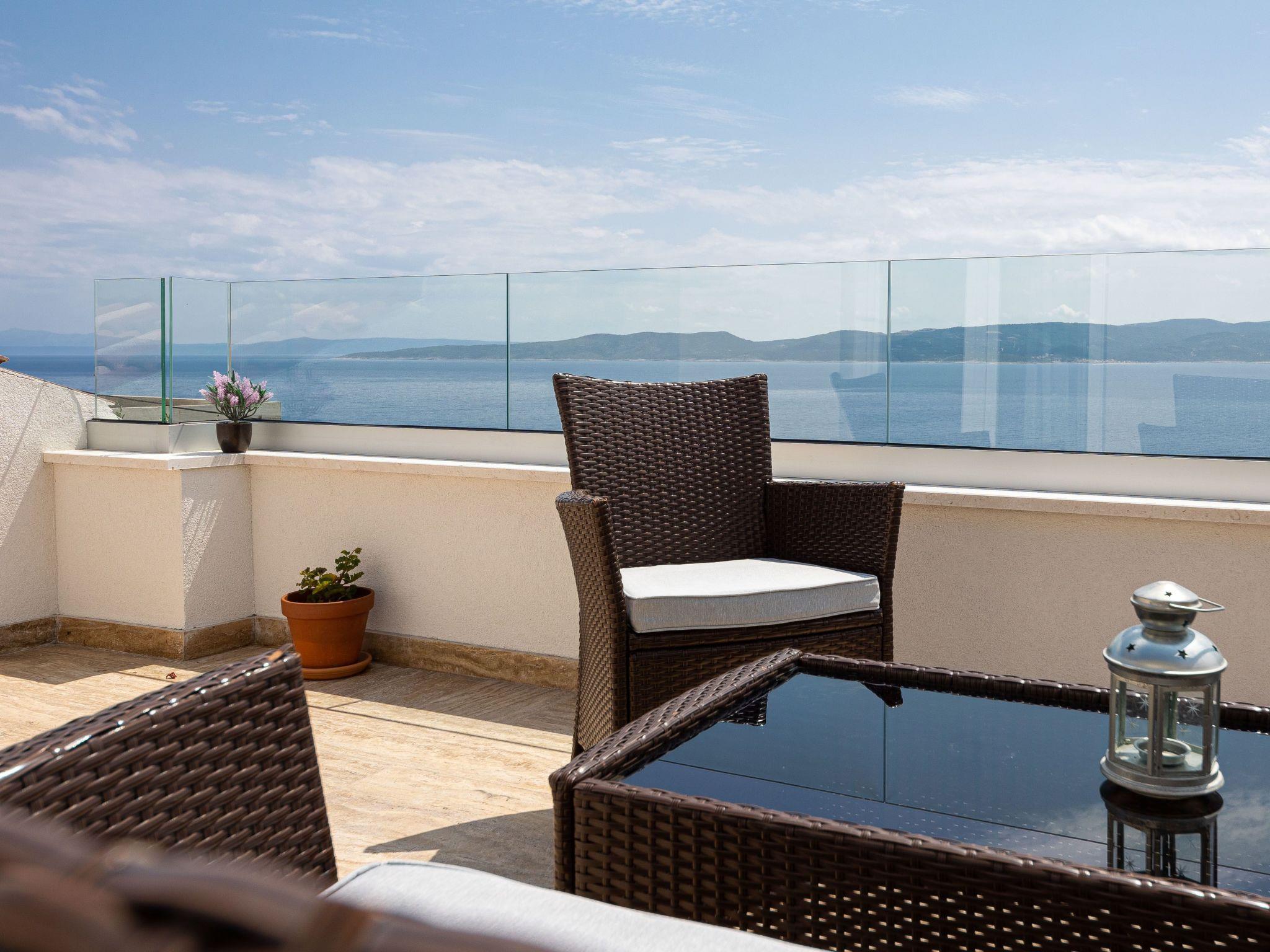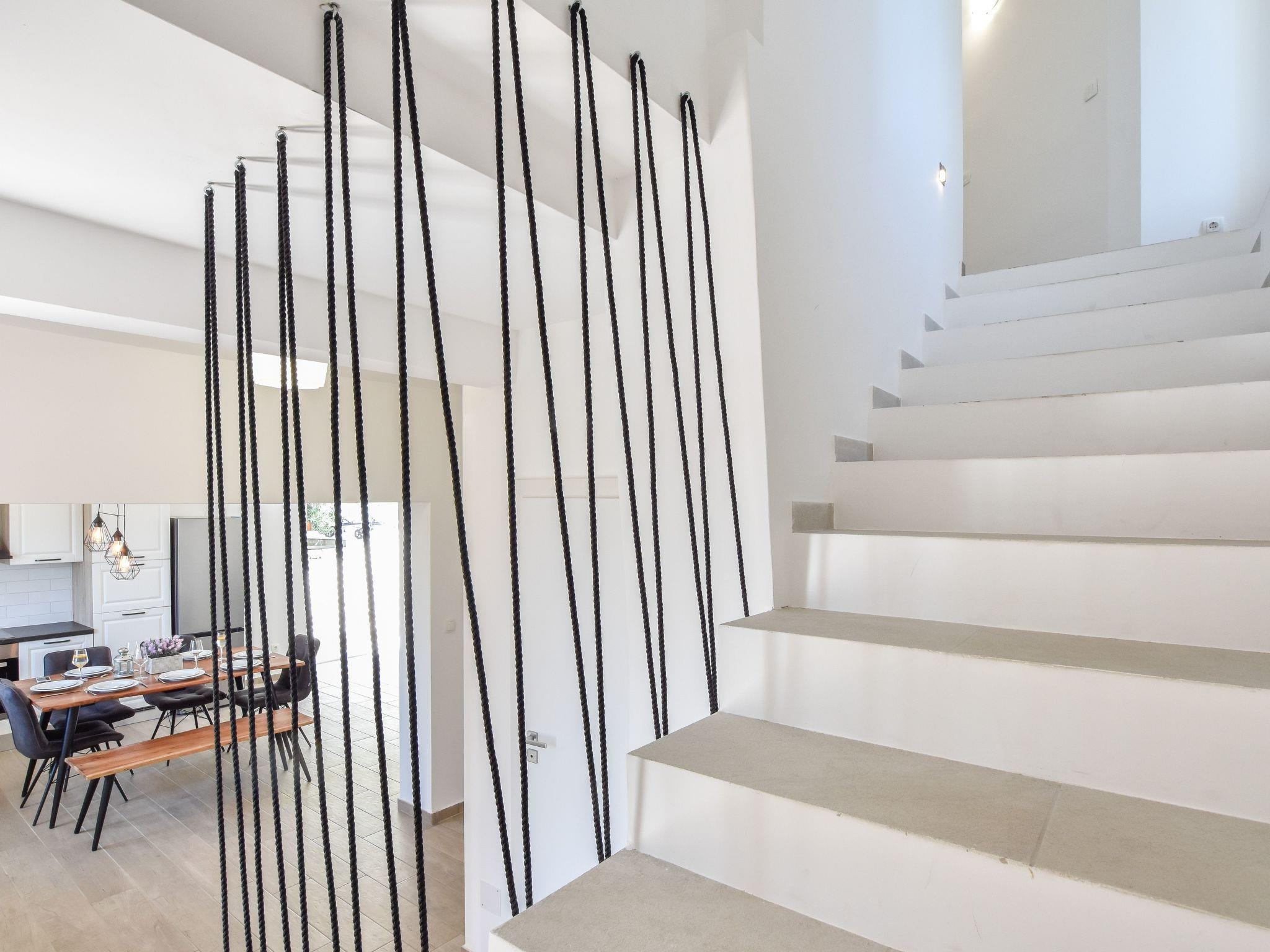 Zwei der Schlafzimmer, die sich im ersten Stock befinden, öffnen sich zu einem großen Balkon, der einen Panoramablick auf das Meer bietet, was einen ruhigen Morgen und ruhige Abende verspricht.