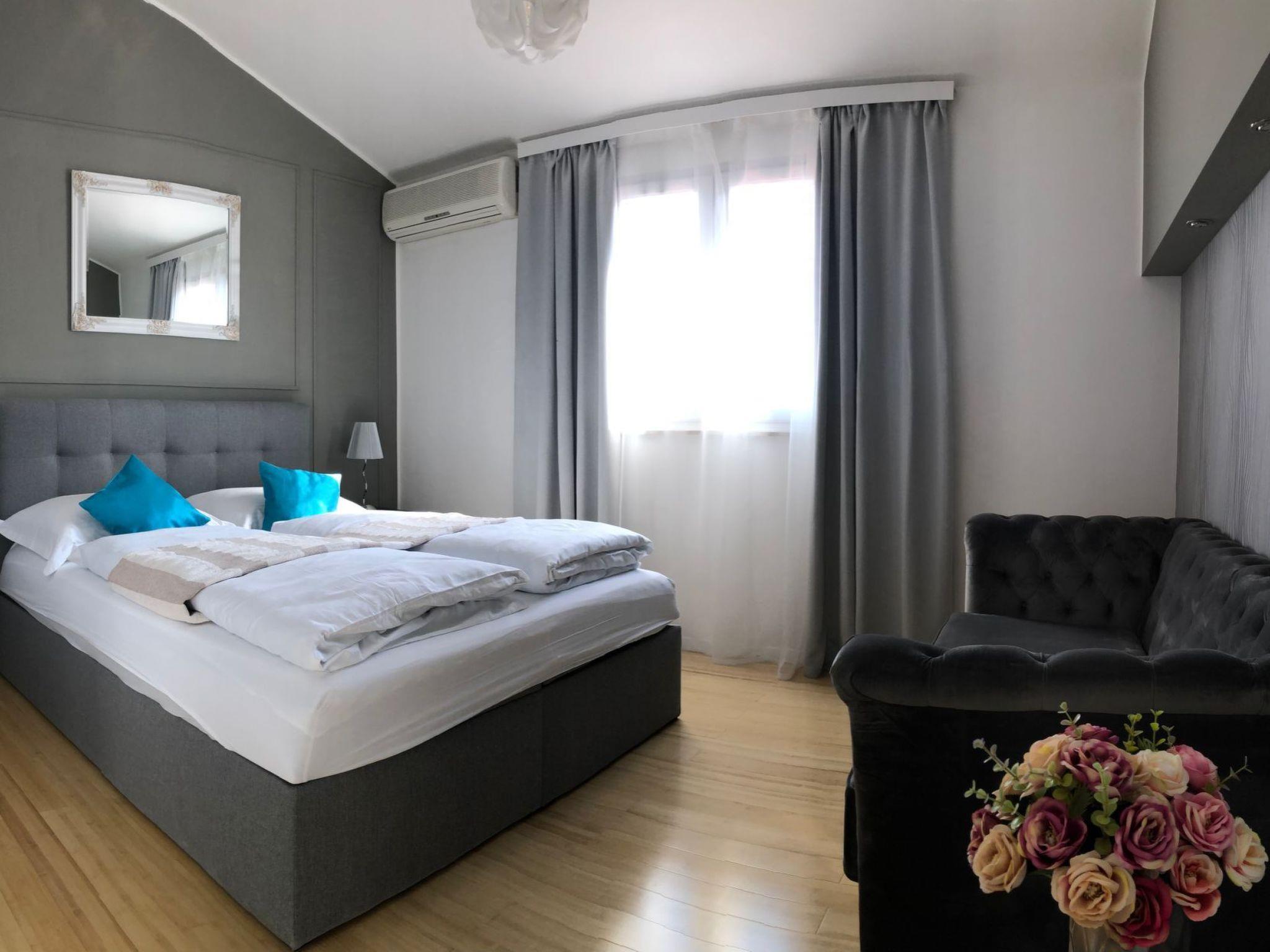 Das Haus ist auf einem Grunstuck von 600m2. Wir sind an der Meereseite.Das Haus ist 250m2 gross. Im EG befindet sich die Kuche mit Esszimmer und Wohnzimmer(100m2). Im 1 Stock haben wir 3 Zimmer mit Bad, Balkon mit Meerblick. Im 2 Stock sind auch 3 Zimmer mit Meerblick. Im EG befindet sich ein Waschraum mit Waschmaschine, Bugeleisen und Bugelbrett. Sie konnen direkt aus dem Wohnzimmer oder aus der Kuche in den Garten oder in den Pool. Wir haben auch ein Steingrill im Freien. Parkplatz ist auf dem Grundsuck gleich neben dem Haus. Kuche vollausgestatet(Toster, Mikrowalle, Kaffemachine, Wasserkocher...). Wohnzimmer mit LCD-SAT-TV und WI-Fi ausgestatet.Wir vermieten eine Villa/Ferienhaus fur 12+2 Personen nur 20m. von den gepflegten Sandstranden in Duce. Das Haus bietet mit seinen Garten und Pool eine Oase der Ruhe und Entspanung fur Familie oder eine Gruppe von Freunde die gemeinsam schon Tage verbringen mochten.