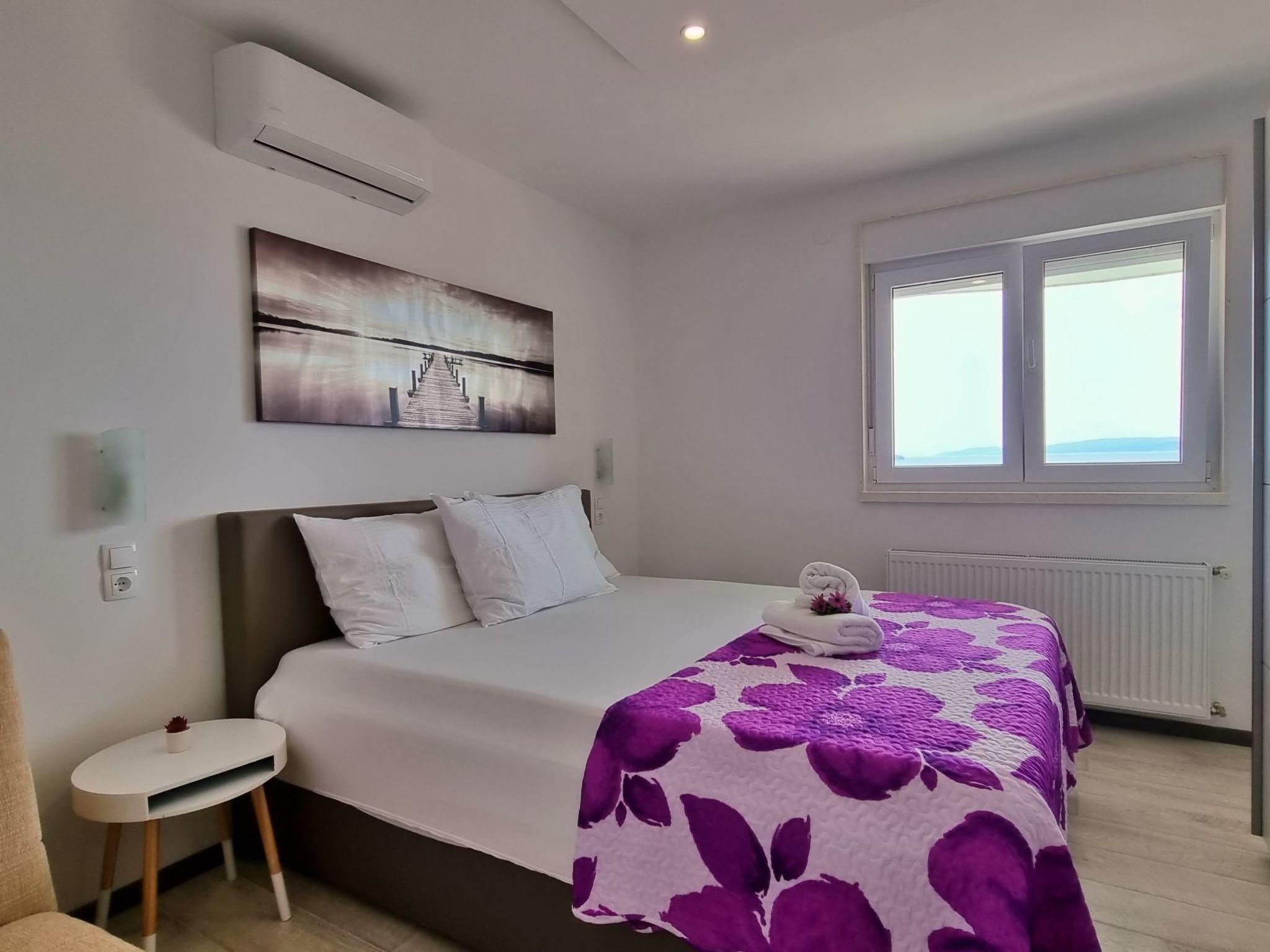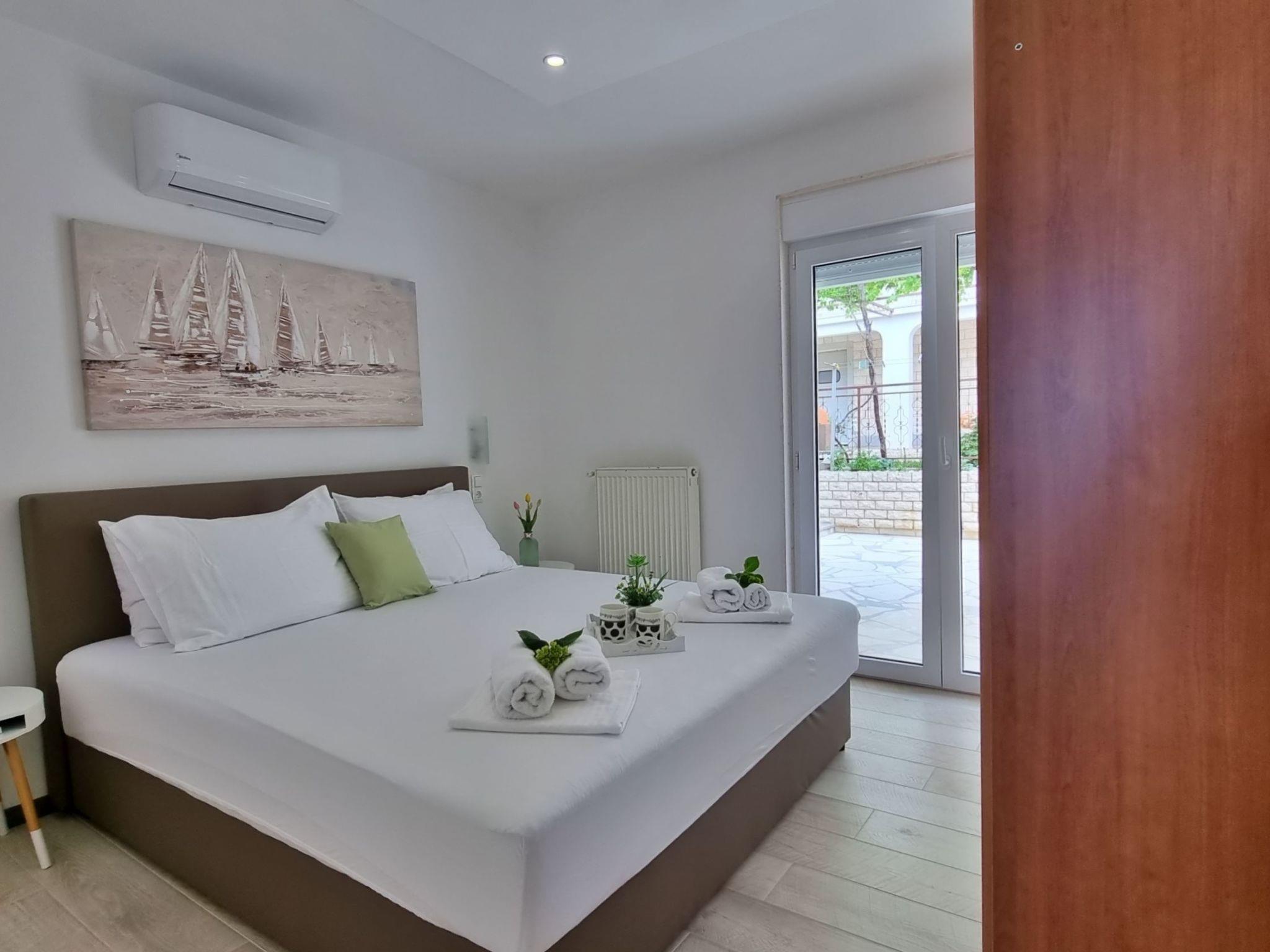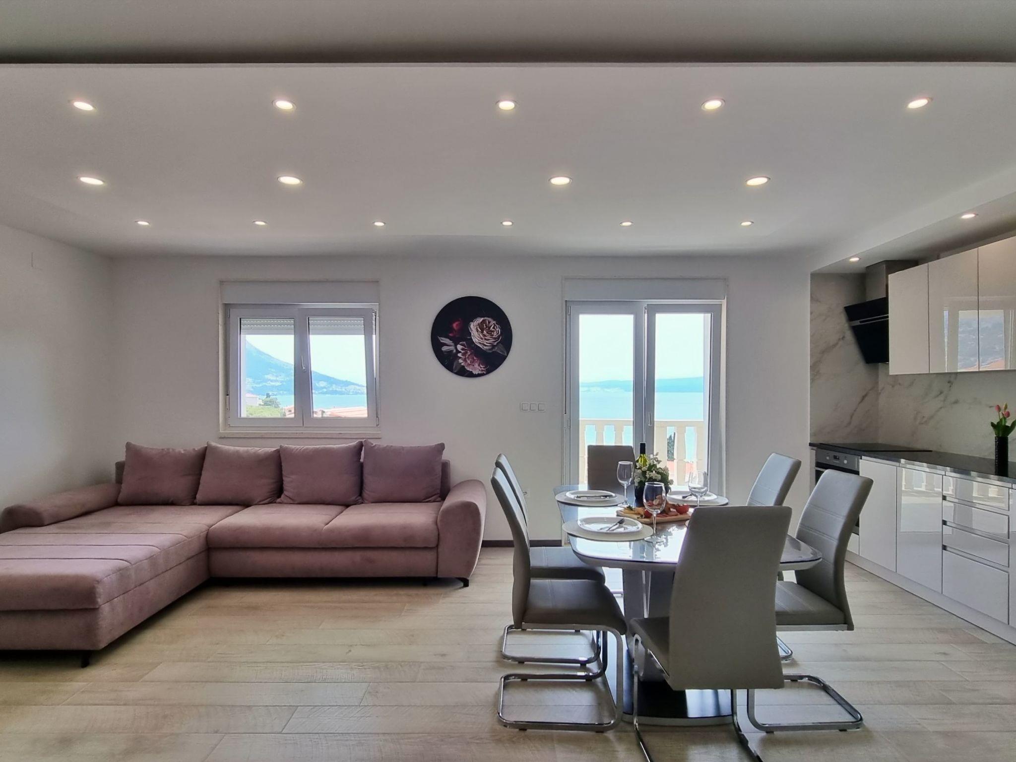 Es handelt sich um ein privates Apartment in einem Gebäude im 1. Stock, das Platz für bis zu 5 Personen bietet. Die Wohnung verfügt über zwei Schlafzimmer mit Doppelbetten, in einem davon befindet sich ein Schlafsofa für eine weitere Schlafmöglichkeit, eine ausgestattete Küche (mit Backofen, Geschirrspüler, Küchenutensilien und anderen Küchengeräten) mit einem Wohnzimmer und einem Ess-/Sitzbereich, 2 Bäder und einen Balkon mit Meerblick und einem Ess-/Sitzbereich im Freien.