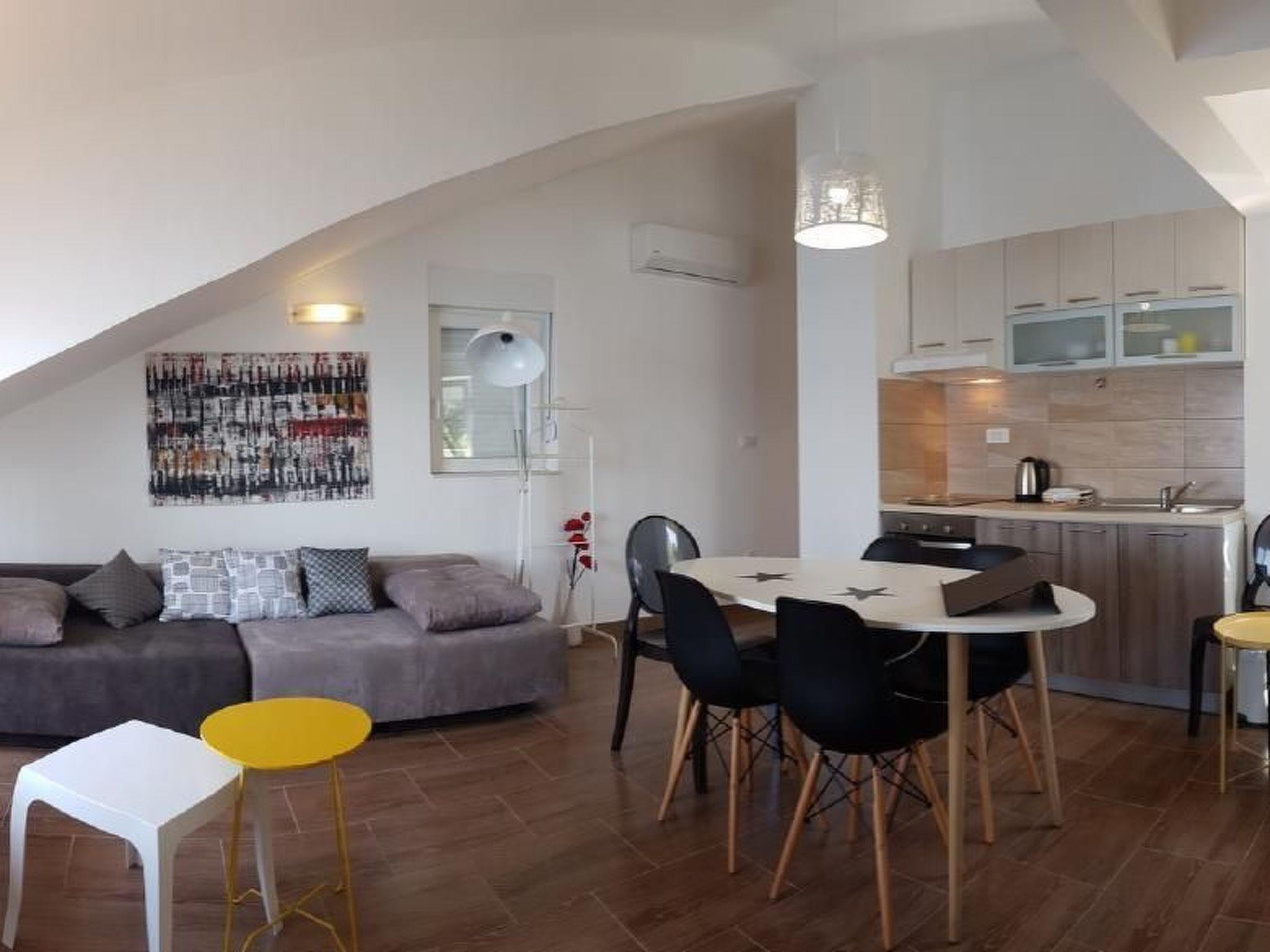 Das Apartment 3 im Dachgeschoss verfügt über ein Schlafzimmer mit Doppelbett, (Wohnzimmer, mit Schlafcouch) für zwei Personen, Küche und ein Badezimmer mit Dusche.