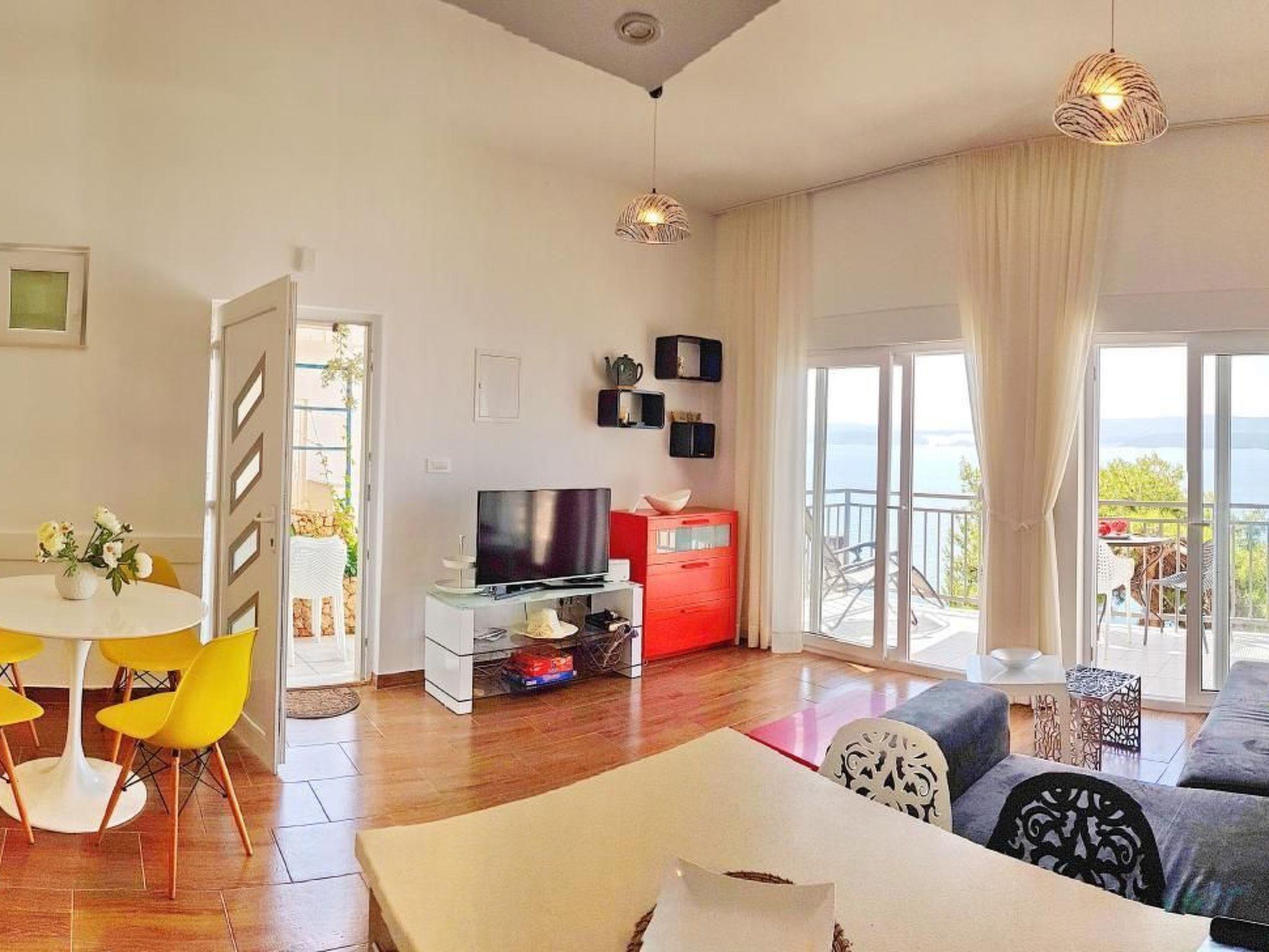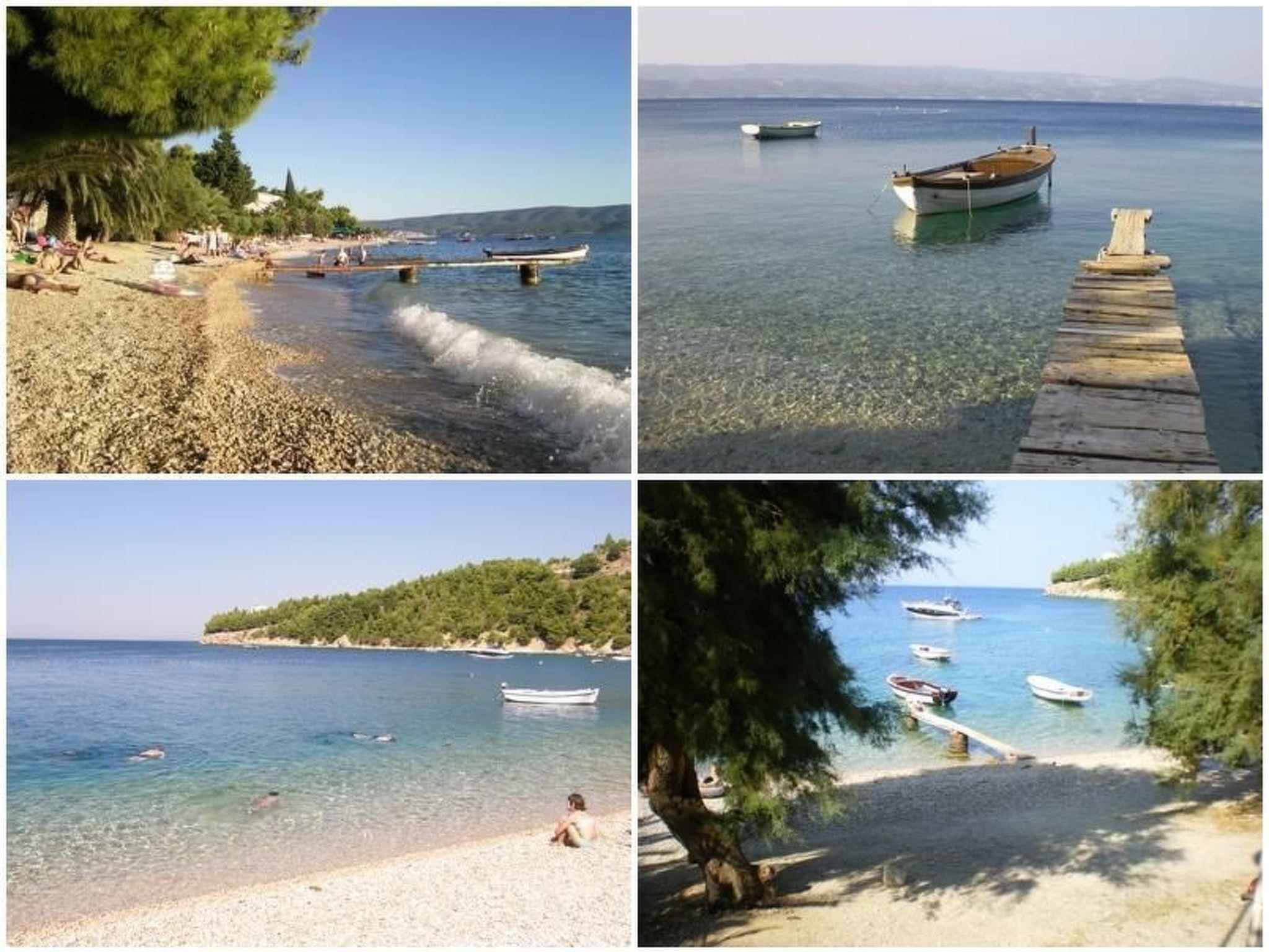 Das Ferienhaus ist nur als 1 'ne Einheit komplett 2 Apartments zusammen mietbar. Der Strand ist zu erreichen über ca. 100 Stufen. Er ist Kies – Feinkies. In der Nähe gibt es verschiedenste Möglichkeiten sich aktiv im Wasser zu bewegen wie: Jet – und Wasserski, Banane, Bootsverleih und vieles mehr. Es ist gepflegt, neu, modern und gut ausgestattet, mit voll eingerichteten Küchen. Liegt unterhalb der Küstenstraße mit Blick auf das Meer und einem wunderbaren Ausblick auf die gegenüberliegende Insel Brac. Der Strand ist mit ca. 100 Stufen direkt zu erreichen. Große Terrassen und Balkone.