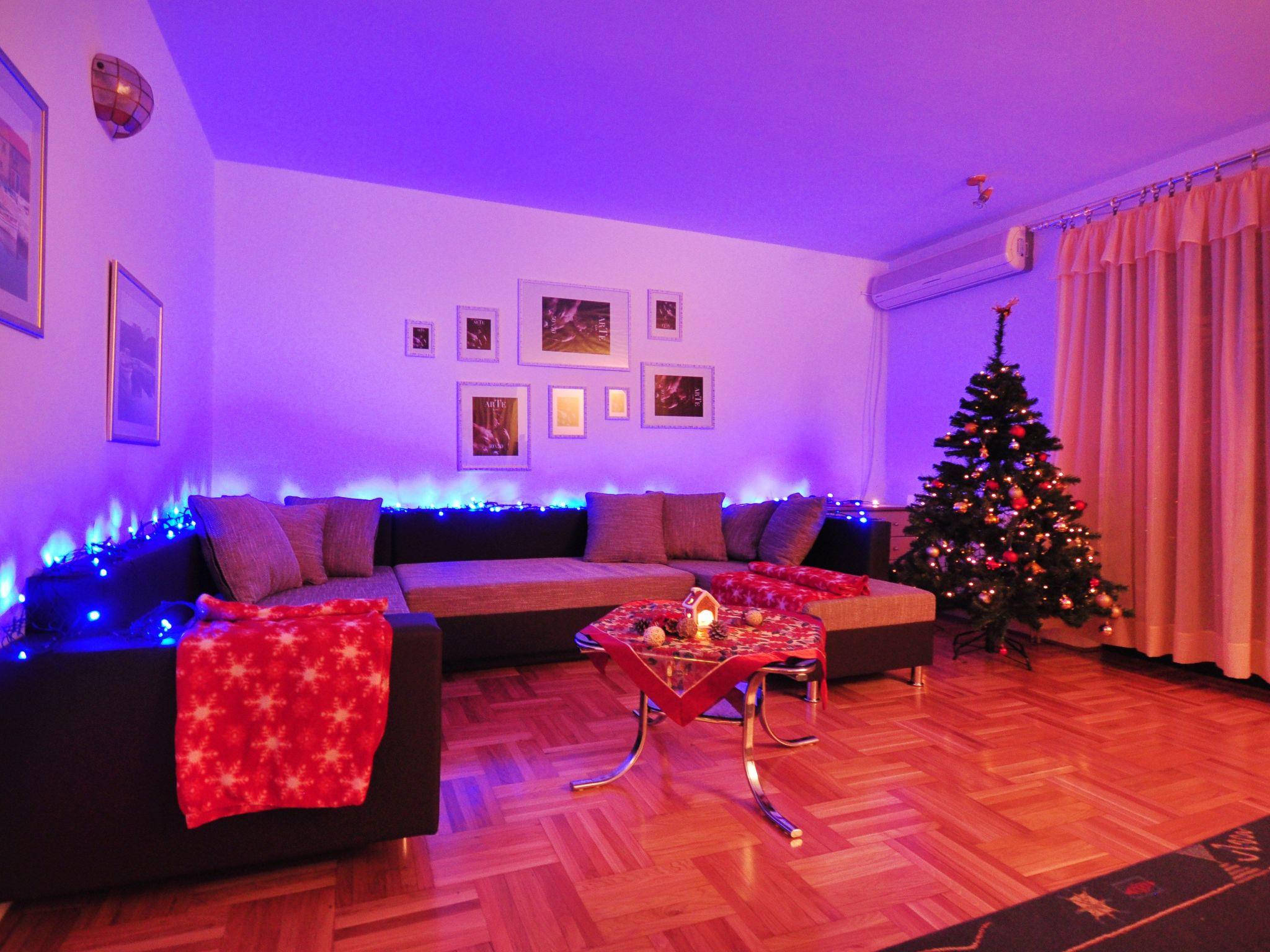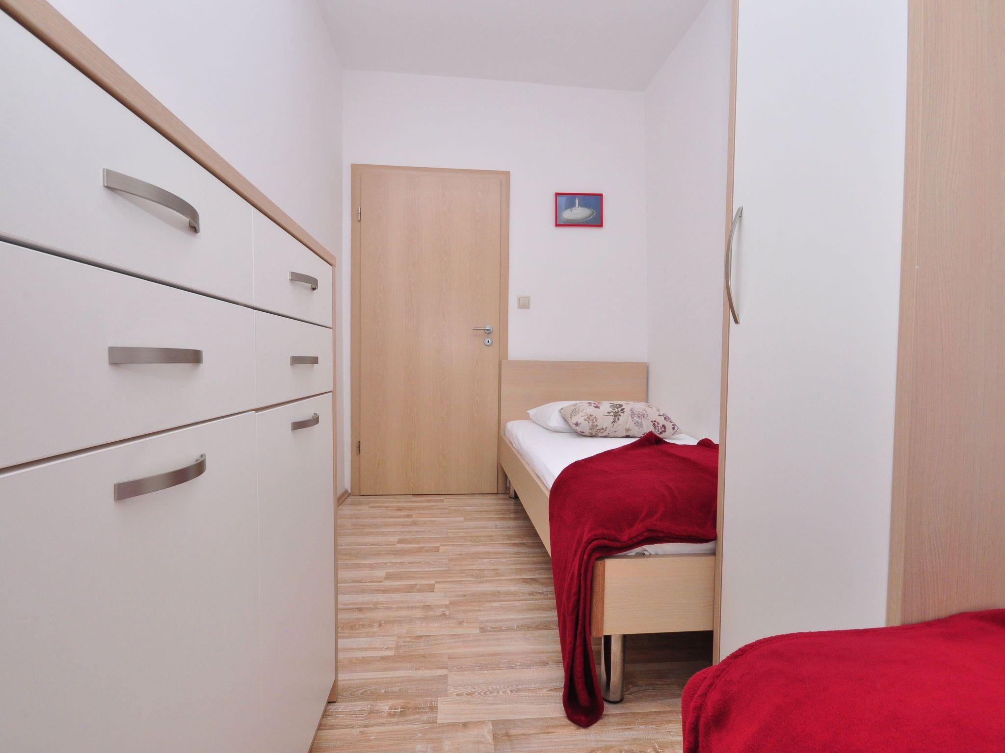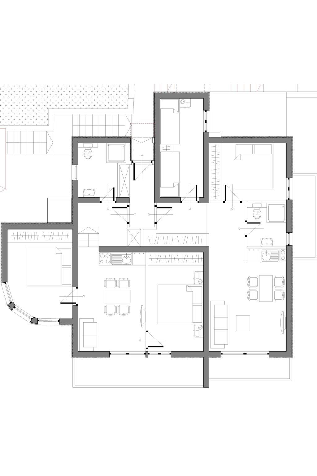 Das 220 m² große Ferienhaus kann idealerweise 14 Personen beherbergen. Es besteht aus drei Apartments mit einem gemeinsamen Eingang und einem separaten Eingang zu jeder der drei Wohnungen. So bietet es genügend Privatsphäre und Rückzugsmöglichkeiten für jedes Familienmitglied oder befreundete Paare und Familien. Jedes Apartment verfügt über ein separates modernes Duschbad, eine voll ausgestattete Küche, einen Essbereich sowie ein klimatisiertes Wohnzimmer und insgesamt acht Schlafzimmer. Zwei der Wohnungen sind mit jeweils zwei Schlafzimmern mit je einem Doppelbett ausgestattet. Des Weiteren gibt es ein Schlafsofa in jedem Wohnzimmer. Die größte Wohnung verfügt über vier Schlafzimmer, sechs Betten und ein zusätzliches Schlafsofa im Wohnzimmer. Das Schlafsofa im ersten Stock hat eine Größe von 147 x 326 cm, die beiden anderen im zweiten Stock sind ausgezogen 150 x 200 cm und 120 x 200 cm groß.