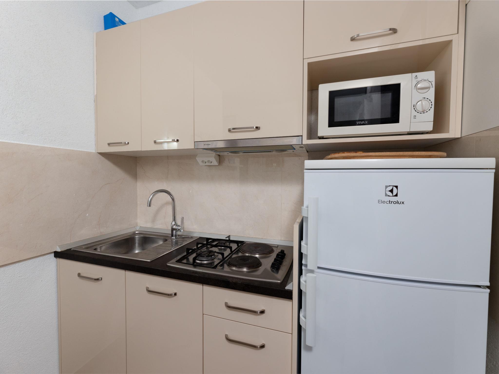 "A1", 3-Zimmer-Wohnung 33 m2 im 2. Stock, Südlage. 1 Zimmer mit 2 Betten (90 cm, Länge 200 cm). 1 Zimmer mit 1 franz. Bett (180 cm, Länge 200 cm), Sat-TV (Flachbildschirm), Klimaanlage. Ausgang zur Terrasse. Küche (4 Kochplatten, Mikrowelle, Tiefkühler) mit Esstisch. Dusche/WC. Terrasse 13 m2, überdacht. Balkonmöbel. Herrliche Sicht auf das Meer. Zur Verfügung: Internet (Wireless LAN, gratis).
