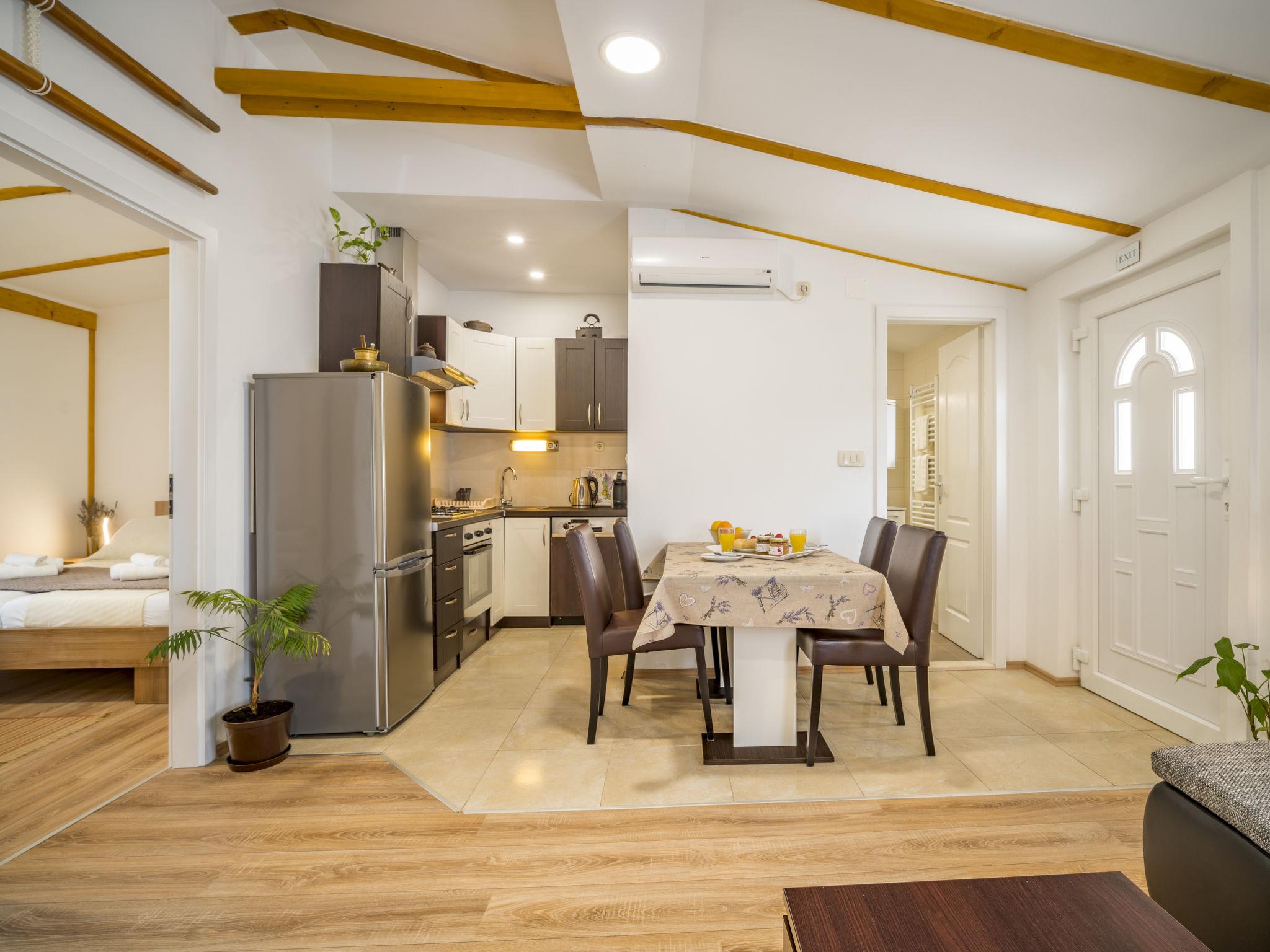 4-Zimmer-Haus 85 m2, Südlage. Wohn-/Esszimmer mit 1 Doppeldiwanbett (160 cm, Länge 200 cm), Sat-TV (Flachbildschirm), Klimaanlage. Ausgang zur Terrasse. 1 Zimmer mit 2 Betten (90 cm, Länge 200 cm). 1 Zimmer mit 1 Doppelbett (2 x 80 cm, Länge 200 cm). 1 Zimmer mit 1 Doppelbett (2 x 80 cm, Länge 200 cm), Dusche/WC und TV. Offene Küche (4 Kochplatten, Backofen, Geschirrspüler, Tiefkühler, elektrische Kaffeemaschine). Dusche/WC. Warmluftheizung. Terrasse 25 m2, überdacht. Terrassenmöbel, Liegestühle. Herrliche Sicht auf die Landschaft. Zur Verfügung: Babybett, Haartrockner. Internet (WLAN, gratis). Maximal 1 Haustier/Hund erlaubt. Schlafzimmer mit einem Doppelbett (2 x 80 cm, Länge 200 cm), TV, Dusche/WC mit einem separaten Eingang. Klasa: UP/I-335-02/17-01/15 Ur broj: 2181-01/05-17