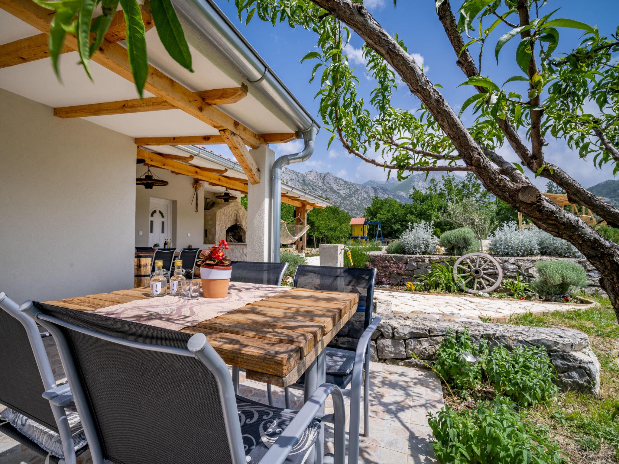 Zadvarje 26 km von Omiš: Einfamilienhaus "Jozo". Im Weiler Šodani, 3 km vom Zentrum von Zadvarje, 9 km vom Zentrum von Brela, 12 km vom Zentrum von Makarska, ruhige, sonnige Lage, 5 km vom Meer, im Grünen. Zur Alleinbenutzung: Grundstück 1'570 m2 (eingezäunt), Garten 200 m2 mit Rasen 500 m2, Schwimmbad eckig (9 x 3 m, 29 m2, 150 cm tief, saisonale Verfügbarkeit: 01.Mai. - 01.Okt.) mit Innentreppe. Aussendusche, Grill, Kinderspielplatz (Schaukel). Im Hause: Internetzugang, Waschmaschine. Parkplatz (für 5 Autos) beim Haus auf dem Grundstück. Einkaufsgeschäft 3 km, Restaurant 3 km, Bushaltestelle 350 m, Kieselstrand 5 km. Wanderwege ab Haus 100 m, Radweg 150 m.