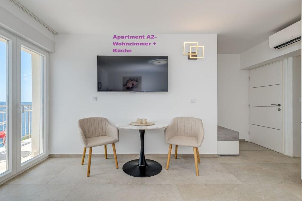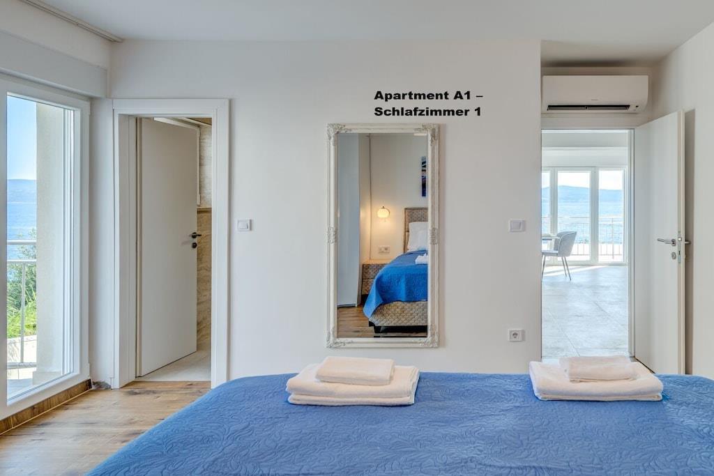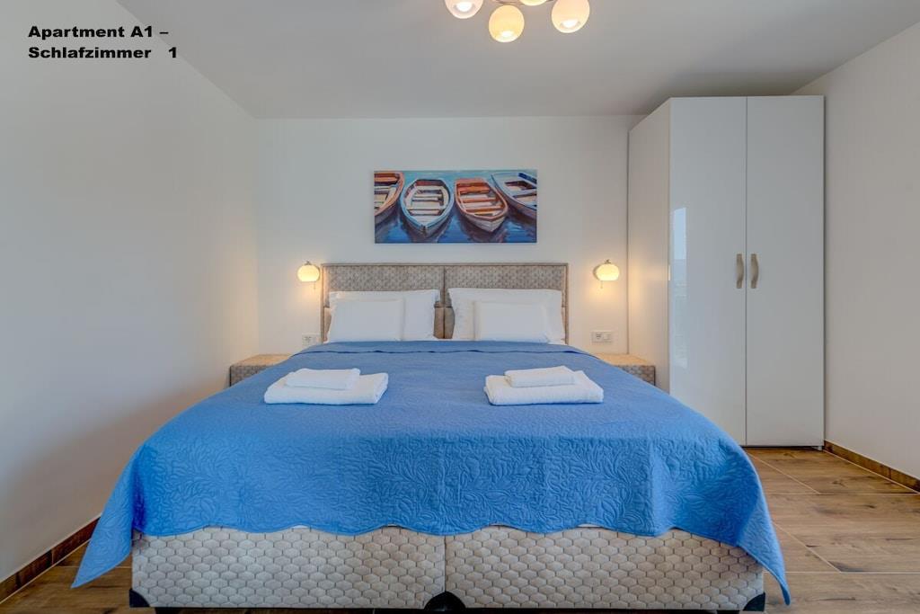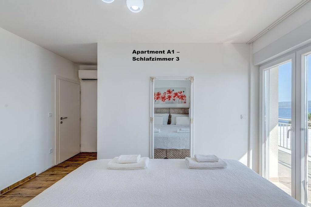.1. Etage: 1x Apartment A6 für 6 Personen 100m2 Preis außerhalb der Saison 260 EUR, Saison Juli und August 360EUR pro Nacht. 3 Schlafzimmer, jedes mit eigenem Bad, WC und Klimaanlage Wohnzimmer mit voll ausgestatteter Küche inkl. Geschirrspüler, Waschmaschine etc. Smart-TV Jeder Raum mit eigenem Balkon ,Meerblick,und klimaanlage 2. Etage: 1x Apartment A2 für 2 Personen,40m2 Preis außerhalb der Saison 100 EUR, Saison Juli und August 150 EUR pro Nacht. Von 14.09-30.09. 2025 90Euro por Nacht. "Separates Schlafzimmer, 1 Doppelbett Klimaanlage, Balkon Wohnzimmer mit voll ausgestatteter Küche inkl. Geschirrspüler, Waschmaschine etc. Smart-TV Balkon mit Meerblick 1x Apartment A4 für 4 Personen Preis außerhalb der Saison 180 EUR, Saison Juli und August 250 EUR pro Nacht. 2 separate Schlafzimmer, jedes mit einem Doppelbett, WC, Klimaanlage und Balkon Wohnzimmer mit voll ausgestatteter Küche inkl. Geschirrspüler, Waschmaschine etc. Smart-TV 3. Etage: 1x Apartment A2 für 2 Personen Preis außerhalb der Saison 100 EUR, Saison Juli und August 150 EUR pro Nacht. Separates Schlafzimmer mit 1 Doppelbett , Klimaanlage, Balkon Wohnzimmer mit voll ausgestatteter Küche inkl. Geschirrspüler, Waschmaschine etc. Smart-TV Balkon mit Meerblick 1x Apartment A4 für 4 Personen Preis außerhalb der Saison 180 EUR, Saison Juli und August 250 EUR pro Nacht. 2 separate Schlafzimmer, jedes mit eigenem Doppelbett , WC, Klimaanlage und Balkon Wohnzimmer mit voll ausgestatteter Küche inkl. Geschirrspüler, Waschmaschine etc. Smart-TV